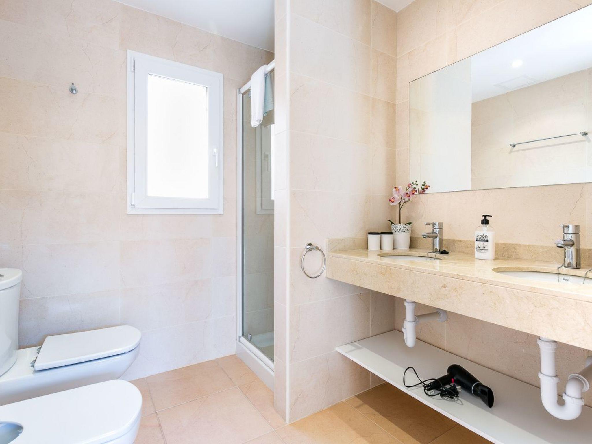 A roofed and open terrace, as well as a private roof terrace with a sea view are available. There is also a small private garden and a very large communal swimming pool (including children's pool). The residential complex has a very spacious pool area.