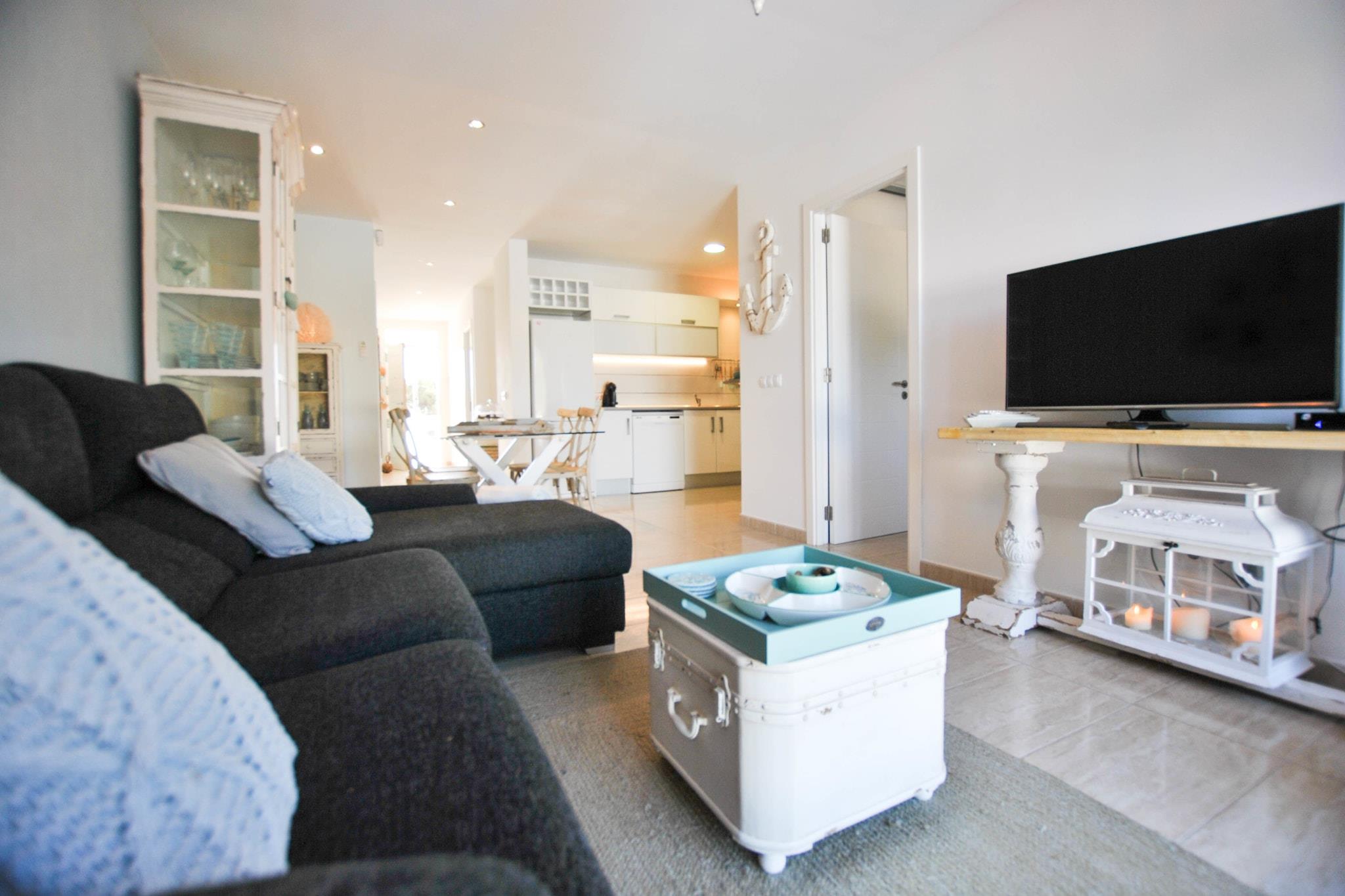 Stueetage: (entre, åbent køkken(elkedel, brødrister, kaffemaskine, espressomaskine, ovn, mikrobølgeovn, opvaskemaskine , køle-fryseskab), stue / spisestue(Fjernsyn(Internationale TV-kanaler), spisebord(4 personer), sofahjørne, klimaanlæg), soveværelse(dobbeltseng(160 x 190 cm)), soveværelse(enkelthøjseng, dobbeltseng), badeværelse(bruser, håndvask, toilet), toilet(terrasse(privat)), terrasse(privat, overdækket)) vaskemaskine, have(privat, indhegnet, oplyst), havemøbler(4 personer), liggestole, swimmingpool(privat, 4 x 4 m.), barneseng, barnestol