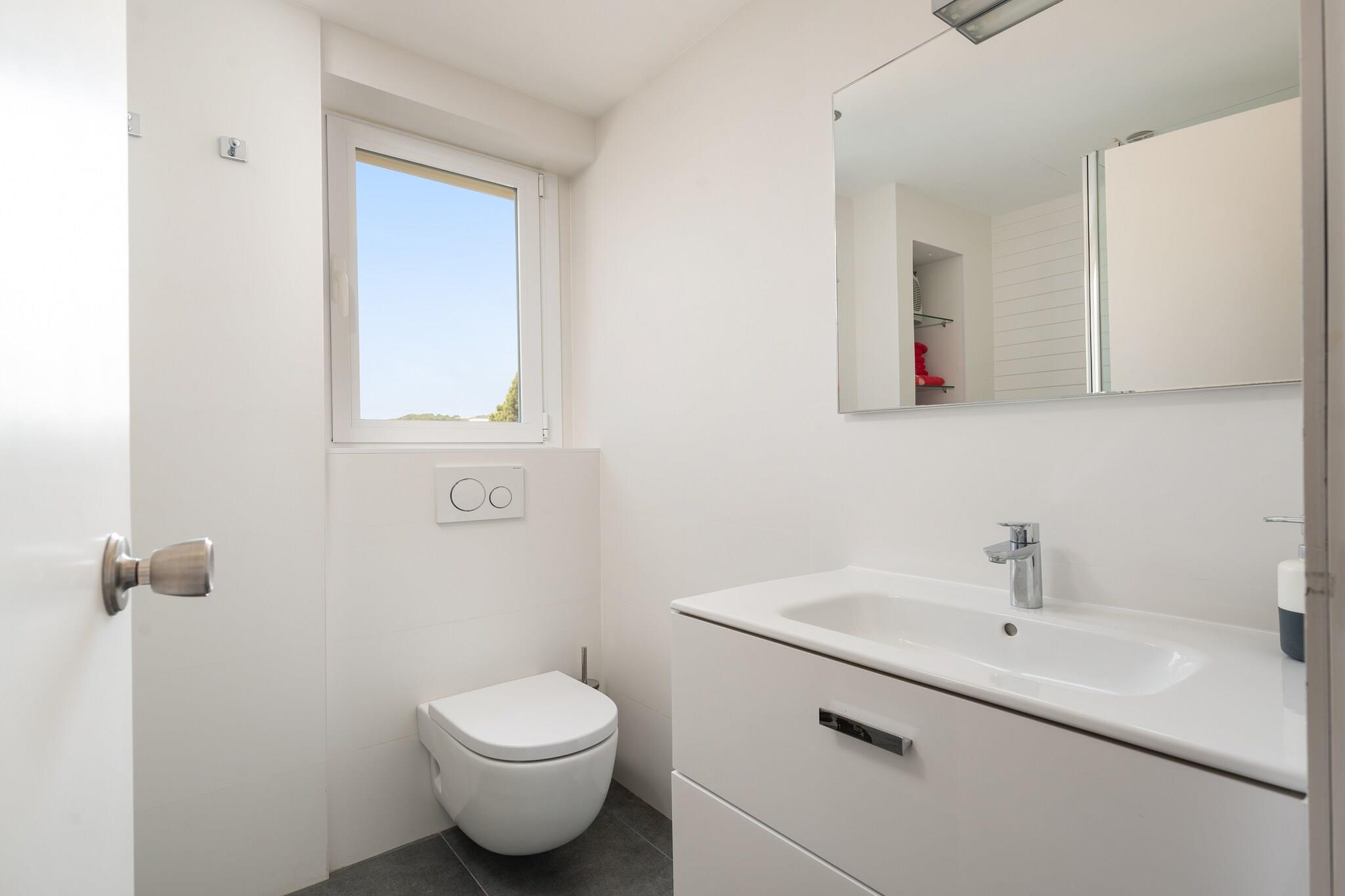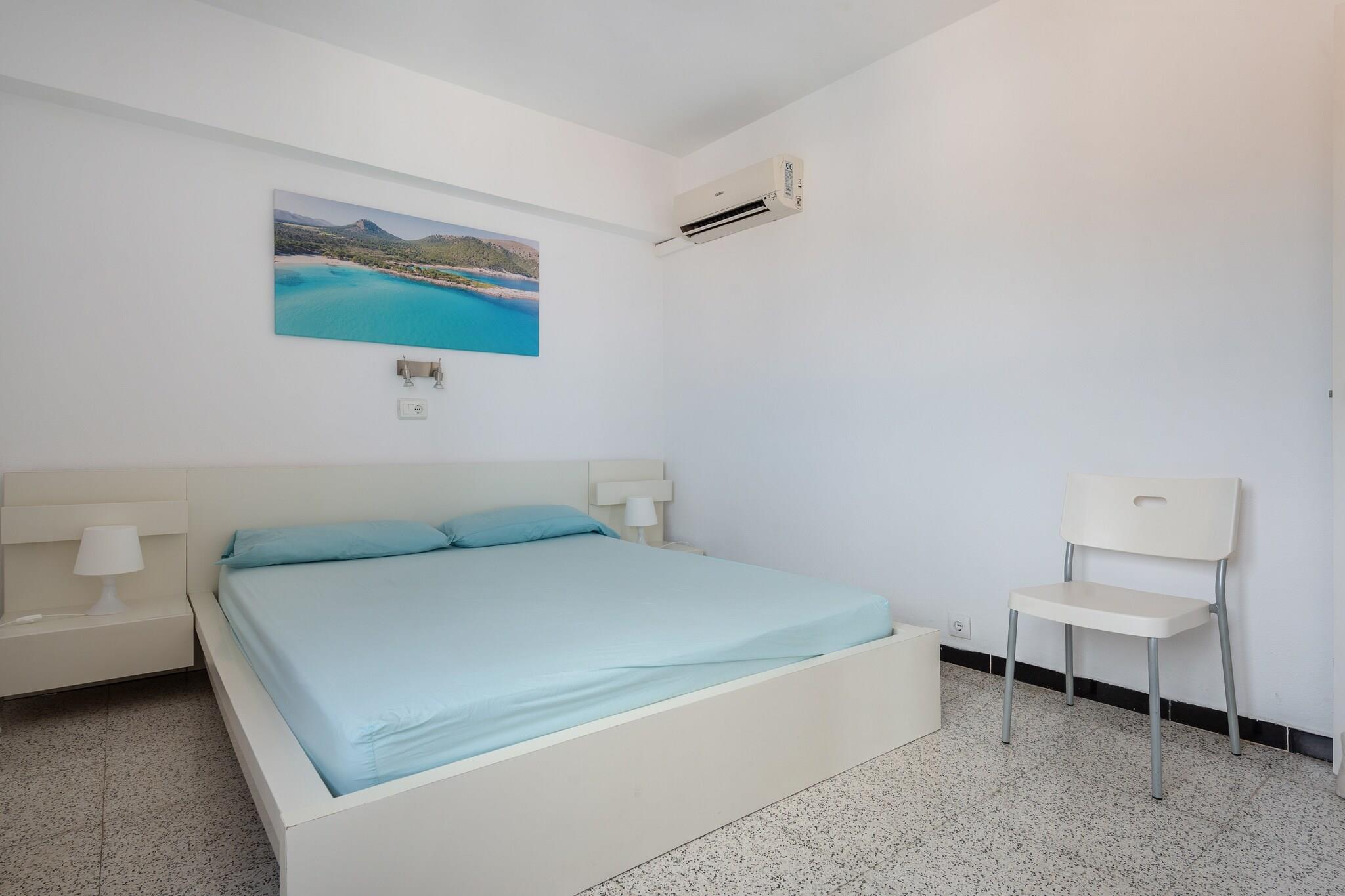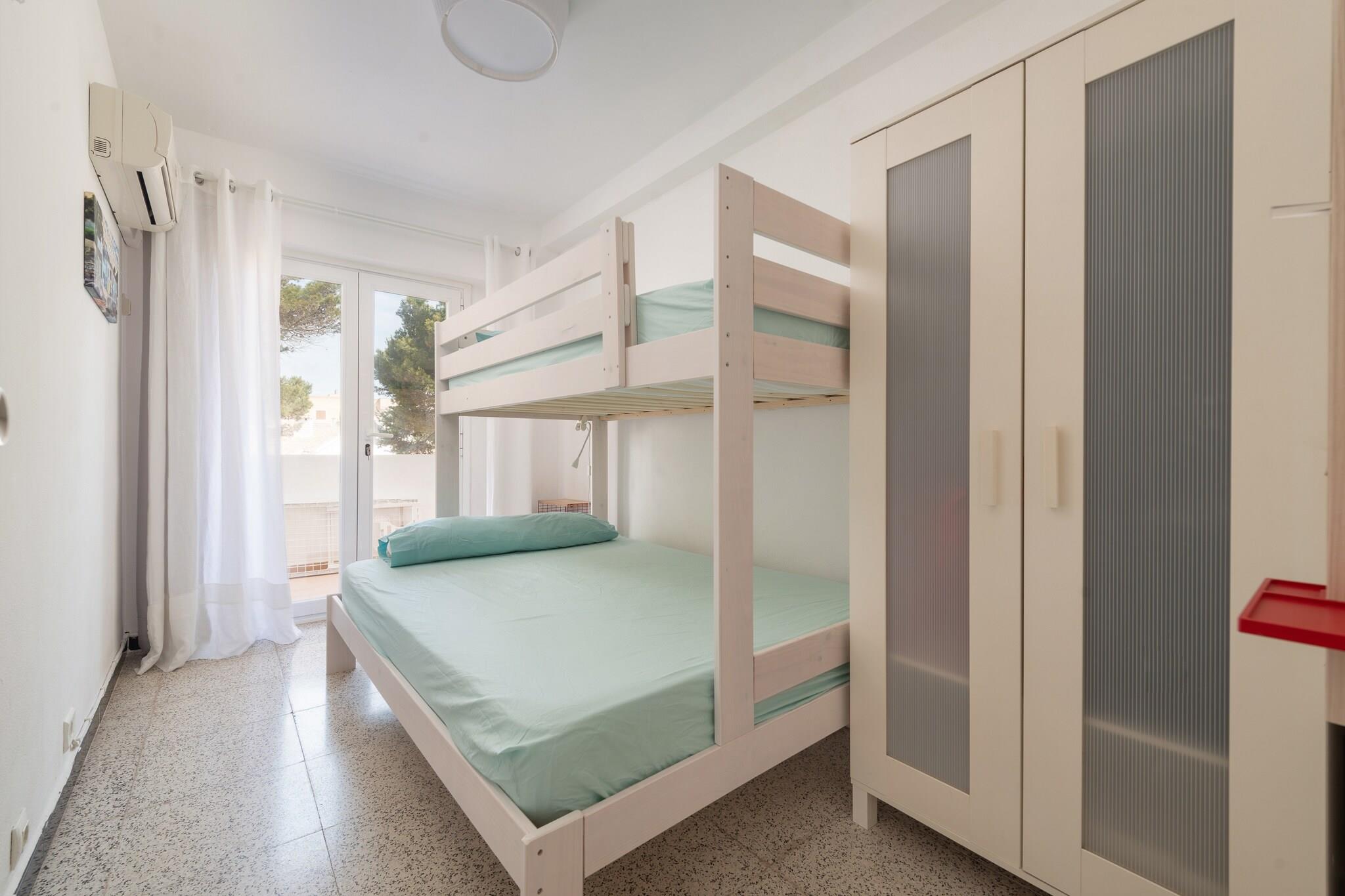 Efter en dag på stranden kan du slappe af ved den fælles klorerede pool, som vender ud mod havet og er perfekt til at køle af eller slappe af på solsengene. Poolen måler 12 x 5 meter og spænder fra 1,20 til 2,80 meter dyb. Fra lejlighedens terrasse kan du nyde en spektakulær havudsigt, mens du nyder måltider med dine ledsagere. Lejligheden ligger på første sal i en bygning med elevator og byder på hyggelige og komfortable omgivelser. Stuen/spisestuen er udstyret med aircondition og satellit-tv, og køkkenet har en keramisk kogeplade og alt det nødvendige til madlavning. En vaskemaskine, strygejern og strygebræt er til rådighed. Lejligheden har to soveværelser med AC: et med dobbeltseng og det andet med køjeseng. Badeværelset har bruser. Hvis du rejser med en baby, er en barneseng og høj stol til rådighed. Ejendommen har en ideel beliggenhed med butikker, barer og restauranter i nærheden, og et busstoppested 600 meter væk. En lille bugt ligger kun få meter væk, og andre strande som Cala Moll og Cala s"Àguila ligger tæt på. Den nærmeste golfbane ligger 7 km væk. Turistlicens: ETVPL/14601 Som reaktion på Coronavirus (COVID-19) er yderligere sikkerheds- og sanitære foranstaltninger i kraft på denne ejendom.