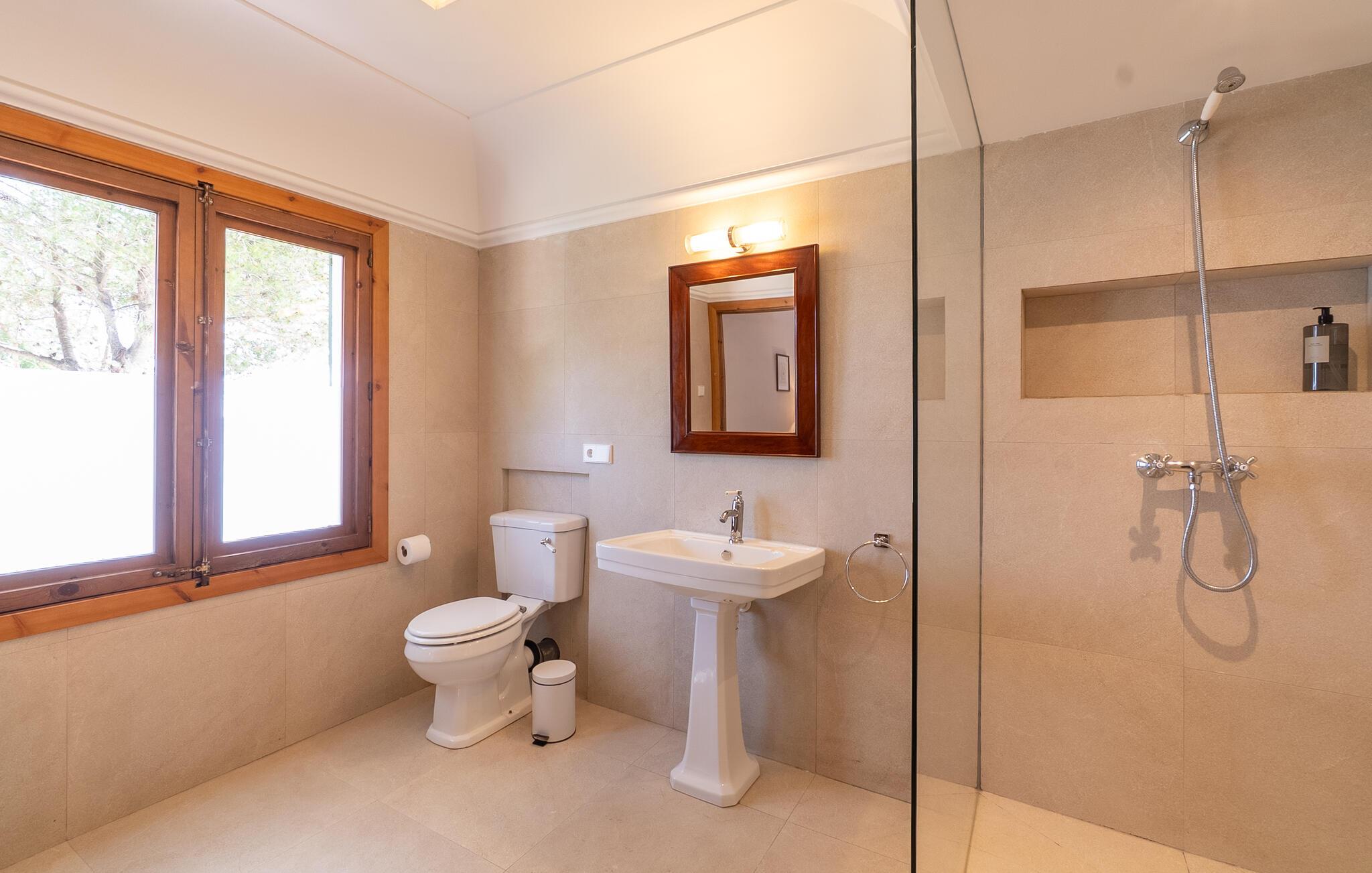Nyd den autentiske atmosfære i denne rummelige mallorcanske finca, hvor udsøgte naturmaterialer og stilfulde møbler skaber en varm og indbydende atmosfære. Tilbered lækre retter i det eksklusive køkken, og nyd jeres måltider i en behagelig atmosfære efter eget valg. På køligere aftener sørger den åbne pejs for hygge, mens I afslutter dagen med en god samtale – måske med et glas vin – i den hyggelige stue.