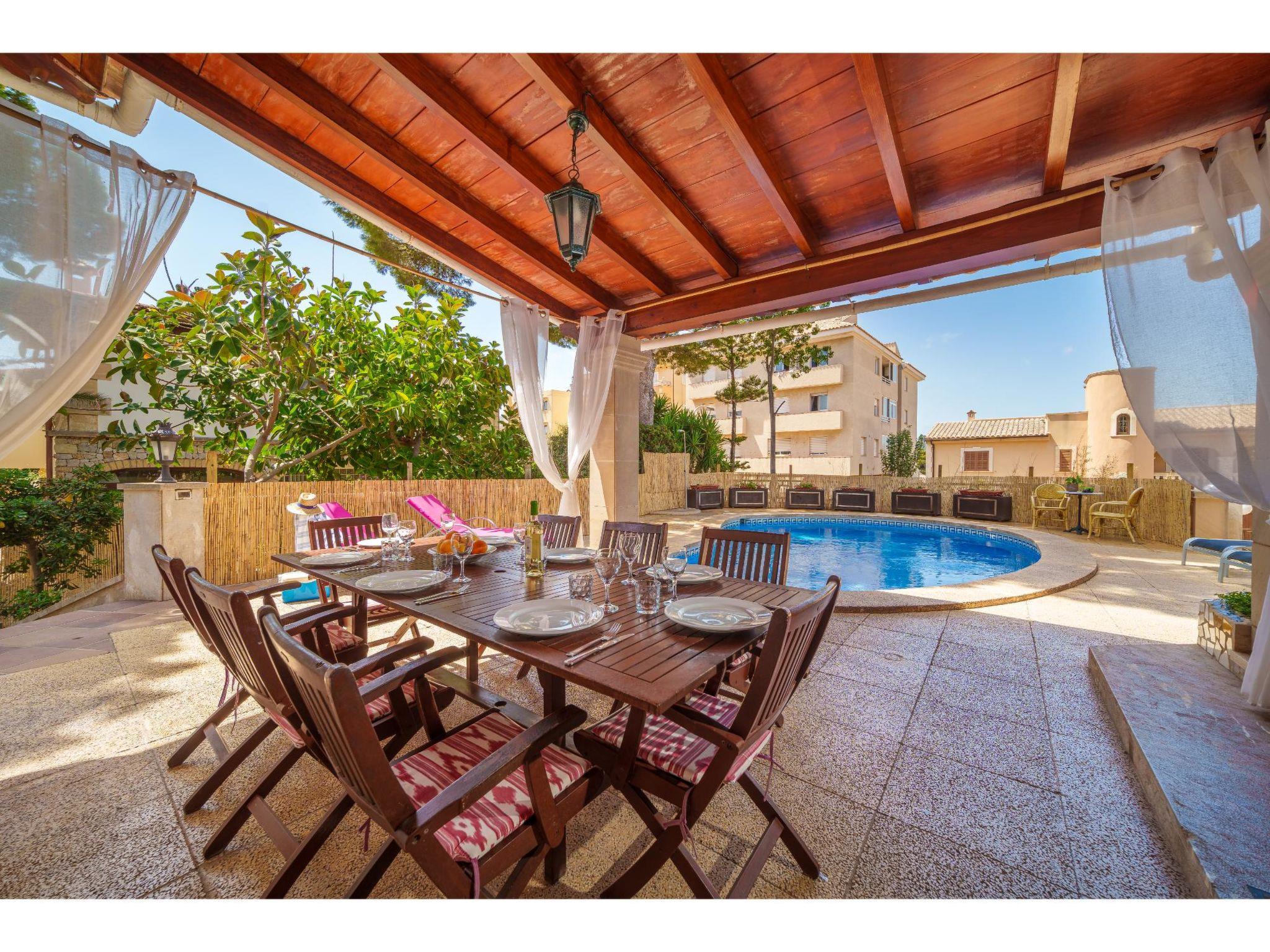 Large house "Villa Munar I", 3 storeys. 700 m from the centre of Cala Ratjada, 31 km from the centre of Manacor, 45 km from the centre of Alcudia, in the residential district, 1 km from the sea. Private: property 600 m2 (fenced), swimming pool kidney shaped (7 x 5 m, seasonal availability: 01.Jan. - 31.Dec.). Outdoor shower, public parking on the road. Shop, restaurant 300 m, bus stop "Cala Ratjada" 700 m, railway station "Manacor" 33 km, sandy beach "Cala Agulla" 1 km. Marina 700 m. The owner does not accept any groups. The owner does not accept any youth groups. Neighbourhood highly sensitive to noise. Quietness and good behaviour expected.