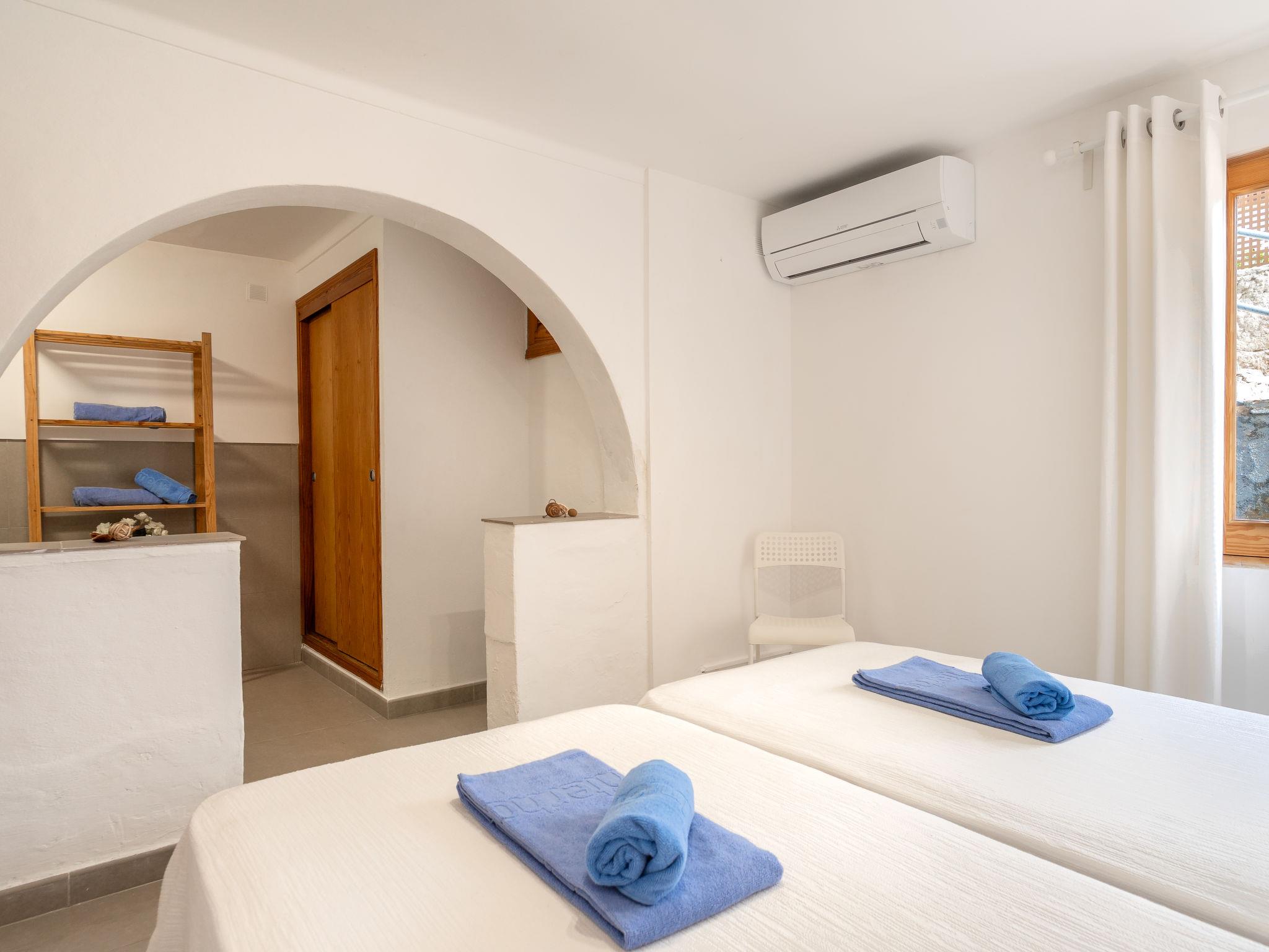 "Clara A", 3-room apartment 55 m2, on the ground floor. Practical furnishings: living/dining room with dining table, satellite TV and digital TV. Exit to the terrace. 1 room with 2 beds (90 cm, length 190 cm), shower/WC and electric heater. 1 room with 2 beds (90 cm, length 190 cm), electric heater with air conditioning and forced-air heating. Kitchen (oven, 4 ceramic glass hob hotplates, toaster, kettle, microwave, freezer, electric coffee machine). Shower/WC. Heating not available in all rooms. Terrace 18 m2 partly roofed. Terrace furniture, barbecue. Facilities: washing machine, safe, iron, children's high chair, baby cot for up to 2 year olds (extra). Internet (WiFi, free). Please note: suitable for families. Non-smokers only. VTV0007BAL // Reg. Nr.: ESFCTU000007030000540087000000000000000000000000VT/74