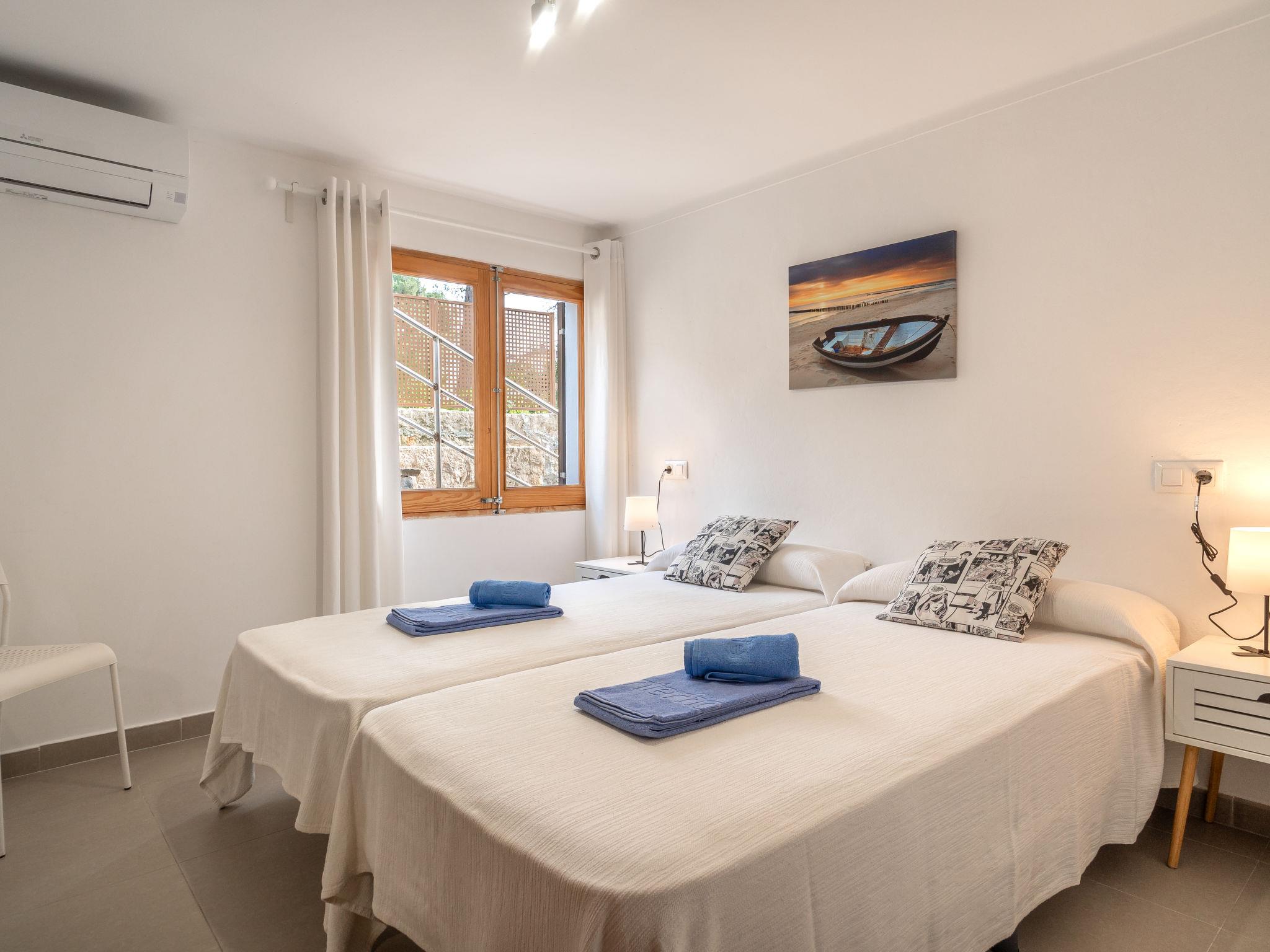 Cala San Vicente: Simple, comfortable apartment block "Clara", 2 storeys. 4 apartments in the property. 700 m from the centre of Cala San Vicente, 6.5 km from the centre of Pollensa, 15 km from the centre of Alcudia, in the residential district, 700 m from the sea. For shared use: property (fenced), swimming pool angular (9 x 3 m, depth 50 - 200 cm, seasonal availability: 01.Jan. - 31.Dec.). Outdoor shower, terrace, garden furniture. In the house: internet access, WiFi, air conditioning, washing machine. Shop 700 m, bus stop "Cala san Vicente" 800 m, sandy beach 700 m. Hiking paths: Punta de l'Aguila 2 km. Please note: car recommended.