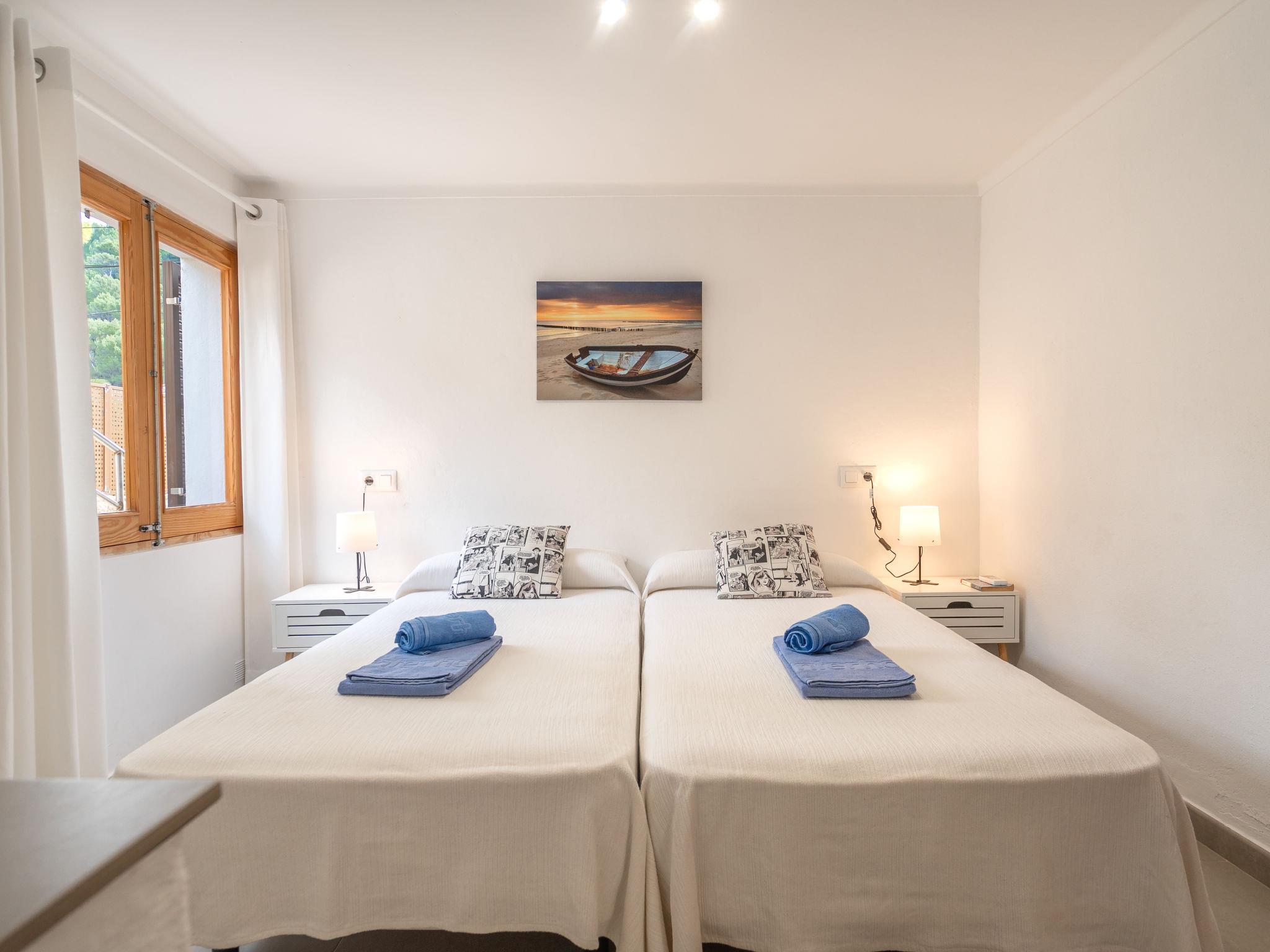 Cala San Vicente: Simple, comfortable apartment block "Clara", 2 storeys. 4 apartments in the property. 700 m from the centre of Cala San Vicente, 6.5 km from the centre of Pollensa, 15 km from the centre of Alcudia, in the residential district, 700 m from the sea. For shared use: property (fenced), swimming pool angular (9 x 3 m, depth 50 - 200 cm, seasonal availability: 01.Jan. - 31.Dec.). Outdoor shower, terrace, garden furniture. In the house: internet access, WiFi, air conditioning, washing machine. Shop 700 m, bus stop "Cala san Vicente" 800 m, sandy beach 700 m. Hiking paths: Punta de l'Aguila 2 km. Please note: car recommended.
