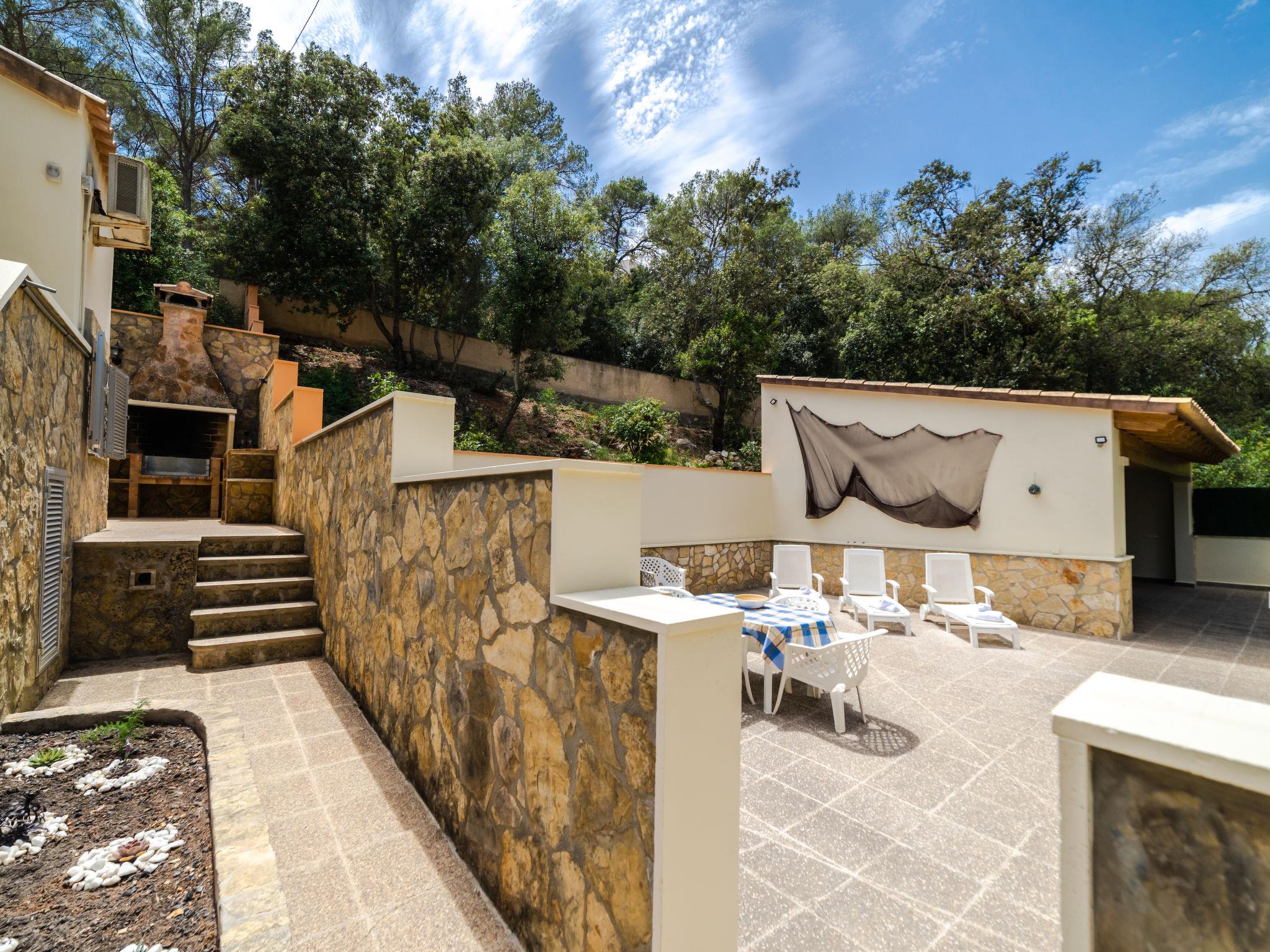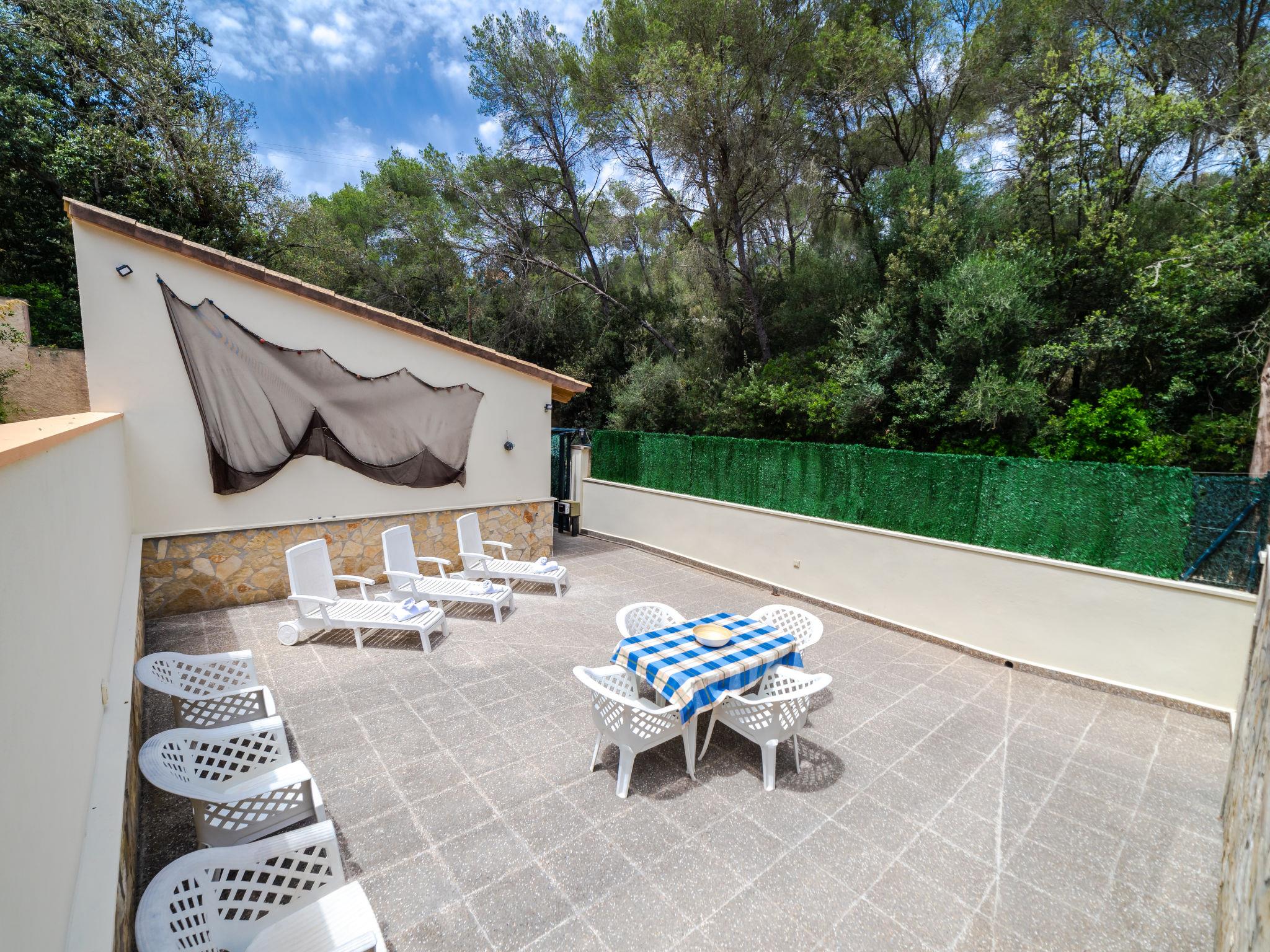 Cala Santanyi 3 km from Santanyi: Very large, cosy villa "Cala Santanyí Beach House JM", 2 storeys, surrounded by trees. In the resort 150 m from the centre of Cala Santanyi, in a quiet, sunny position, 20 m from the edge of the forest, 150 m from the sea, 150 m from the beach. Private: terraced garden with wildlife garden. Outdoor shower, patio, arbour, pergola, garden furniture, barbecue. In the house: internet access, WiFi, storage room for bicycles, air conditioning, washing machine. Parking at the house on the premises, single garage at the house. Grocery 150 m, supermarket 3.5 km, restaurant, bar 150 m, bakery 3.5 km, bicycle rental 200 m, bus stop "Cala Santanyí (57028)" 700 m, sandy beach "Cala Santanyi" 400 m. Sports harbour 4.2 km, golf course (18 hole) 19 km, walking paths from the house, cycle lane 150 m. Nearby attractions: Cala Figuera, Cala Llombards, Cala Mondrago, Santanyi. Please note: car recommended. Suitable for families, suitable for seniors. Object suitable for 6 adults. The owner does not accept any groups. The owner does not accept any youth groups. Loading and unloading of baggage is possible at the holiday house. Airfield 70 km from the property.