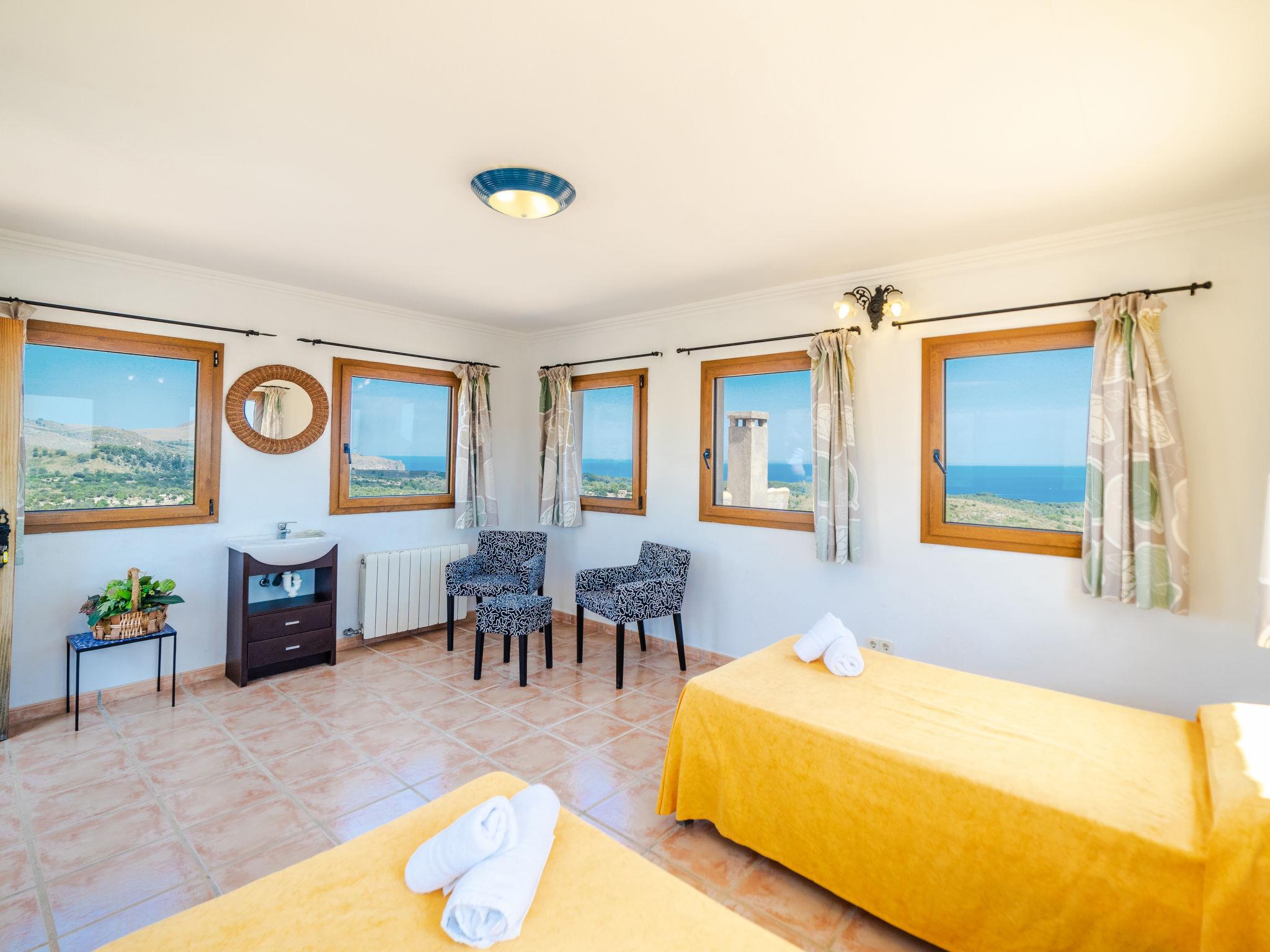 Natural Park Sa Duaia 7 km from Capdepera: Large, cosy, comfortable villa "Cala Torta Na Lluny", surrounded by fields. Above de Cala Torta, in a quiet position on top of a hill, 3 km from the sea, 3 km from the beach, in the countryside. Private: property 30 ha with wildlife garden, natural garden, swimming pool (8 x 4 m, seasonal availability: 01.Jan. - 31.Dec.) with internal staircase. Paddling pool, patio, arbour, garden furniture, barbecue. In the house: internet access, WiFi, washing machine. Motor access (1.5 km via unmade road). Parking at the house on the premises. Shop 8 km, supermarket 8 km, restaurant 200 m, bus stop 20 km, sandy beach "Cala Torta, Cala Mitjana" 3 km pebble beach "Cala Estreta" 3 km. Golf course (18 hole) 10 km, tennis 8 km, riding stable 8 km. Please note: car recommended. Suitable for families. Object suitable for 10 adults. The owner does not accept any youth groups. The children's swimming pool is 50 cm deep. There are two separate fincas in the remote area of the Nature Park of Llevant: Cala Torta I for 6 people (property code: ES8335.100.1) and Cala Torta II for 10 people (property code: ES8335.101.1). Highchair on request but provided when a cot is requested.