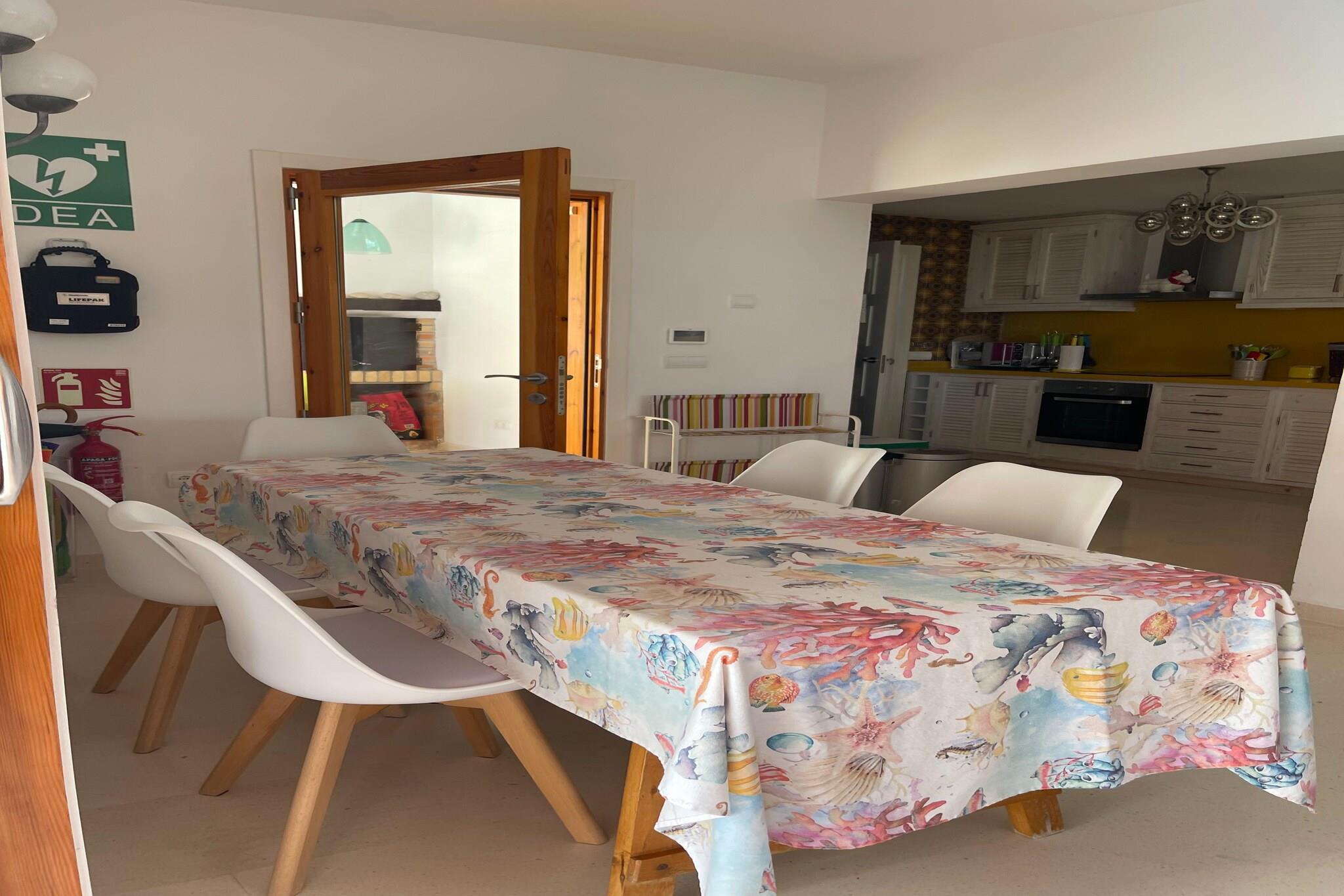 Stueetage: (Indgang , soveværelse(enkeltseng(90 x 200 cm), enkeltseng(90 x 200 cm), klimaanlæg), soveværelse(enkeltseng(90 x 200 cm), enkeltseng(90 x 200 cm), klimaanlæg), soveværelse(halvandenmandsseng(150 x 190 cm), klimaanlæg), soveværelse(enkeltseng(90 x 200 cm), enkeltfoldeseng(80 x 190 cm), klimaanlæg), badeværelse(bruser, håndvask, toilet), badeværelse(bruser, håndvask, toilet), loungerum(4x liggestole, Parasol), loungerum, veranda, balkon eller terrasse, varme, 2x havemøbler(8 personer), parkering, 2x hængekøje, solenergi, legetøj) Sidebygning: (sofastue(pejs, køleskab), Soveværelse med badeværelse(enkeltseng(80 x 190 cm), enkeltseng(80 x 190 cm), bruser, håndvask, toilet, klimaanlæg)) åbent køkken(elkedel, brødrister, emhætte, kaffemaskine, espressomaskine, ovn, combi-mikroovn, opvaskemaskine , køle-fryseskab, klimaanlæg, Saftpresser, Stavblender), stue / spisestue(Fjernsyn(fladskærm), hyggepejs, sofahjørne, spilcomputer, klimaanlæg, hyggespil), vaskerum (tørretumbler, strygebræt, strygejern), Netflix, mikrobølgeovn, badekar eller bruser, terrasse(privat), have, solstole, grill, swimmingpool(privat, udendørs, opvarmes), bordtennisbord