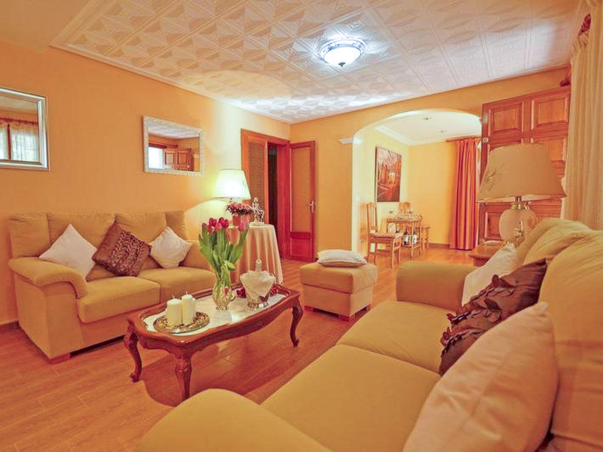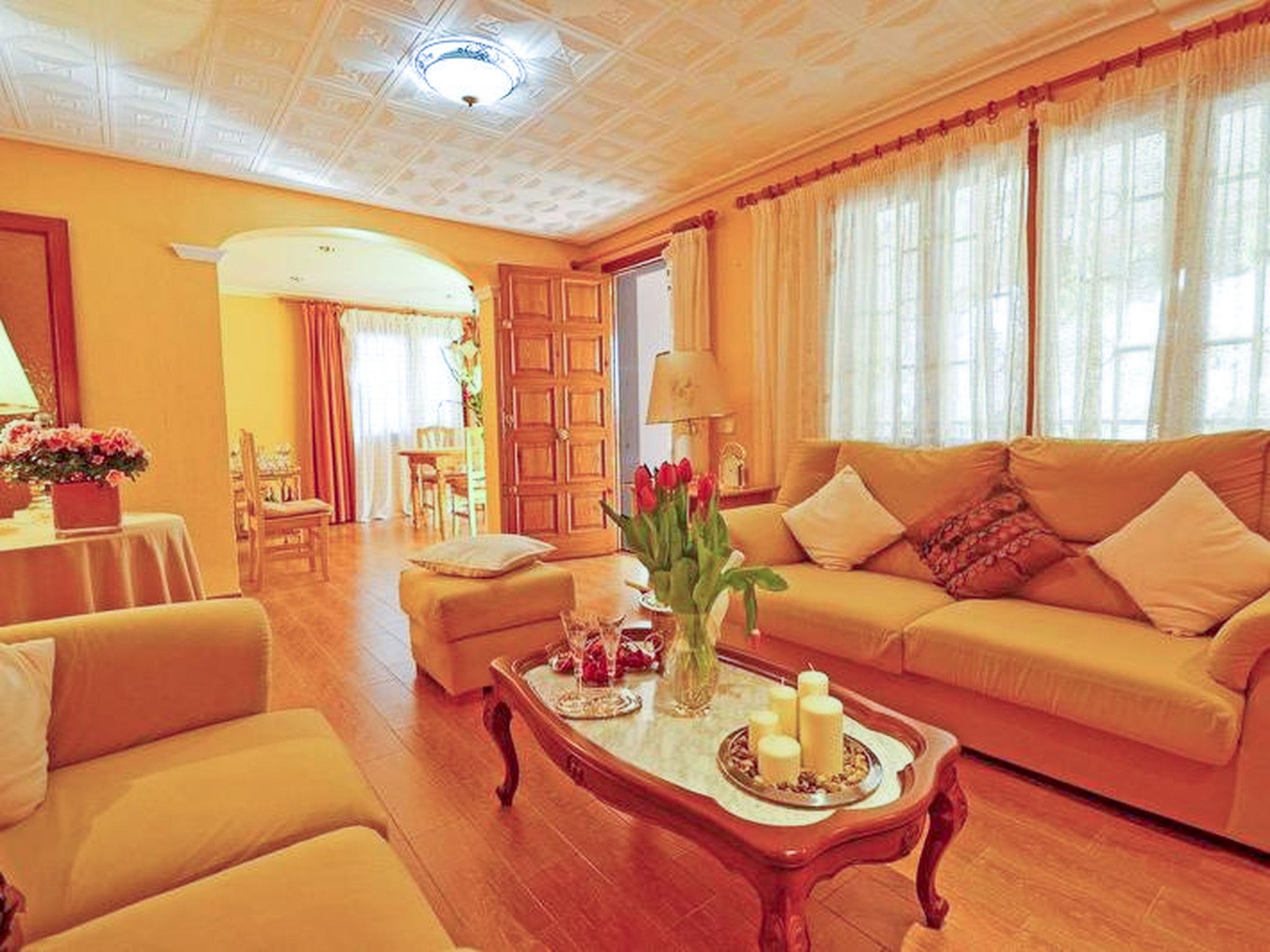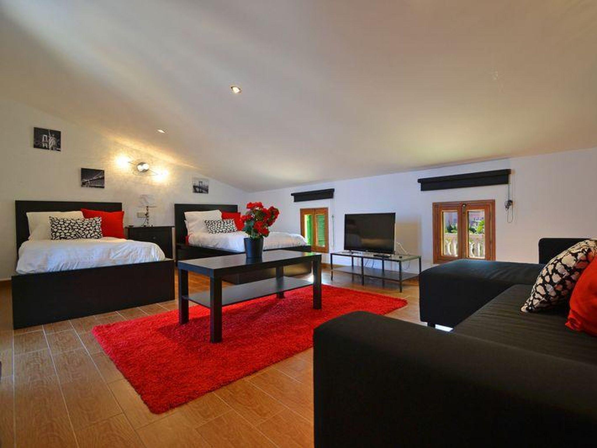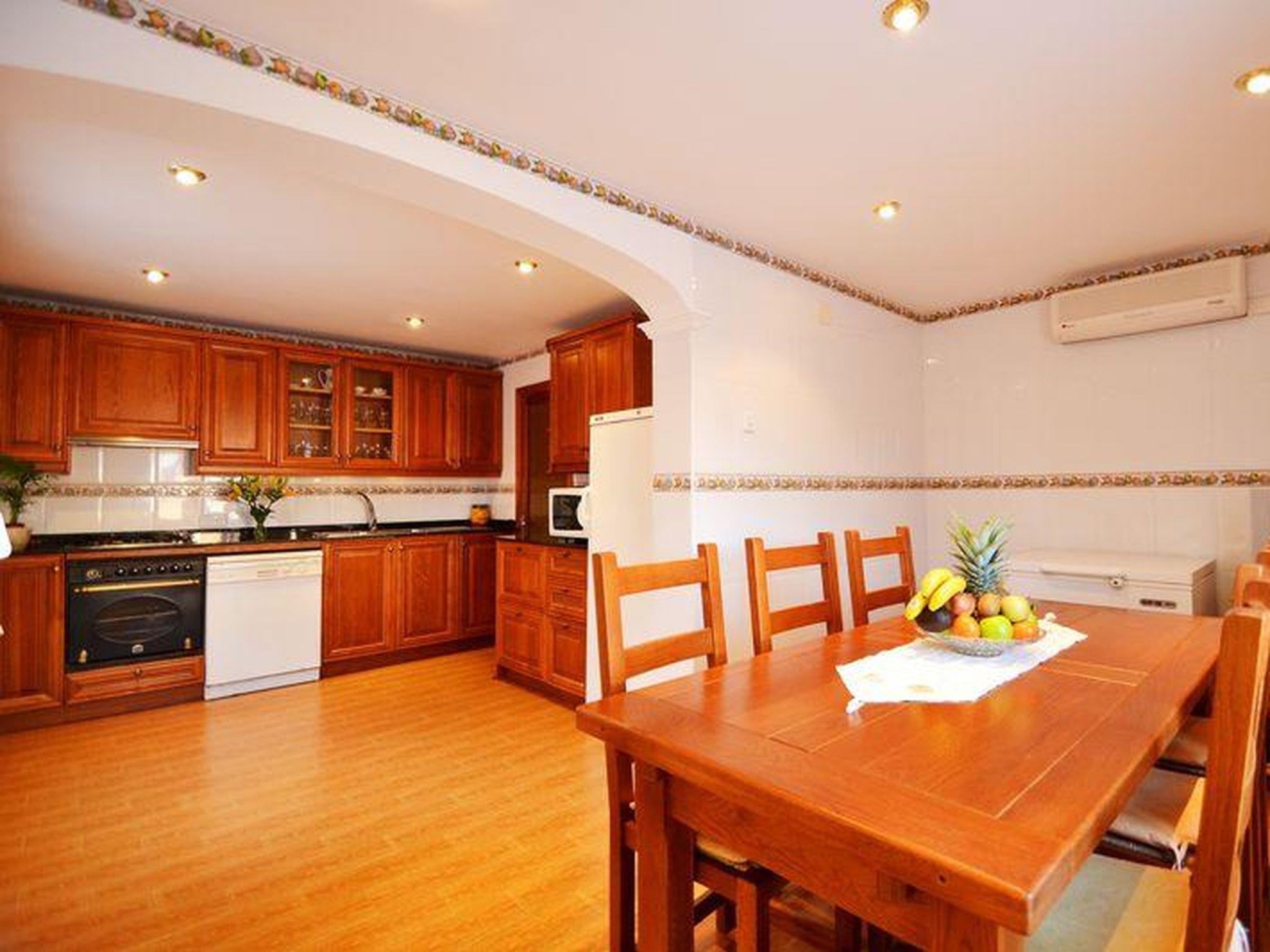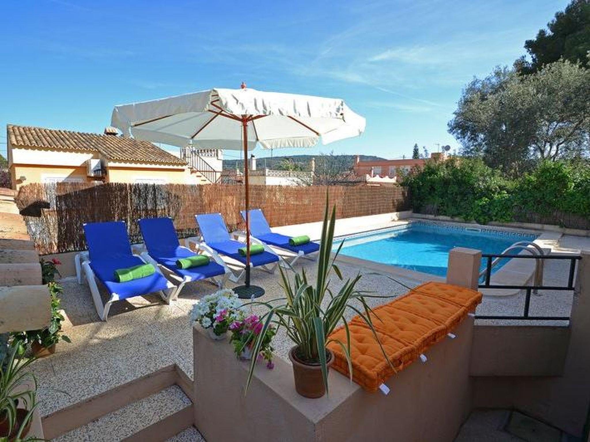 "Benestar", 5-room house 150 m2 on 2 levels. Object suitable for 8 adults. Comfortable and cosy furnishings: living/dining room with open-hearth fireplace, satellite TV and flat screen. 1 double bedroom with 2 beds (90 cm, length 190 cm). 1 double bedroom with 2 beds (90 cm, length 190 cm). Kitchen (4 hot plates, oven, dishwasher, toaster, kettle, microwave, freezer, electric coffee machine). Exit to the patio, to the swimming pool. Bathroom, shower/WC. Upper floor: 1 double bedroom with 1 french bed (150 cm, length 200 cm). 1 double bedroom with 1 french bed (150 cm, length 200 cm). Patio. Terrace furniture, barbecue, deck chairs, covered balcony. View of the swimming pool and the garden. Facilities: washing machine, dryer, iron, children's high chair, baby cot for up to 2 year olds, hair dryer. Internet (WiFi, free). Suitable for families. ETV/3667 // Reg. Nr.: ESFCTU000007021000508726000000000000000000000ET/36674