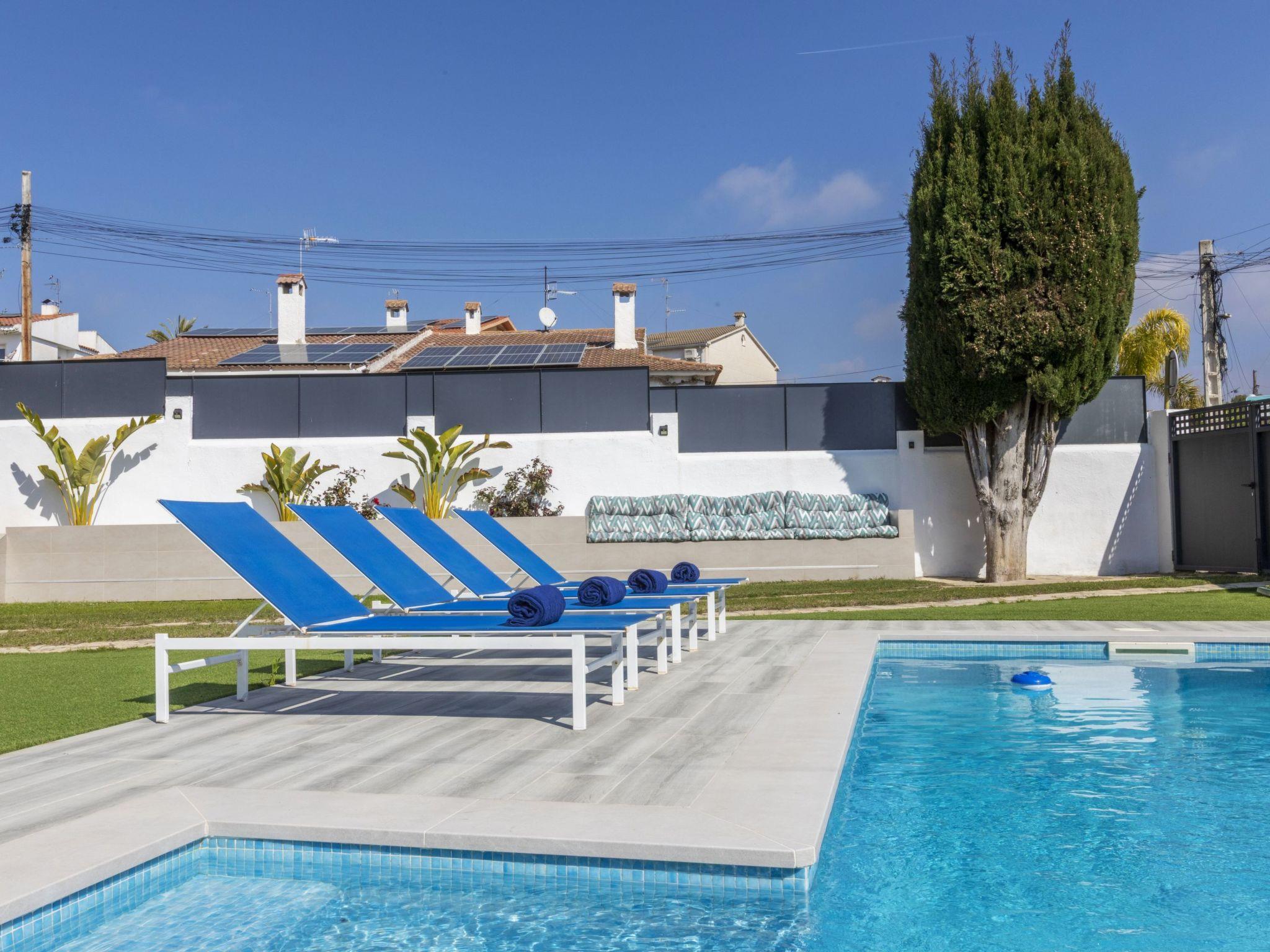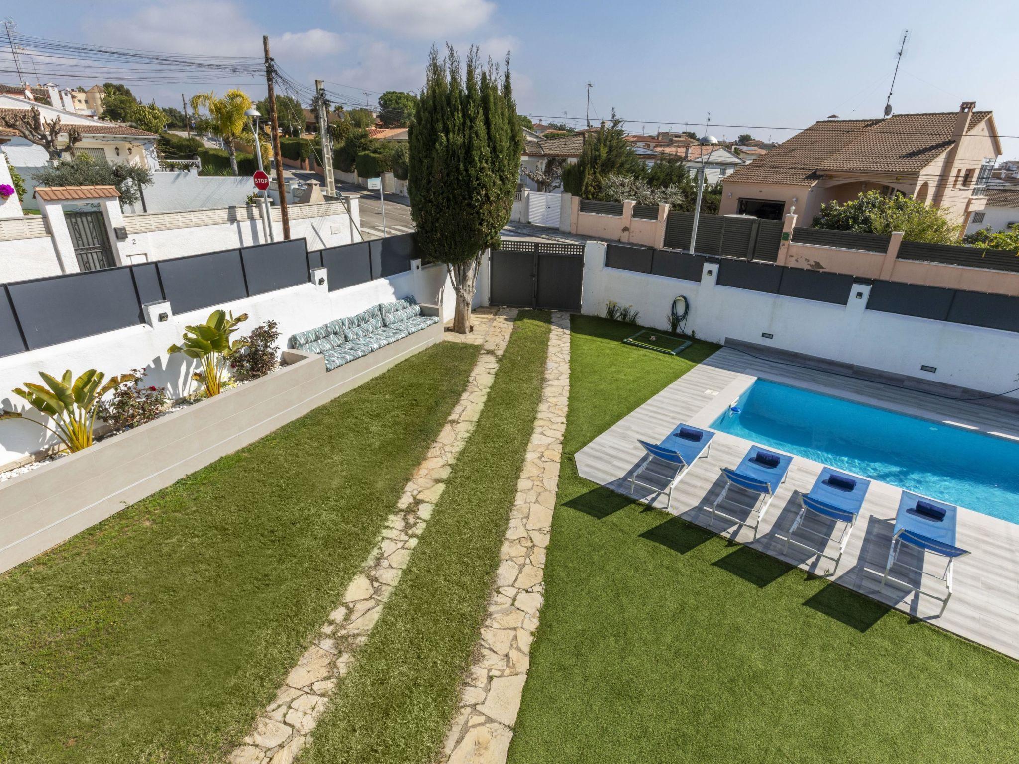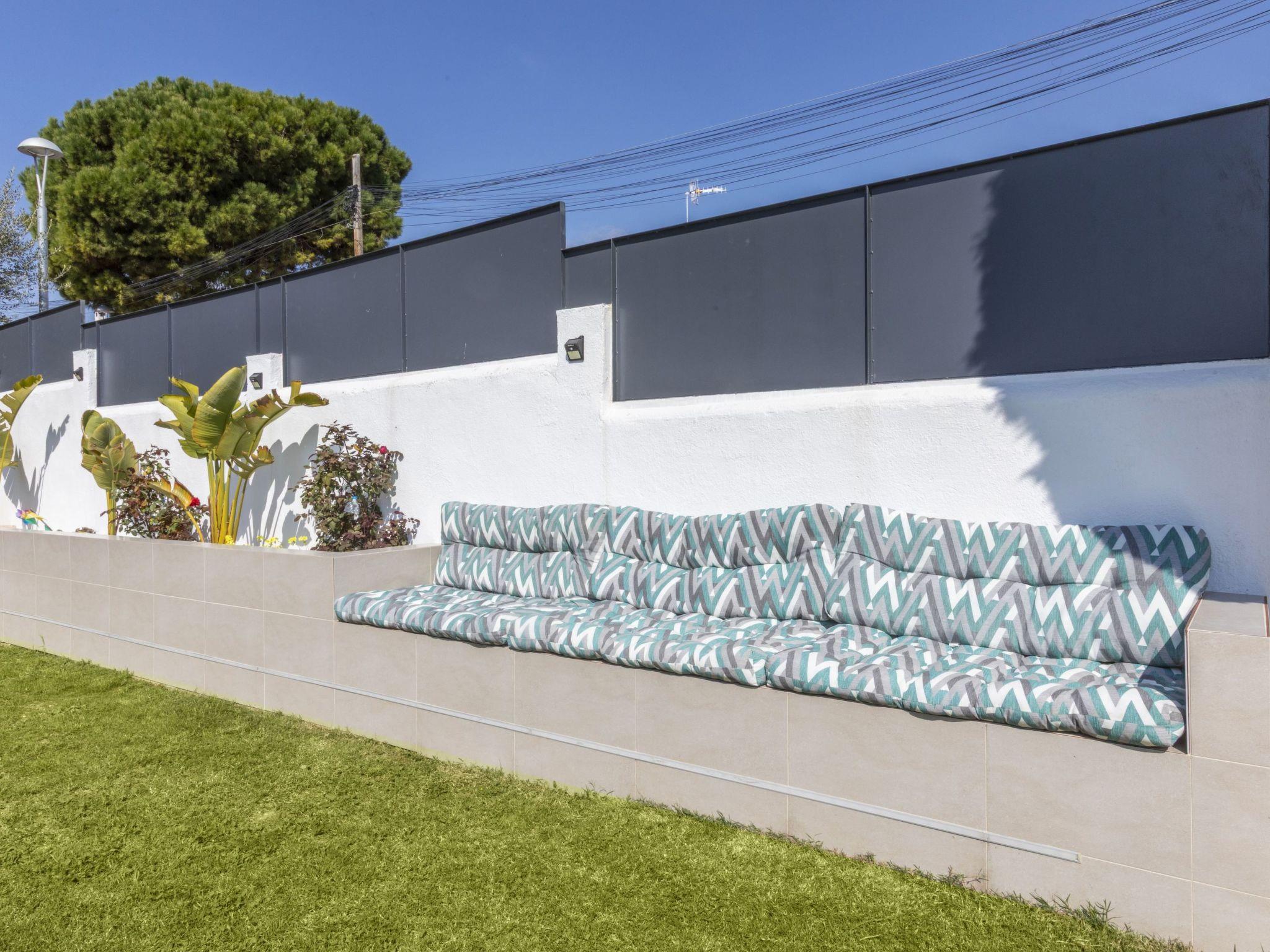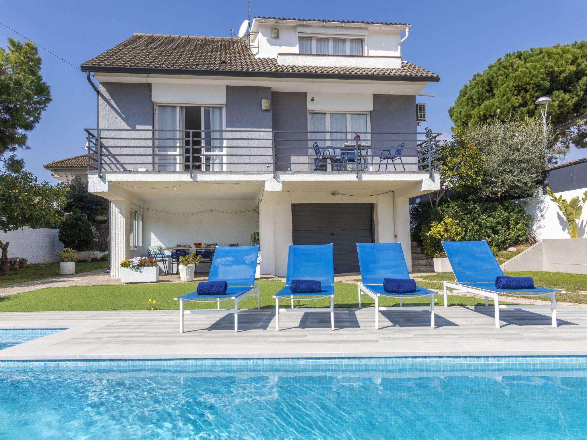 Calafell: Cosy, comfortable villa "Mi Capricho", 3 storeys. In a quiet position, 1 km from the sea, 1 km from the beach. Private: beautiful garden to relax, swimming pool angular (7 x 3 m, 1 m2, seasonal availability: 15.Jun. - 15.Oct.). Outdoor shower, terrace, garden furniture, barbecue, pool maintenance by the owner/gardener. In the house: air conditioning, washing machine. Shop 500 m, grocery, supermarket 850 m, restaurant 1 km, bar 1 km, bus stop "Calafell pueblo" 1 km, railway station "Calafell" 1.5 km, sandy beach "Calafell" 1 km. Sports harbour 4.7 km, marina 4.7 km, golf course (18 hole) 1.5 km, surf school 2.3 km, sailing school 2.3 km, tennis 450 m. Nearby attractions: Barcelona 65 km, Sitges 29 km, Tarragona 37 km, Port Aventura 50 km, Gold Costa Daurada 3 km. Hiking paths: Castell de la santa creu 1.5 km, Cami de Sota 1.4 km, Cami vell de Calafell 1.7 km. The owner does not accept any youth groups. Neighbourhood highly sensitive to noise. Quietness and good behaviour expected.