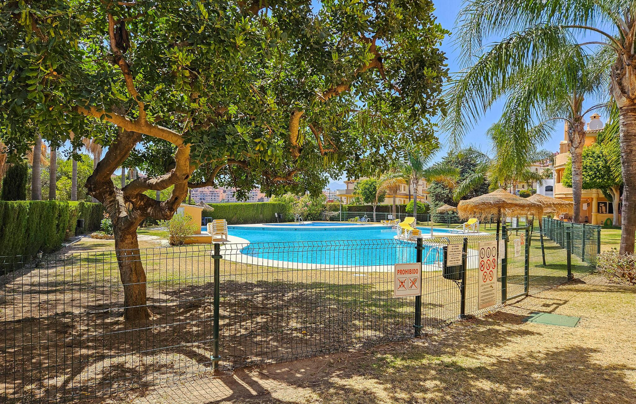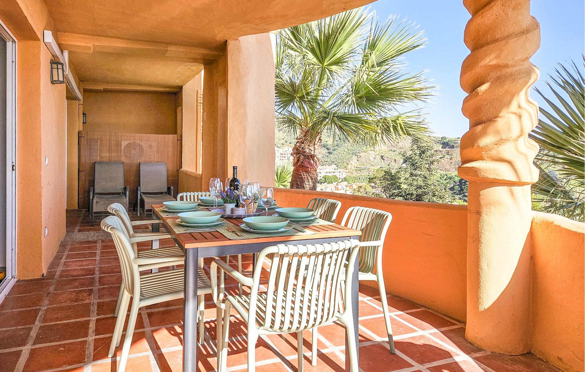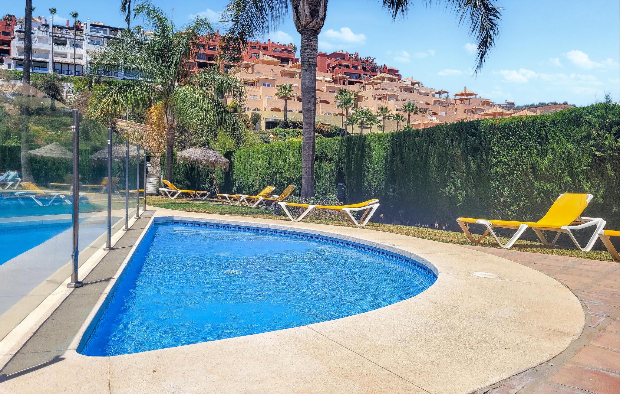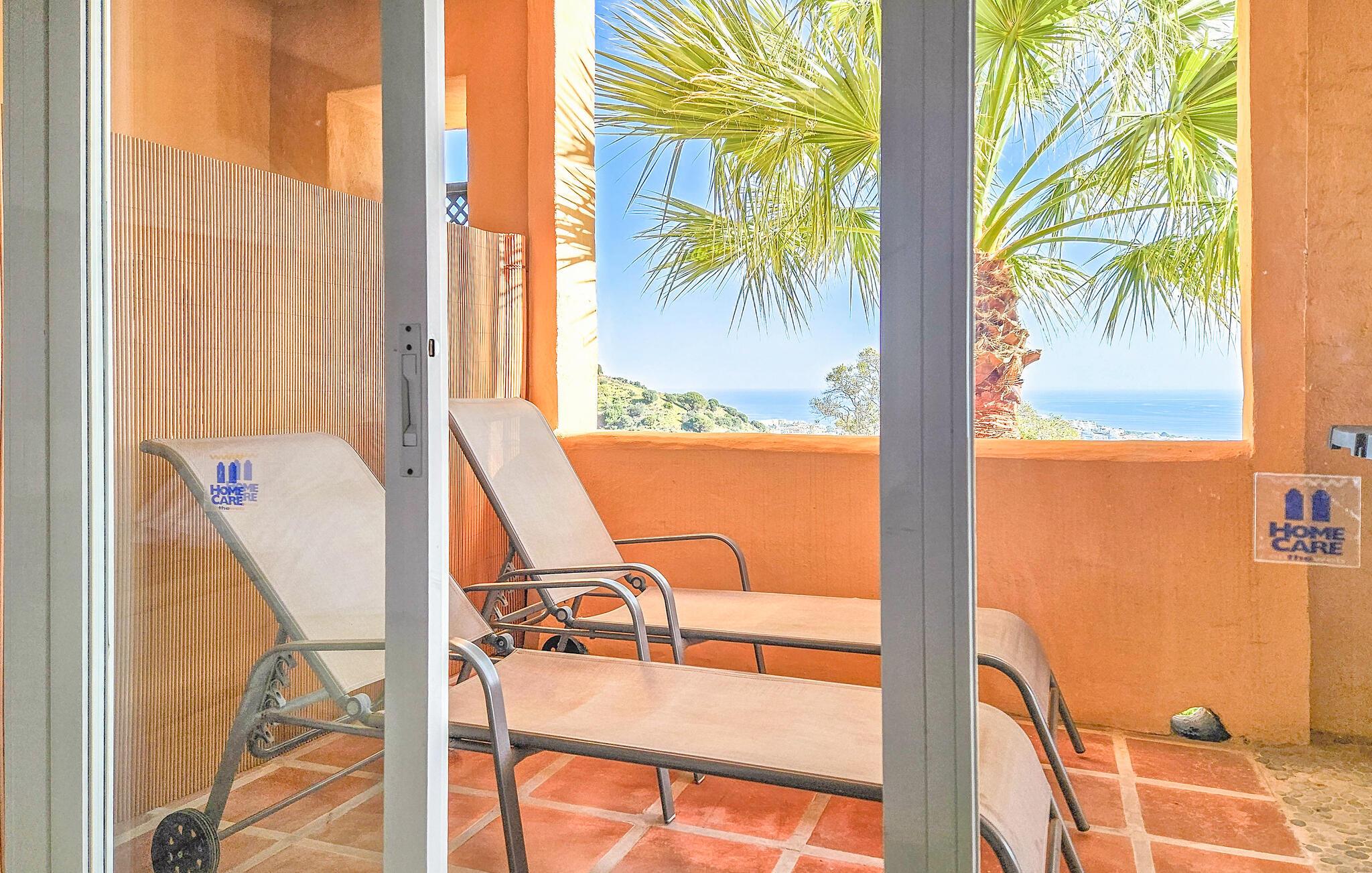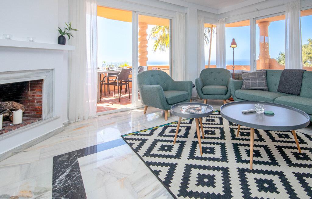Denne luksuriøse og solrige 3 værelses ferielejlighed ligger i El Portón-komplekset i Sitio de Calahonda og tilbyder en betagende udsigt over Middelhavet fra stue og soveværelse.