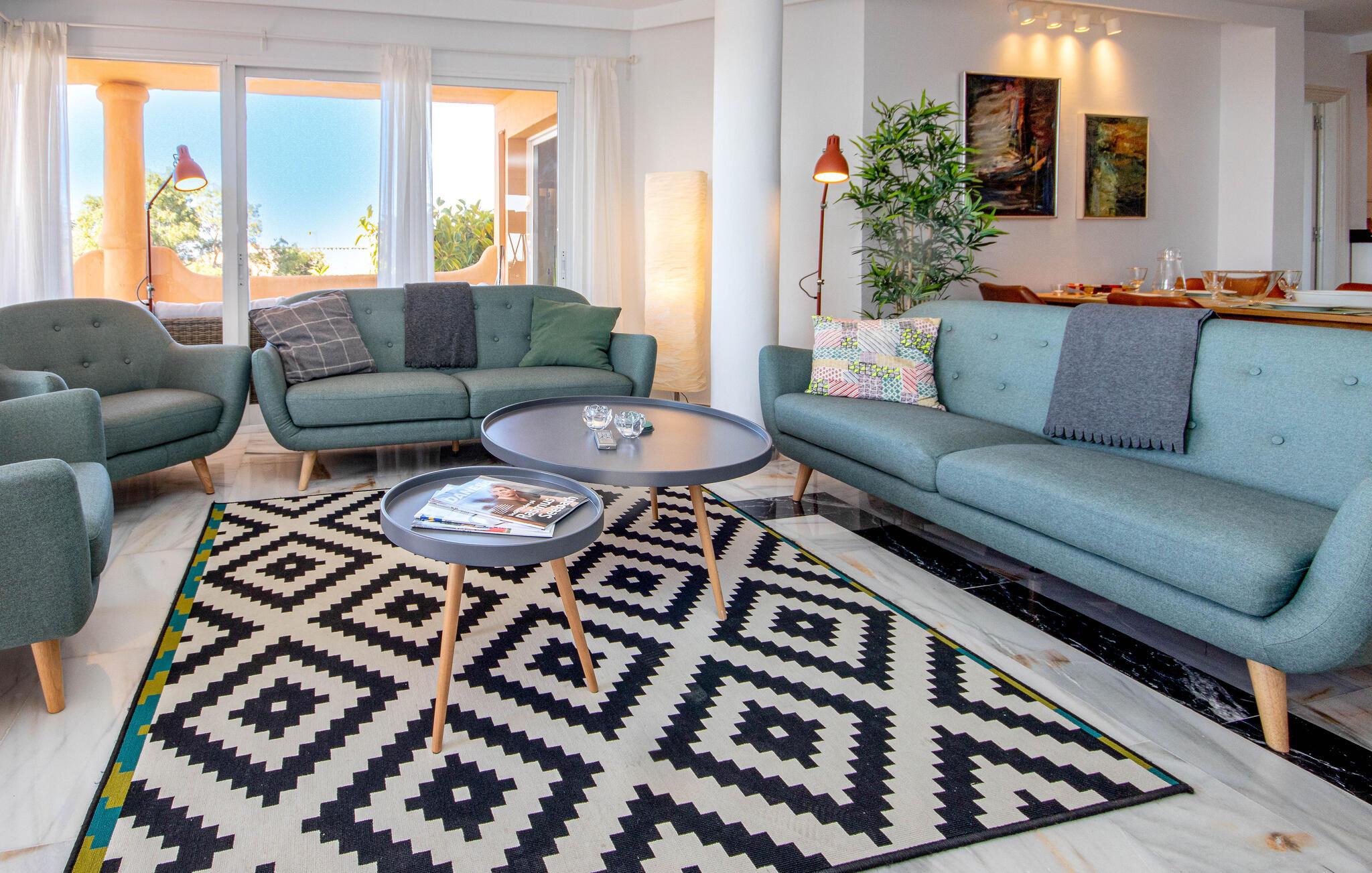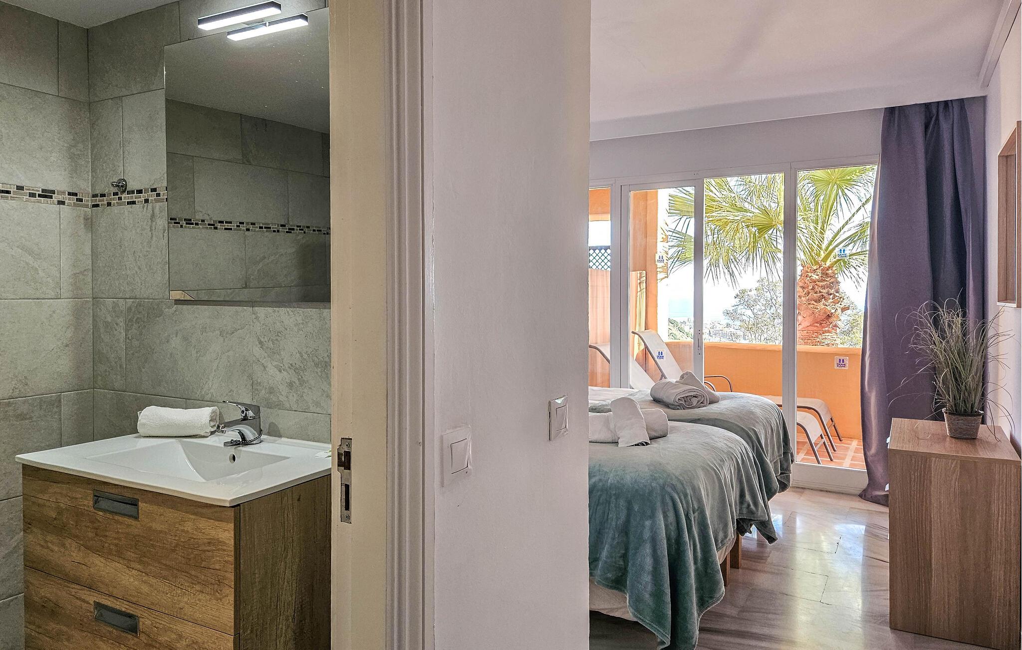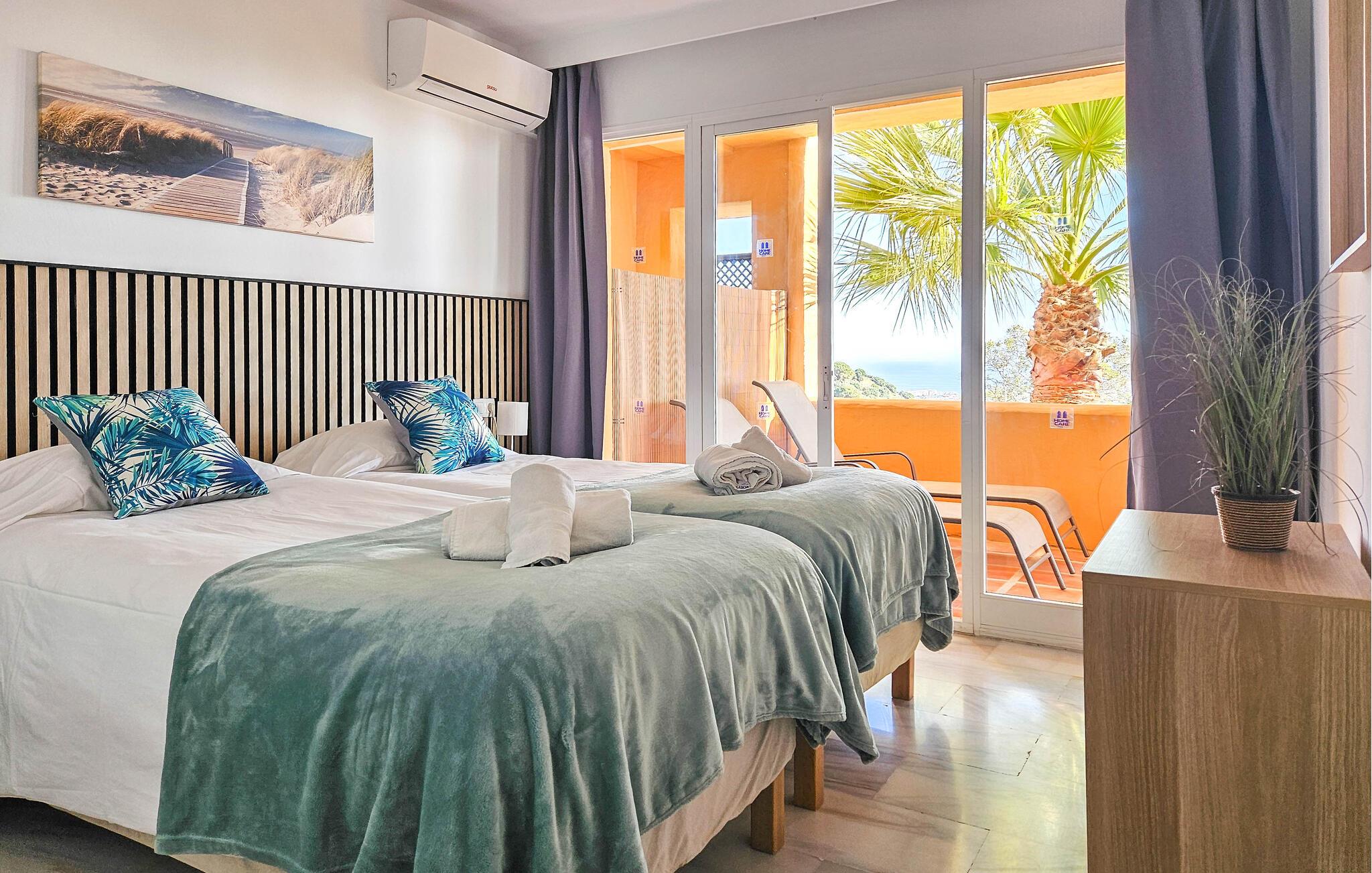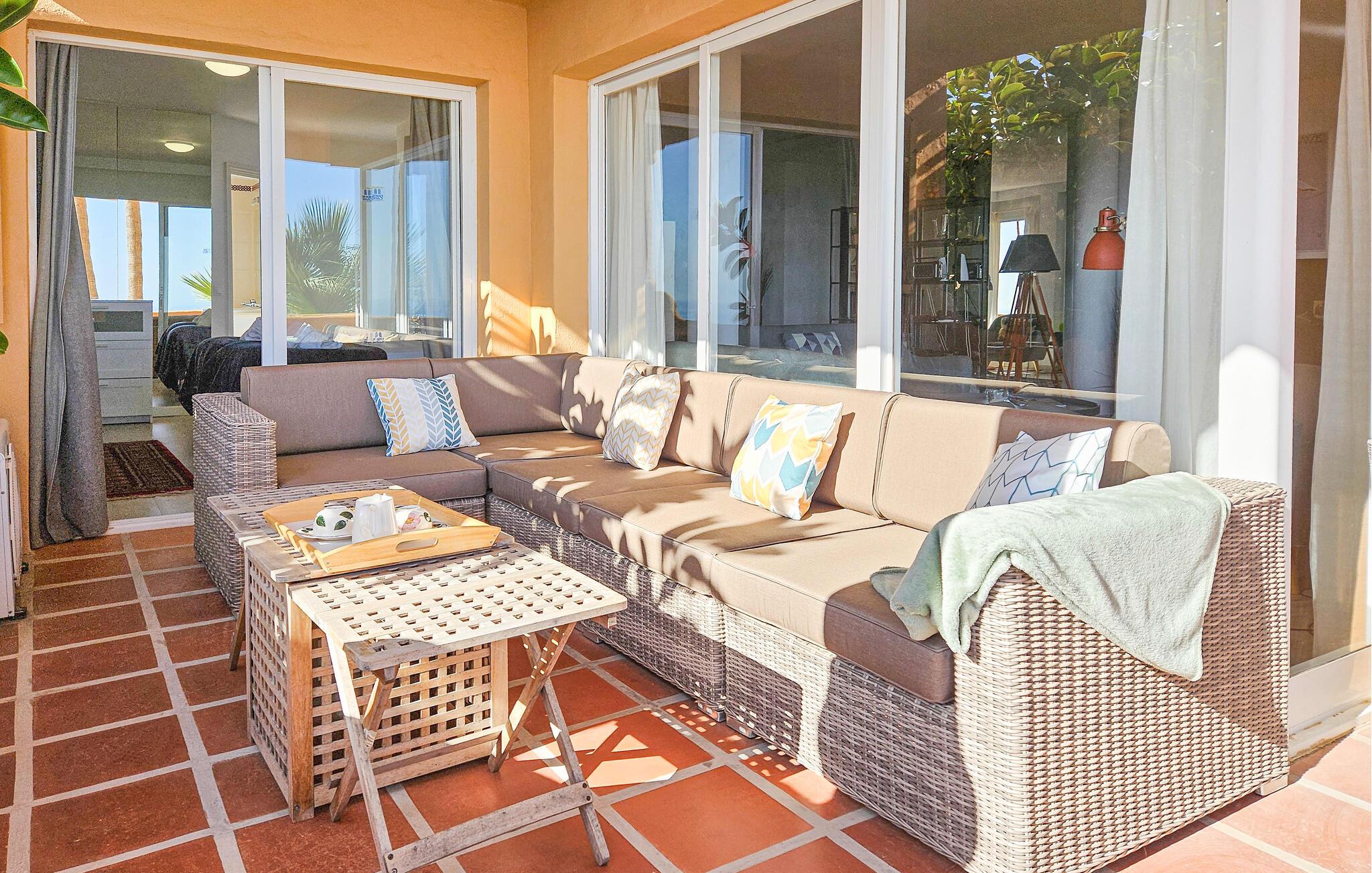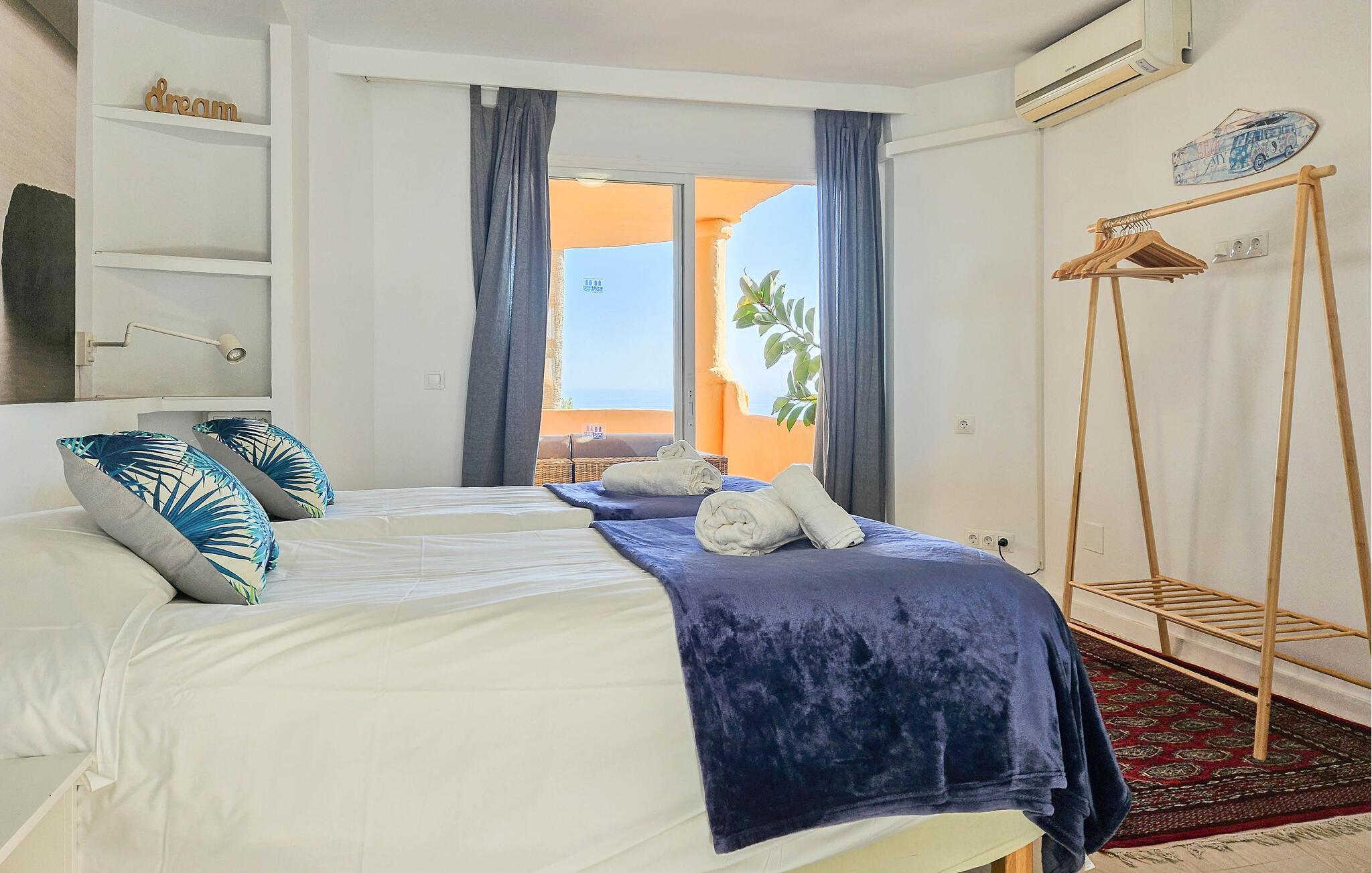 Denne luksuriøse og solrige 3 værelses ferielejlighed ligger i El Portón-komplekset i Sitio de Calahonda og tilbyder en betagende udsigt over Middelhavet fra stue og soveværelse.