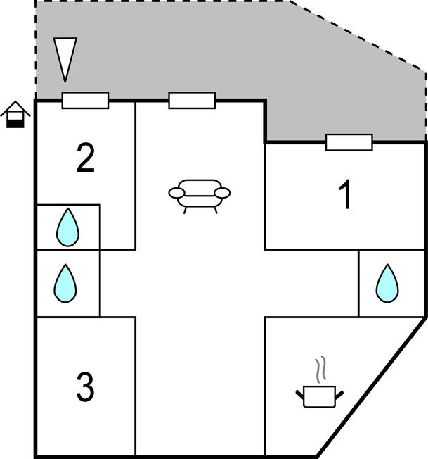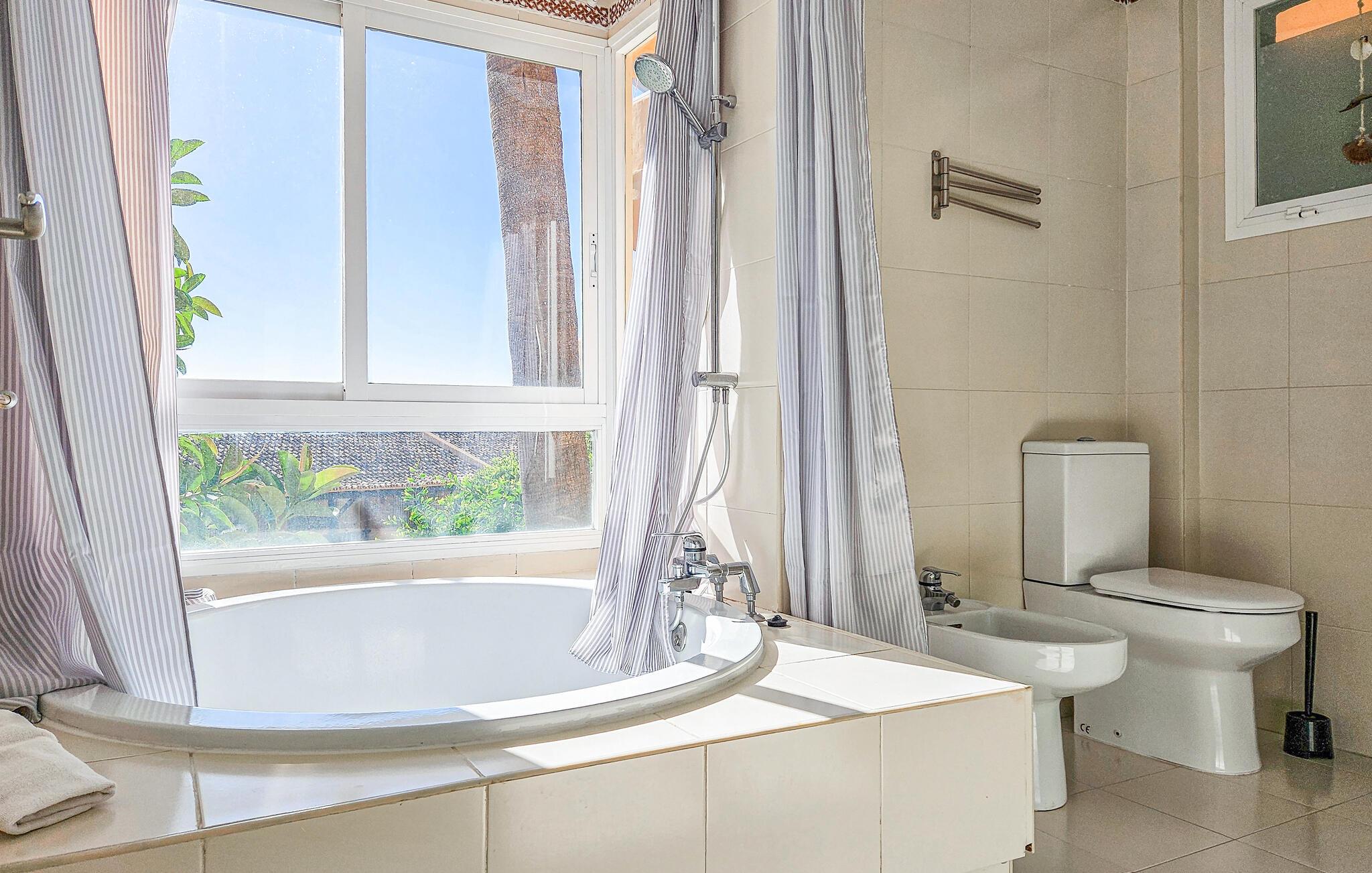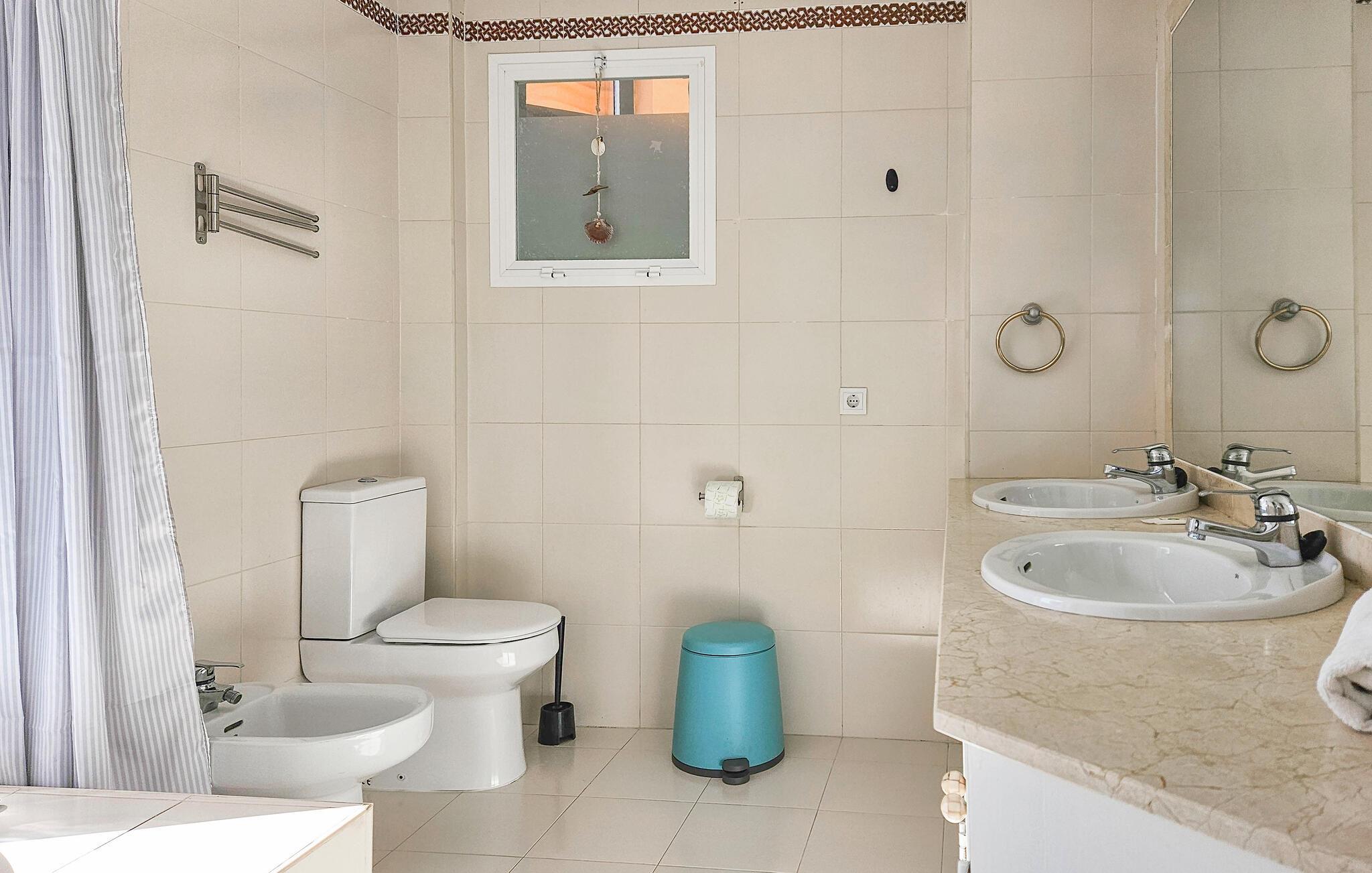 Terrassen har en spiseplads, en stor sofa, 2 liggestole og gasgrilll. Alle værelser har 2 enkeltsenge, der kan skubbes sammen som enten enkeltsenge eller en kingsize seng. Det store soveværelse har et stort badeværelse med et rundt badekar med hovedbruser og vinduer, der tilbyder naturligt lys og spektakulær udsigt. Et gæsteværelse har også sit eget brusebad, og det tredje soveværelse bruger gæstebadet.