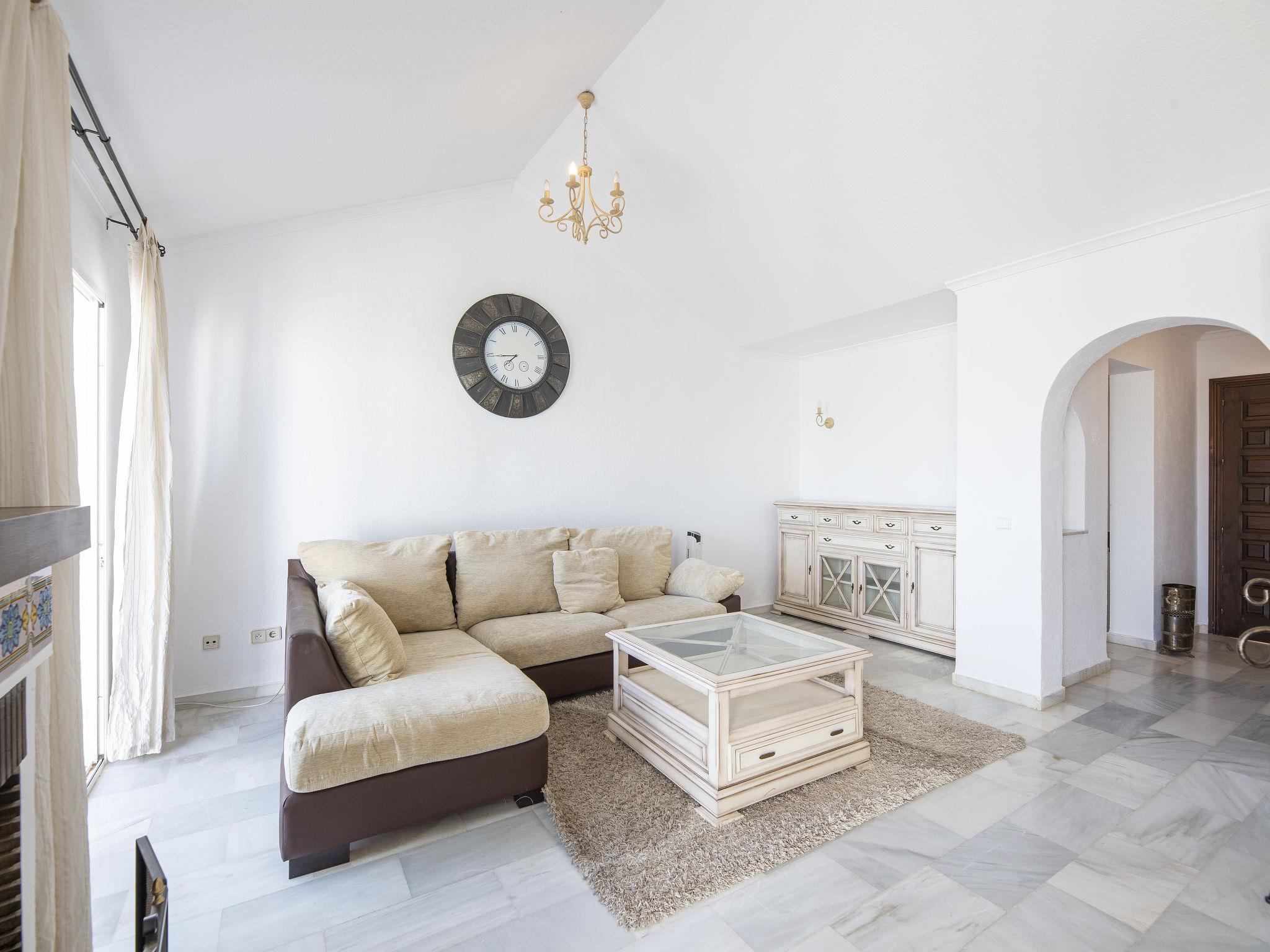 Cosy apartment block "Monte Paraiso". In the centre of Calahonda, 25 km from the centre of Puerto Banus, 15 km from the centre of Marbella, in a quiet, sunny position, 1 km from the sea, 1 km from the beach, south-east facing position. For shared use: beautiful garden to relax, swimming pool (seasonal availability: 01.Jun. - 15.Sep.). Unconventional pool shape. Outdoor shower, public parking on the road. Shop 250 m, supermarket 500 m, restaurant, bar, bakery 250 m, café, bus stop 600 m, sandy beach 1 km. Please note: the complex has night security. Airfield 65 km from the property.