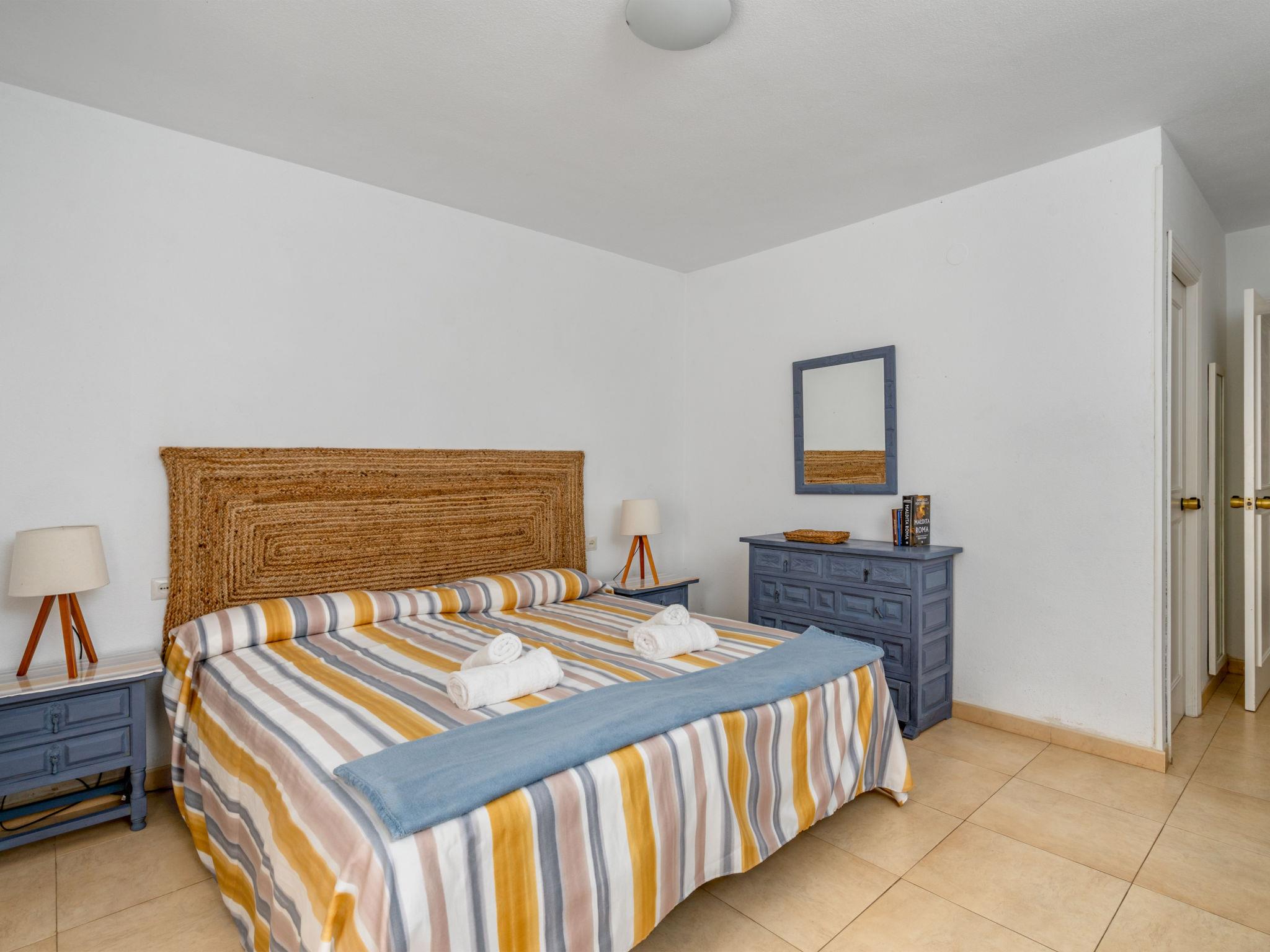 "Dona Lola", 4-room apartment 100 m2, on the ground floor. Simple and cosy furnishings: living/dining room with dining table, digital TV, DVD, air conditioning and forced-air heating. Exit to the terrace. 1 room with 2 beds (90 cm, length 190 cm), TV, DVD, air conditioning and forced-air heating. 1 small room with 2 beds (90 cm). 1 double bedroom with 2 beds (80 cm). Kitchen (4 hot plates, oven, dishwasher, microwave). 2 baths/bidet/WC. Electric heating. Terrace furniture. View of the swimming pool. Facilities: washing machine, iron, children's high chair, baby cot, hair dryer. The balcony of the apartment looks at the swimming pool with entrance for adults only. VUT/MA/08881 // Reg. Nr.: ESFCTU0000290440003201520000000000000000VUT/MA/088810