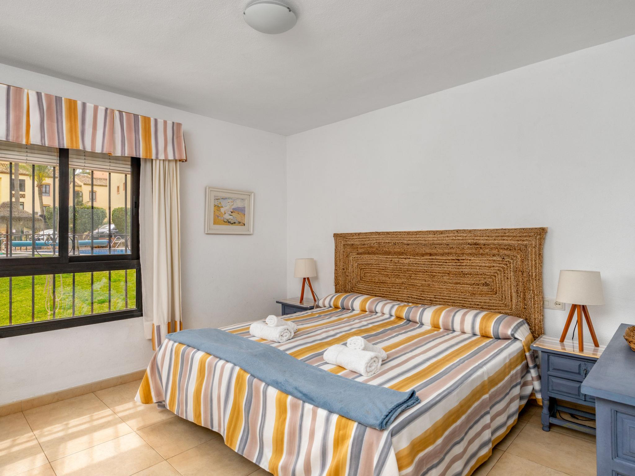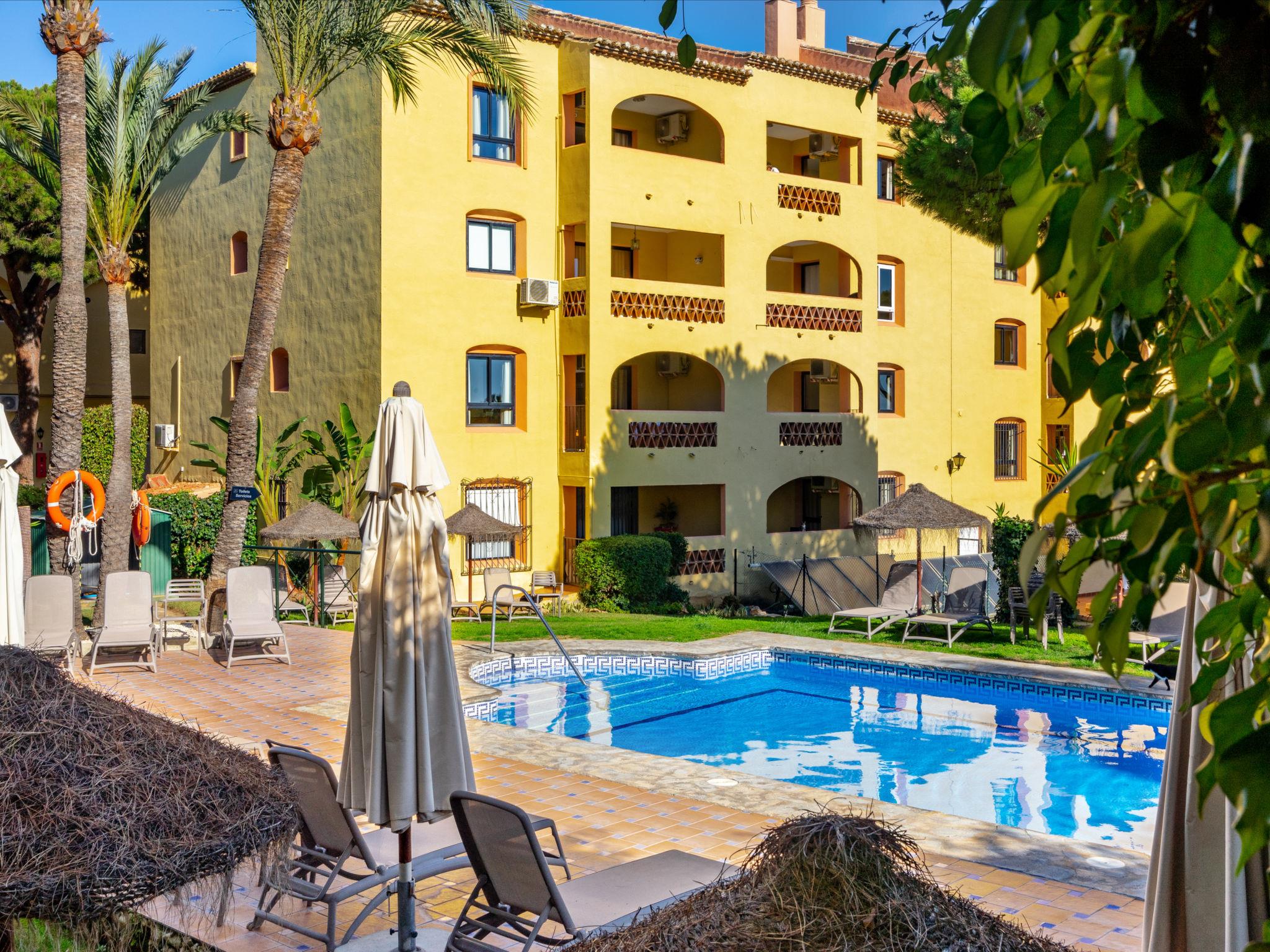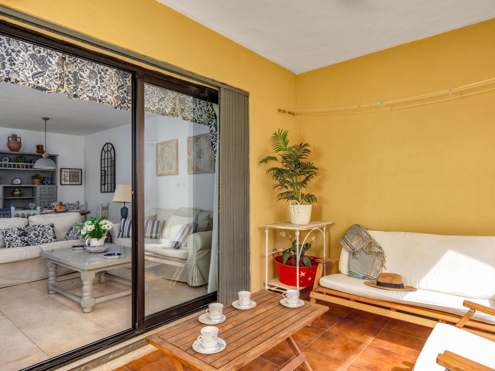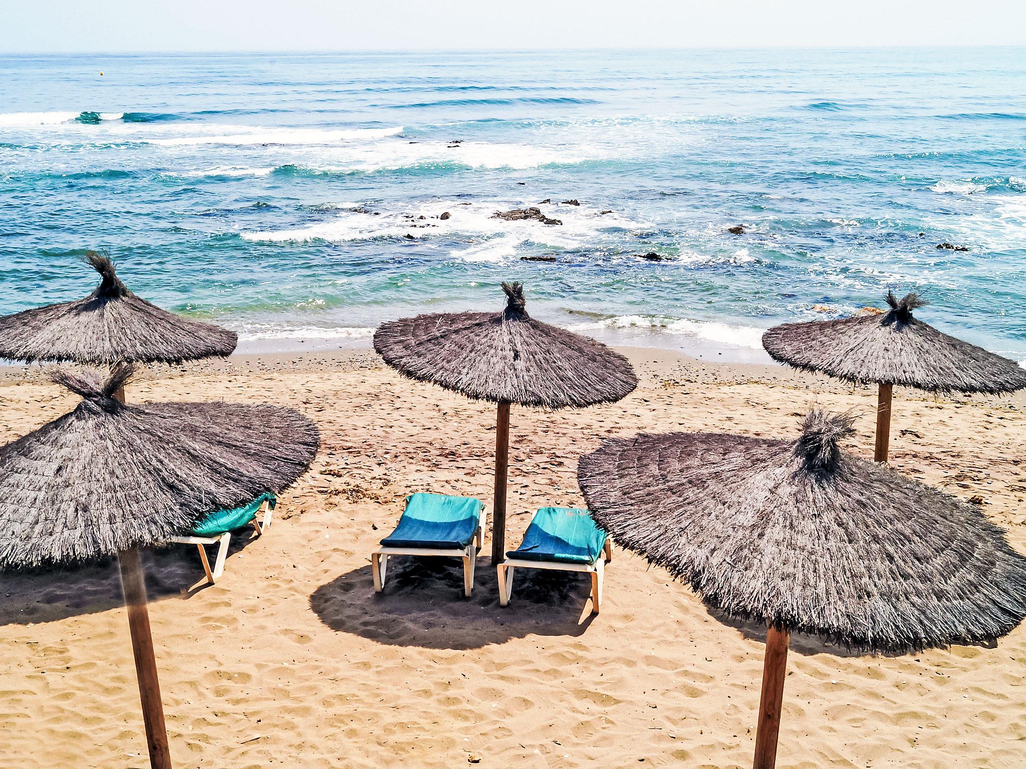 Calahonda 15 km from Marbella: *Extra: 2 heated swimming pools (outside and inside), 1 outside swimming pool, hot tub, Turkish bath, sauna, gym and aqua gym classes. Child friendly resort "Dona Lola". In a central, quiet position, 200 m from the sea, 200 m from the beach. For shared use: swimming pool (seasonal availability: 01.Jan. - 31.Dec.). Children's pool, outdoor shower, tennis (extra), table tennis, children's playground. In the complex: reception, restaurant, bar, bistro, shopping facilities, kiosk, laundry. Stepped path (15 steps) to the house. Shop 50 m, supermarket 400 m, shopping centre 200 m, restaurant, bar, café 20 m, bus stop "Las Postas" 700 m. Please note: entertainment in the season. Object suitable for 6 adults + 2 children. The complex has night security.