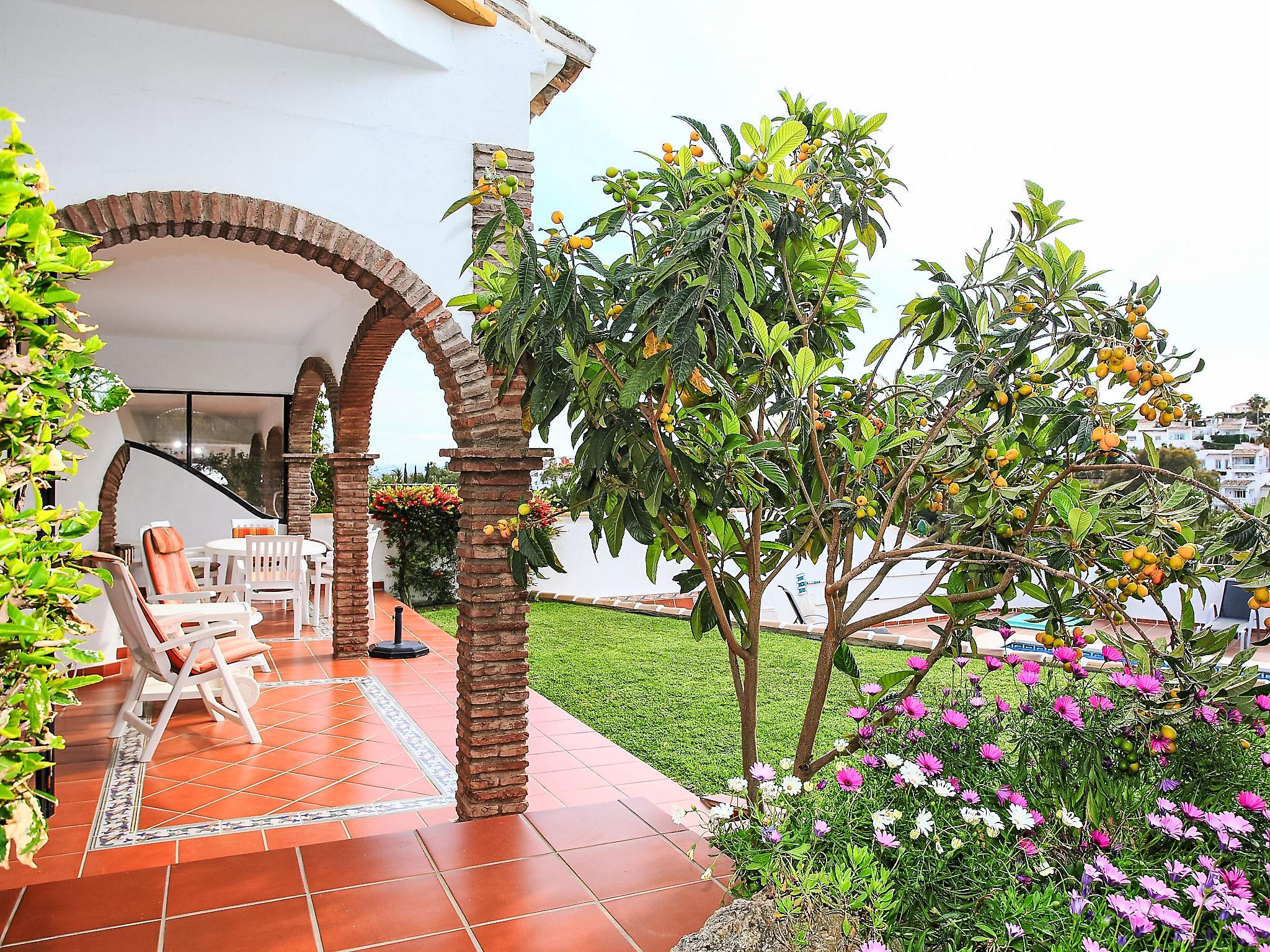 Sitio de Calahonda: Cosy, comfortable villa "Villa Cielo", 2 storeys, semi-detached. In the resort, 700 m from the centre, 5 km from the centre of La Cala de Mijas, 15 km from the centre of Marbella, in a quiet, sunny position, 1.2 km from the sea, in a cul-de-sac. Private: garden 270 m2 with lawn and trees, swimming pool (9 x 4 m, seasonal availability: 01.Jan. - 31.Dec.). Garden furniture, barbecue, parking at the house. Supermarket 1 km, restaurant 1 km, bar 1 km, bus stop "Leila Playa" 1.3 km, sandy beach 1.2 km. Sports harbour 3 km, golf course (9 hole) 1.5 km. Nearby attractions: Málaga 40 km. Please note: baby equipment on request (extra). Object suitable for 6 adults + 2 children groups of teenagers on request only. Neighbourhood highly sensitive to noise. Quietness and good behaviour expected.