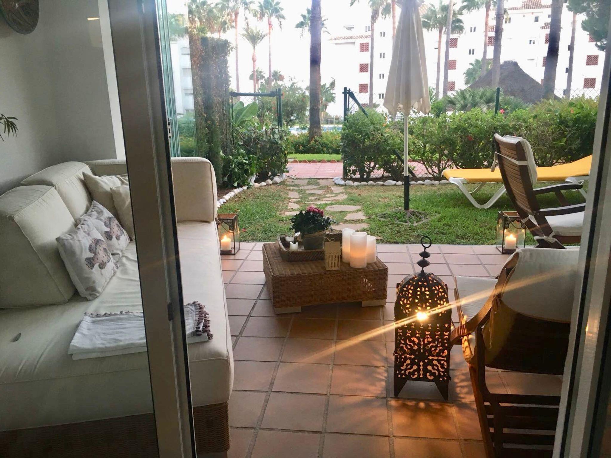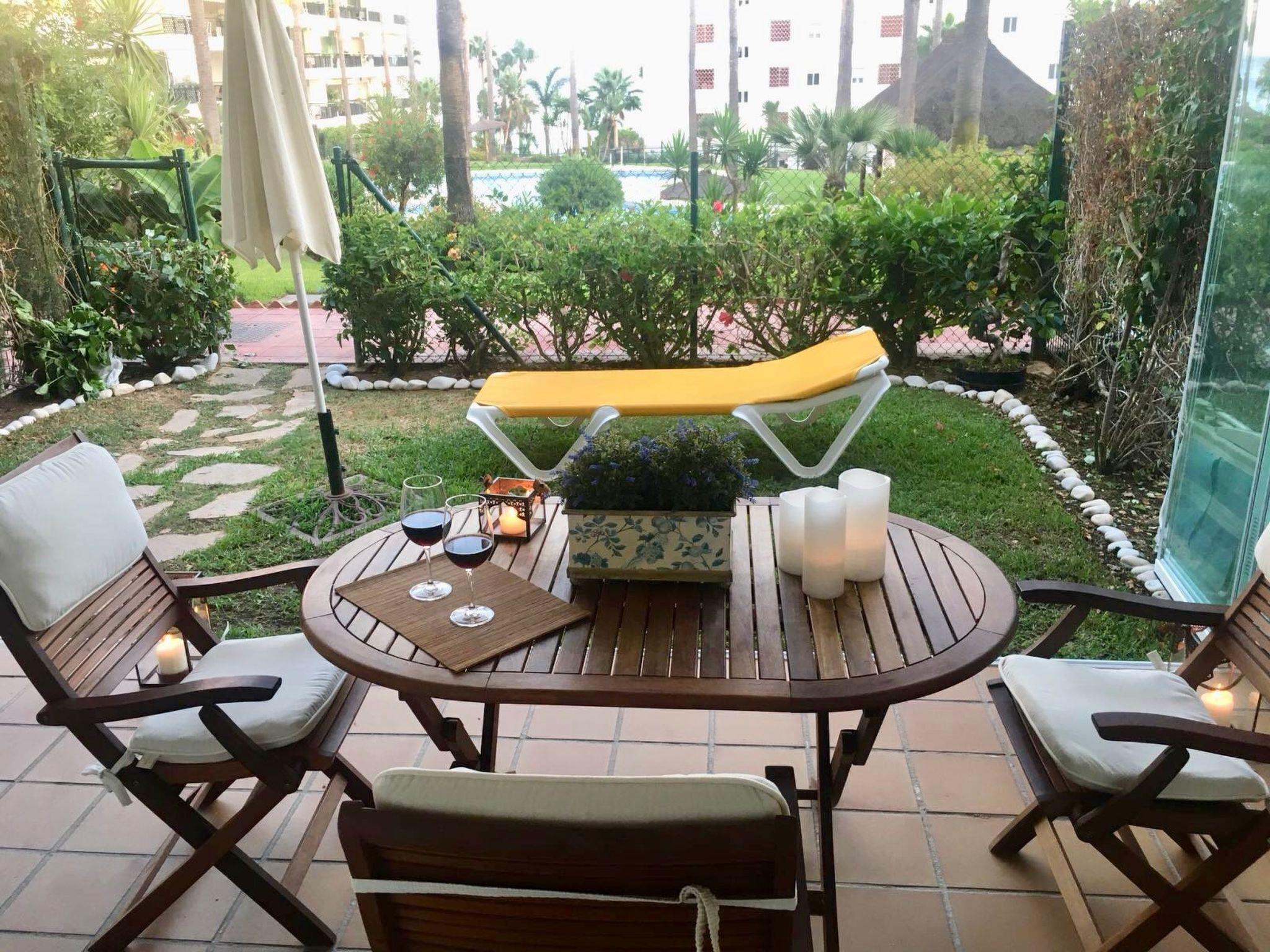 It is our usual holiday flat for my family, so it is nice, cosy and very well kept, equipped and decorated, with 1 bedroom plus 1 sofa bed, large equipped terrace and private garden and direct access to the gardens of the urbanisation and the swimming pools, through a glass curtain with security door.