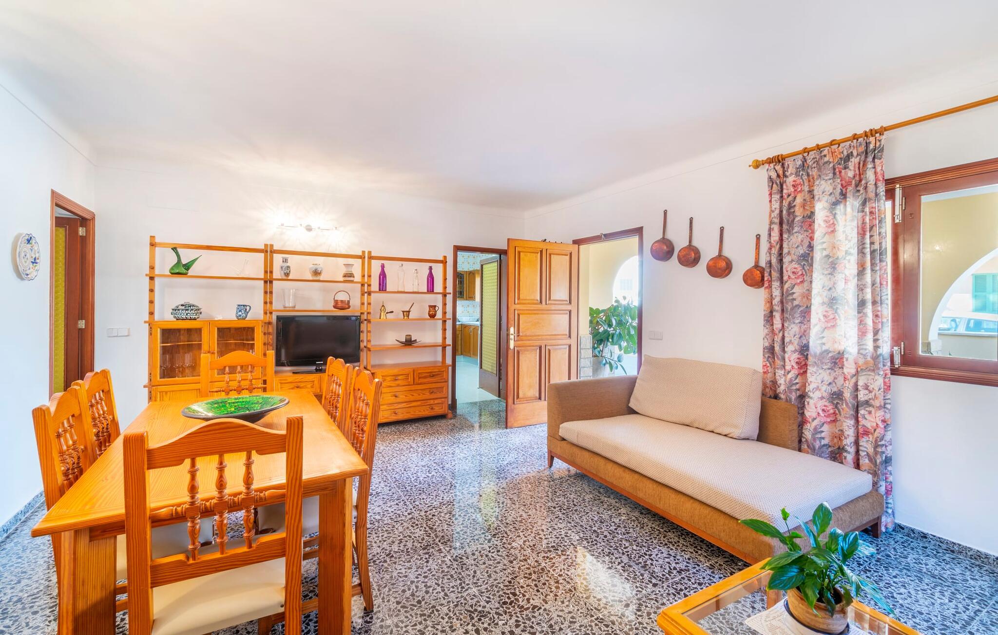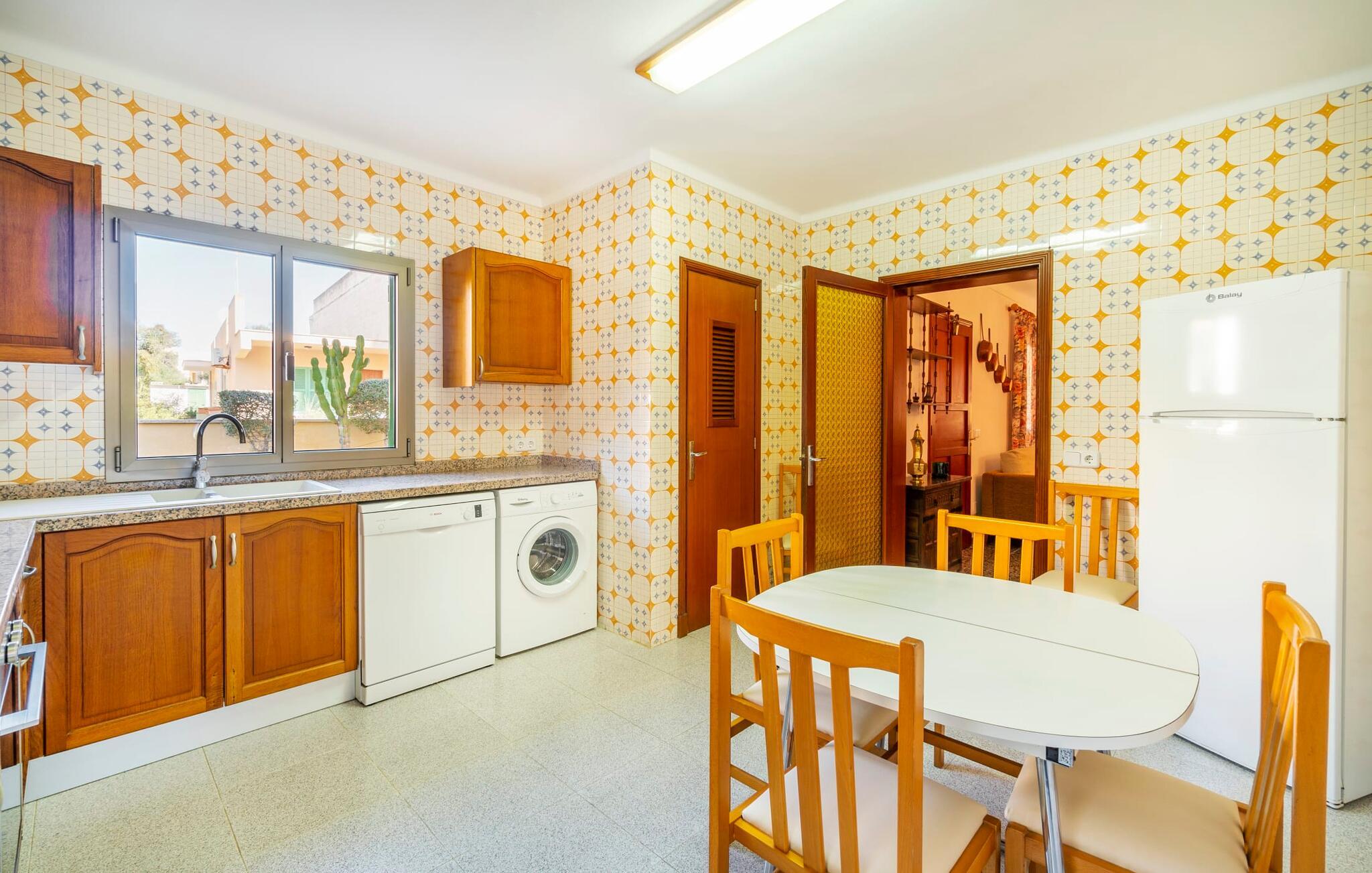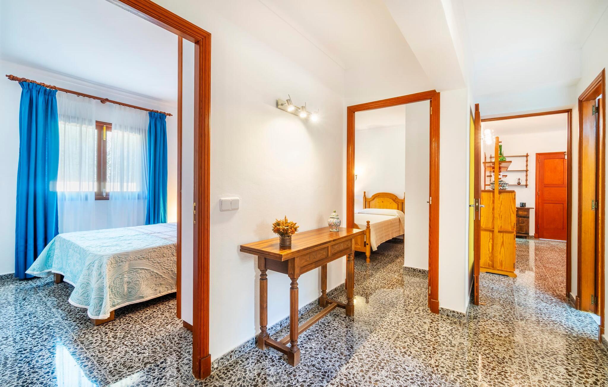 Blæksprutter er smarte dyr. Med mange smarte tricks og en fantastisk evne til at forvandle sig, er de ideel til livet i havet. Det gælder også villaen “Calamar 7”, der – beliggende midt i kystbyen Portocolom – repræsenterer en overkommelig mulighed for at kombinere urban mangfoldighed med en maritim atmosfære. Ideelle forhold for en fantastisk ferie på Mallorca! Udeområdet er indrammet af forskelligartet middelhavsvegetation. Der er flere terrasser at vælge imellem, så I altid kan bo det rigtige sted efter solens vej. Vil I give jeres hud en pause, kan I også trække jer tilbage til den overdækkede terrasse med bambusmøbler. En grill er tilgængelig for at tilberede et lækkert måltid om aftenen i en hyggelig atmosfære. Havet ligger kun 250 meter væk, så I kan altid tage en fordøjelsestur inden sengetid. Selve huset kan beskrives som typisk mallorcansk i forhold til dets indretning: Designelementer som potter og tallerkener på væggene refererer til øens landbrugsfortid, som ikke længere havde noget tilfælles med nutidens berømthedspomp. Vi undgår bevidst pompøse højdepunkter, men det har det hyggelige hus på Mallorca ikke brug for. For det er sammenkomsterne i den hyggelige stue, den hyggelige madlavning i det fuldt udstyrede køkken og de stille nætter i de praktisk indrettede fire dobbeltværelser, der gør denne jordnære ejendom så attraktiv. To af soveværelserne har en king-size seng, to har hver to enkeltsenge, så forskellige rejsekonfigurationer kan tænkes. To badeværelser sikrer, at der ikke er kø til brusebadet om morgenen. Fans sikrer, at de fugtige sommerdage ikke går jer til hovedet. Takket være Smart TV'et kan I også slappe af om aftenen med en god film. I villaen “Calamar 7” i kystbyen Portocolom kan I tilbringe jeres ferie i et velholdt boligområde tæt på havet - med mange muligheder for at forkæle jeres smagsløg på restauranter eller hamstre lækkerier til den lokale grill . Ud over den naturlige havn, den såkaldte Calas de Mallorca, giver adskillige smukke strande i regionen mulighed for at komme i kontakt med havet. Disse kan også udforskes under vandreture.