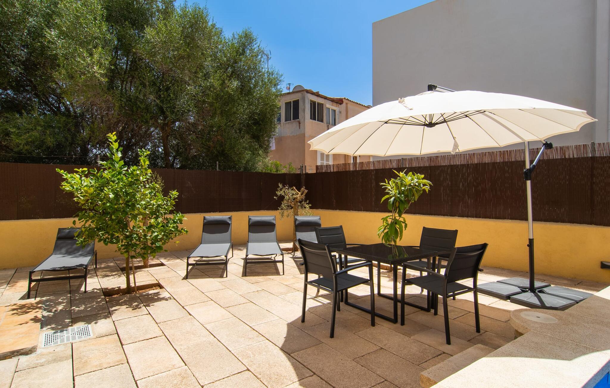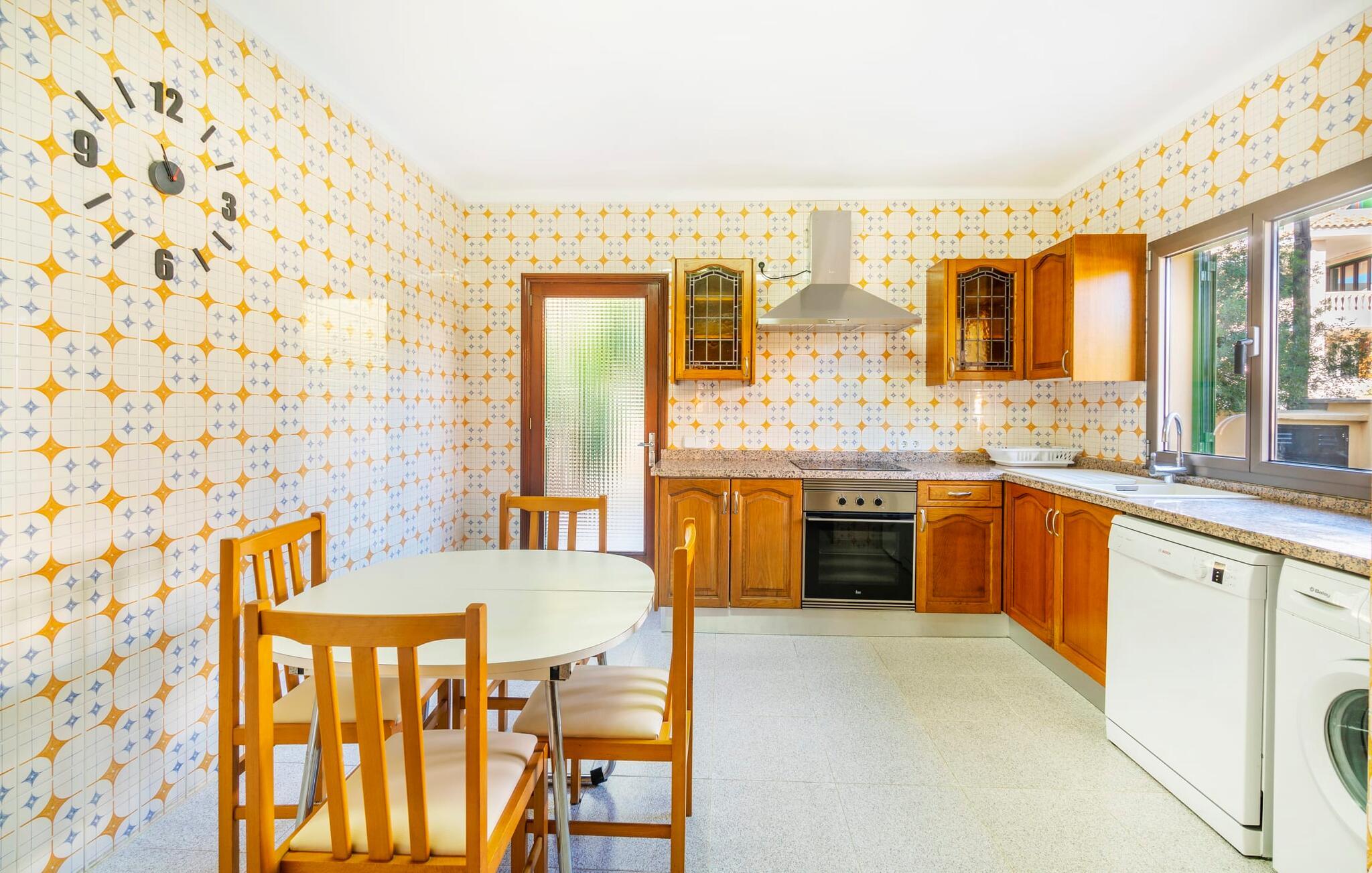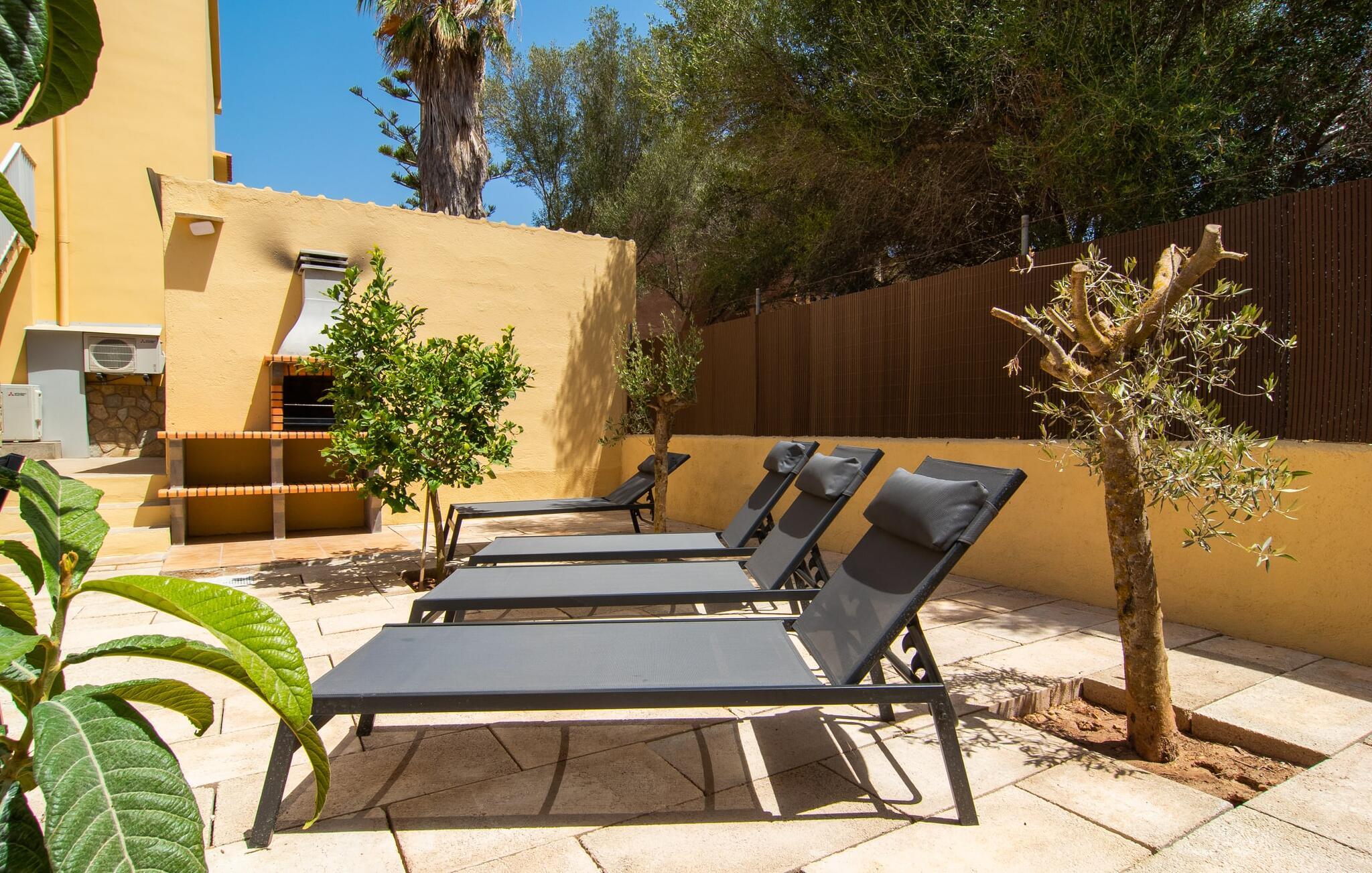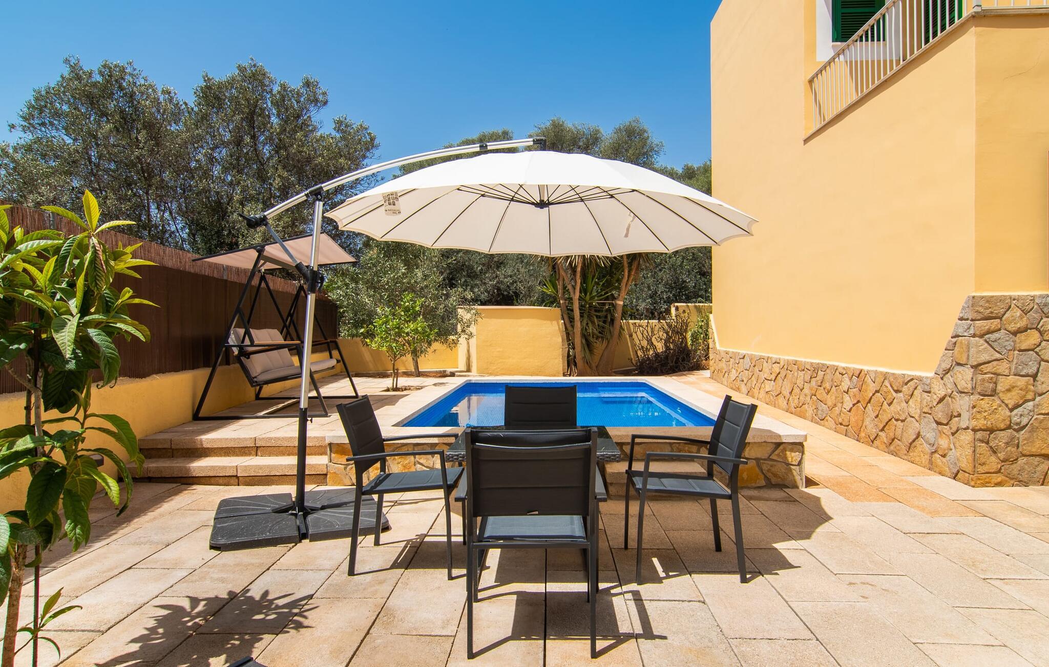 Blæksprutter er smarte dyr. Med mange smarte tricks og en fantastisk evne til at forvandle sig, er de ideel til livet i havet. Det gælder også villaen “Calamar 7”, der – beliggende midt i kystbyen Portocolom – repræsenterer en overkommelig mulighed for at kombinere urban mangfoldighed med en maritim atmosfære. Ideelle forhold for en fantastisk ferie på Mallorca! Udeområdet er indrammet af forskelligartet middelhavsvegetation. Der er flere terrasser at vælge imellem, så I altid kan bo det rigtige sted efter solens vej. Vil I give jeres hud en pause, kan I også trække jer tilbage til den overdækkede terrasse med bambusmøbler. En grill er tilgængelig for at tilberede et lækkert måltid om aftenen i en hyggelig atmosfære. Havet ligger kun 250 meter væk, så I kan altid tage en fordøjelsestur inden sengetid. Selve huset kan beskrives som typisk mallorcansk i forhold til dets indretning: Designelementer som potter og tallerkener på væggene refererer til øens landbrugsfortid, som ikke længere havde noget tilfælles med nutidens berømthedspomp. Vi undgår bevidst pompøse højdepunkter, men det har det hyggelige hus på Mallorca ikke brug for. For det er sammenkomsterne i den hyggelige stue, den hyggelige madlavning i det fuldt udstyrede køkken og de stille nætter i de praktisk indrettede fire dobbeltværelser, der gør denne jordnære ejendom så attraktiv. To af soveværelserne har en king-size seng, to har hver to enkeltsenge, så forskellige rejsekonfigurationer kan tænkes. To badeværelser sikrer, at der ikke er kø til brusebadet om morgenen. Fans sikrer, at de fugtige sommerdage ikke går jer til hovedet. Takket være Smart TV'et kan I også slappe af om aftenen med en god film. I villaen “Calamar 7” i kystbyen Portocolom kan I tilbringe jeres ferie i et velholdt boligområde tæt på havet - med mange muligheder for at forkæle jeres smagsløg på restauranter eller hamstre lækkerier til den lokale grill . Ud over den naturlige havn, den såkaldte Calas de Mallorca, giver adskillige smukke strande i regionen mulighed for at komme i kontakt med havet. Disse kan også udforskes under vandreture.