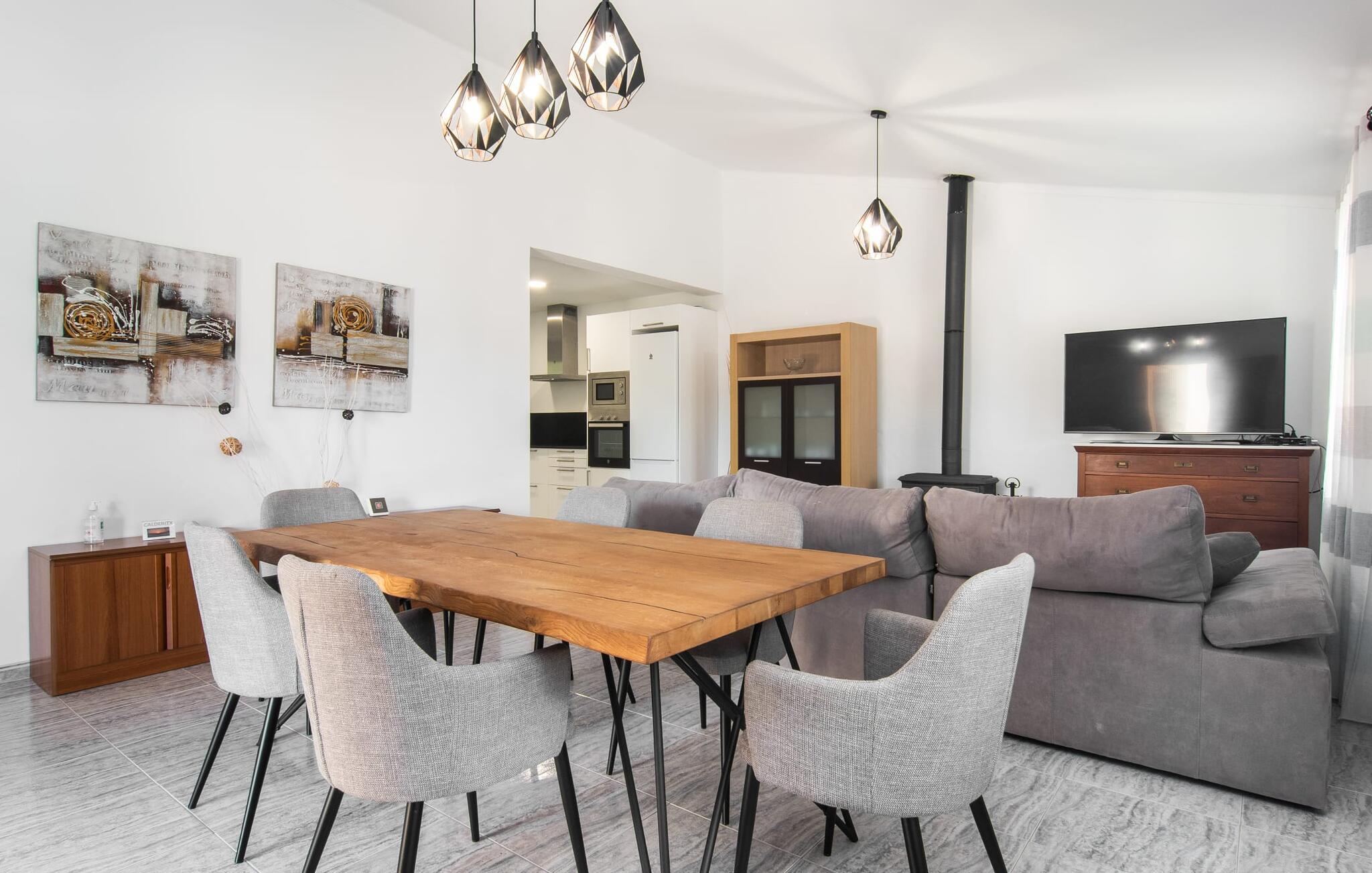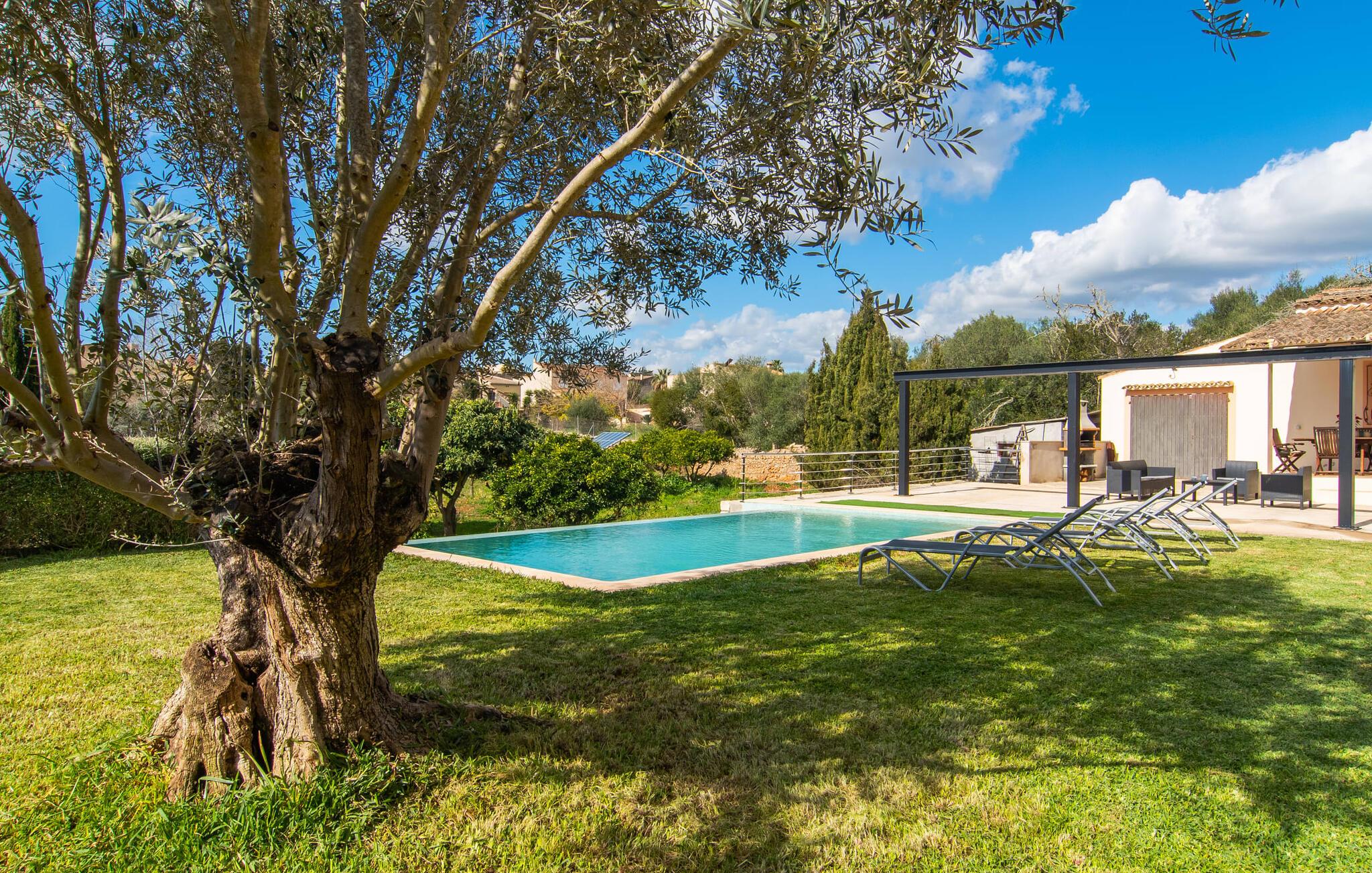 Den indbydende "Calderitx" bondegård er ideel til familier eller cykelentusiaster. I den charmerende feriebolig i centrum af øen vil I opleve en helt igennem vellykket ferie i mallorcansk stil. Det medvirker også det smukt designede udeareal i det roligt beliggende feriehus. Infinity-poolen er indlejret i en græsplæne. Der er komfortable liggestole til solbadning eller en afslappende siesta. Der er i alt to overdækkede udendørs siddepladser. Den afslappede lounge med afslappede siddepladser er i skyggen af markiser. Spiseområdet, bygget på verandaen direkte ved huset, er et vidunderligt sted at spise udenfor på grund af det milde mallorcanske klima. Det er i umiddelbar nærhed af den murede grillplads. Men verandaen er også velegnet til morgenmad i jeres eget fritidstempo. Børn finder plads nok til at lege. Et bordtennisbord er også tilgængeligt til sjove dueller. Interiøret i det kompakte bondehus i en afslappet Mallorca-stil er ideel til fire personer. Omdrejningspunktet er det lyse, kombinerede opholds- og spiseområde med åbent køkken. Den komfortable indretningsstil bevæger sig mellem moderne og mallorcansk hygge. Pejsen er ideel til de køligere stunder af året. Der er også varm-kold aircondition. I vil finde afslappende søvn i de to dobbeltværelser. Mellem de to soveværelser er det moderne badeværelse med bruseniche. Hvis der er behov for et hjemmekontor, er det bestemt muligt takket være fiberoptisk internet. I bestemmer selv, hvordan I vil tilbringe jeres ferie i "Calderitx"-gården - alt er muligt! Den familievenlige bondegård "Calderitx" tilbyder et sted at slappe af med pool, bordtennis, skyggefuld lounge og grill. Det smukke feriehus ligger i udkanten af Ariany, så hverdagens indkøb kan klares hurtigt. De smukke strande i Alcúdia-bugten, herunder Son Baulo eller Son Serra de Marina, er omkring 25 minutter væk i bil.