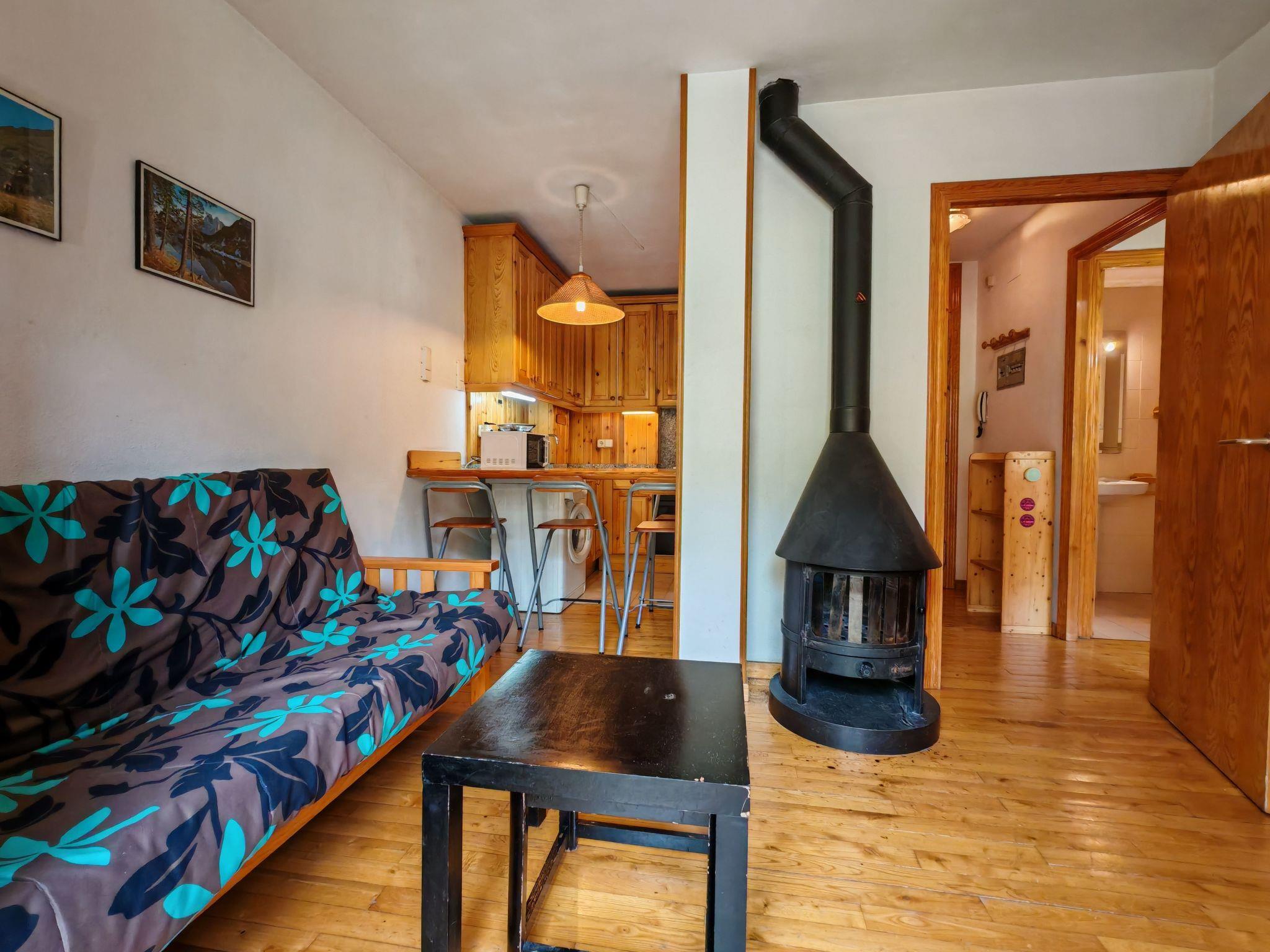 The flat's balcony is a quiet space that invites you to enjoy moments of peace and quiet, with views of the impressive Aüt. Located on the first floor of a charming country house, this flat perfectly combines rustic charm with contemporary comforts. The addition of a fireplace in the living room creates a warm and cosy atmosphere, ideal to enjoy on cooler evenings.