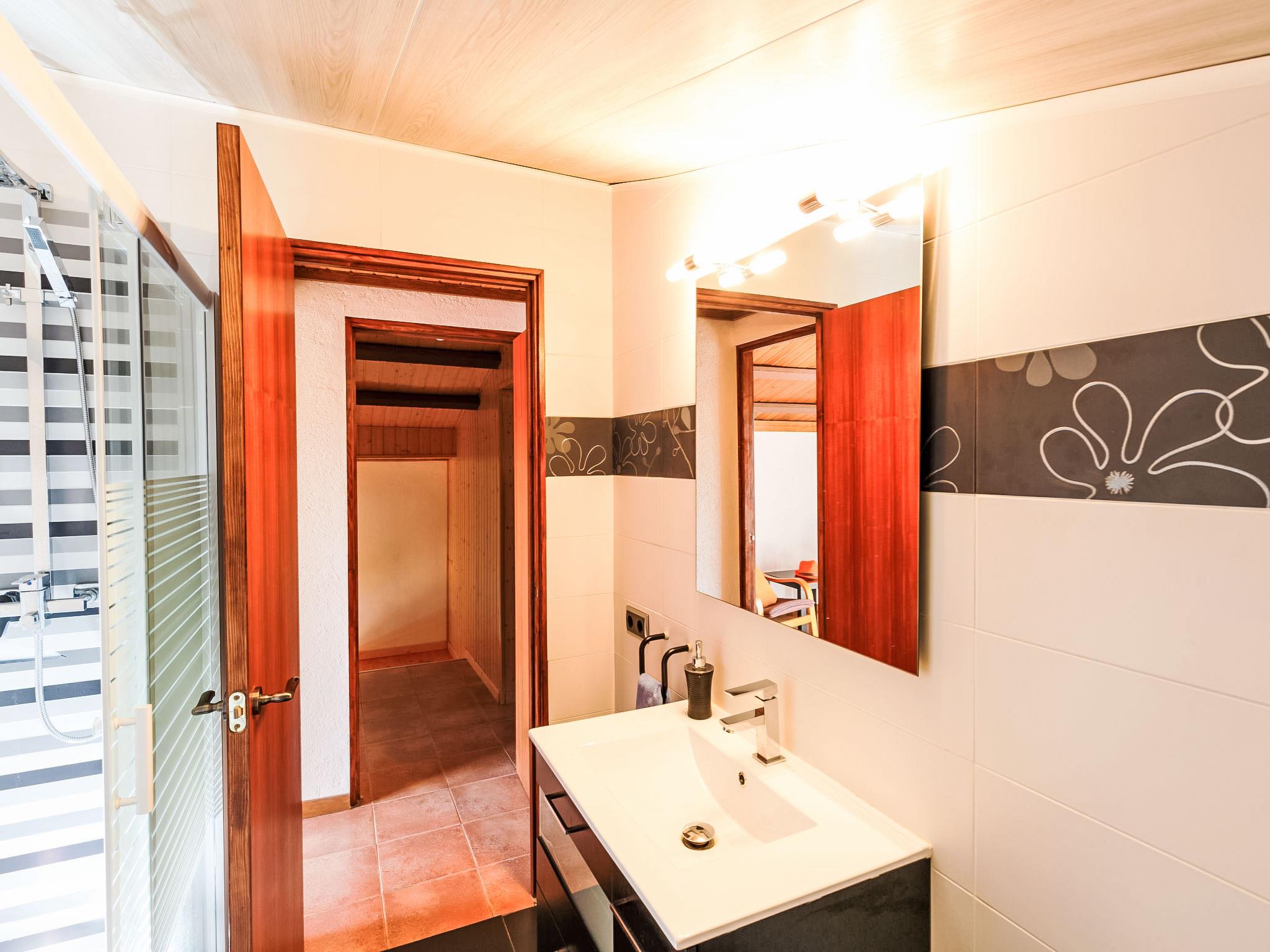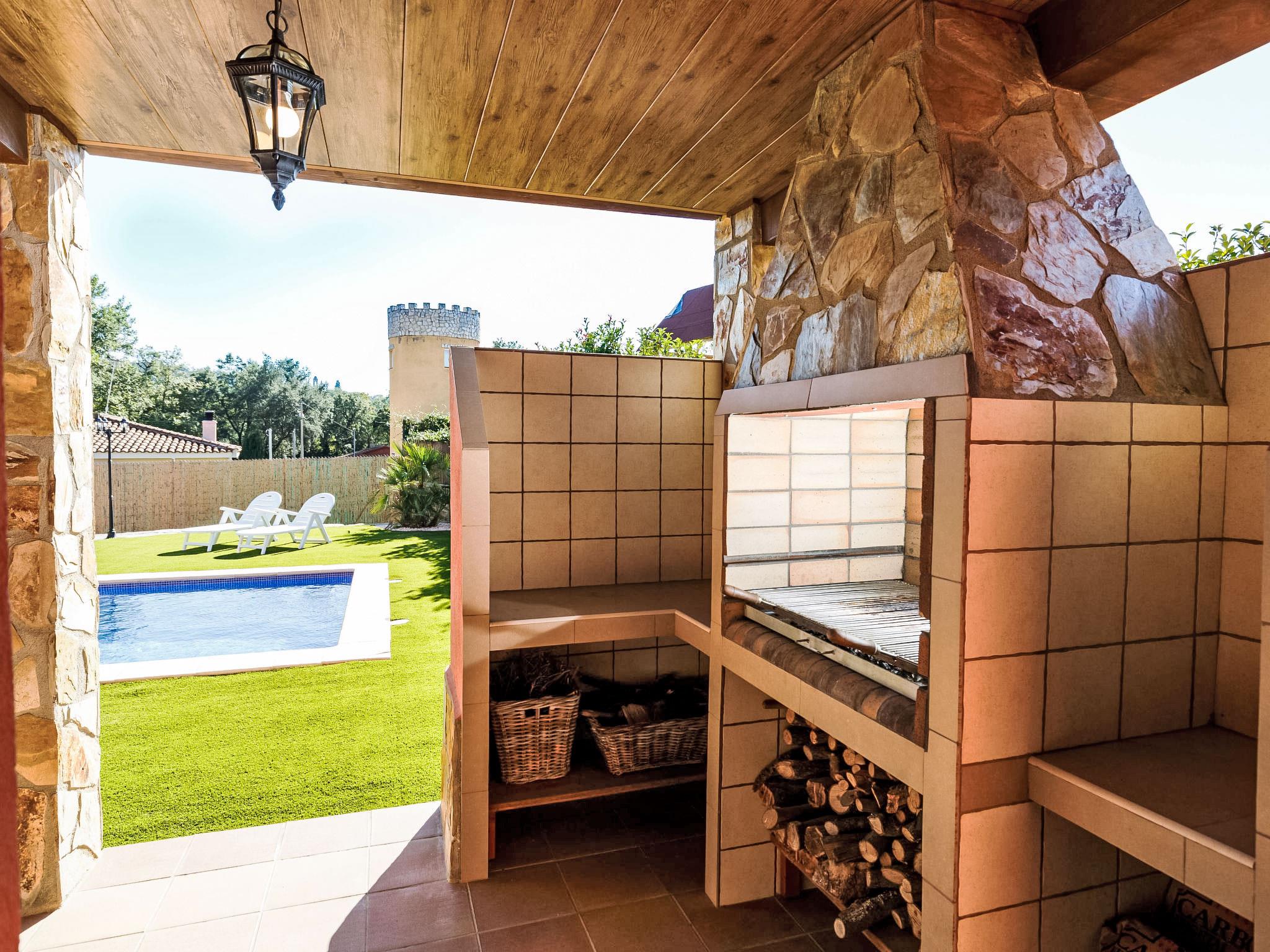 "Montverde", 5-room house 220 m2 on 2 levels. Very practical and cosy furnishings: open living/dining room with open-hearth fireplace, dining table and digital TV. Exit to the garden, to the swimming pool. 2 rooms, each room with 2 beds (90 cm, length 190 cm). 1 room with 1 french bed (150 cm, length 190 cm). Kitchen (4 hot plates, oven, dishwasher, microwave, freezer, electric coffee machine). Exit to the garden. Bath/bidet/WC. Upper floor: 1 room with 1 french bed (135 cm, length 190 cm). Exit to the terrace. 1 room with 2 beds (90 cm, length 190 cm). Bath/bidet/WC. Patio, lawn. Terrace furniture, barbecue, deck chairs, covered balcony. Beautiful panoramic view of the swimming pool, the garden and the resort. Facilities: washing machine, iron, children's high chair, baby cot for up to 2 year olds, hair dryer. Internet (WiFi, free). Please note: suitable for families. TV only ES. HUTG025958 // Reg. Nr.: ESFCTU000017018000212958000000000000000000HUTG0259585