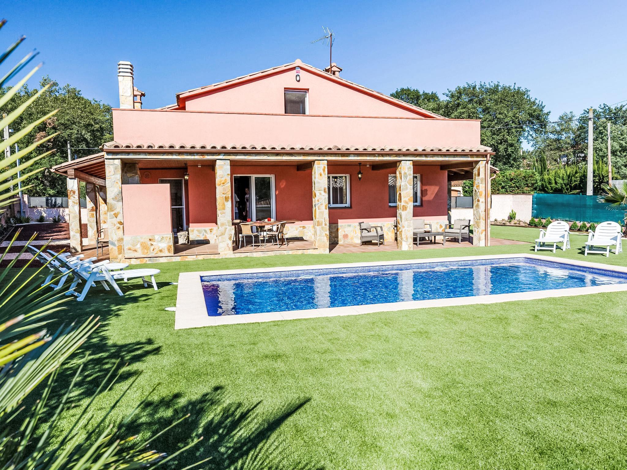 Can Carbonell 15 km from de Lloret de Mar: Cosy, comfortable house "Montverde", 2 storeys. In the district of can Carbonell, on the outskirts, 6 km from the centre of Vidreres, residential area (villas), traffic calmed area, 15 km from the sea, 15 km from the beach. Private: property (fenced) with flowers, beautiful garden to relax, swimming pool angular (8 x 4 m, 8 m diameter, depth 120 - 180 cm, seasonal availability: 06.Apr. - 19.Oct.). Shower/WC in the pool area, pool house, garden furniture, barbecue, parking at the house, public parking on the road. Shop 3 km, supermarket 3 km, shopping centre 30 km, restaurant 2 km, bakery 2 km, café 6 km. Golf course (18 hole) 17 km. Nearby attractions: Water World lloret de Mar 15 km, Golf Pga Caldes de Malavella 12 km, Agua Diver Platja de Aro 20 km, Marinland Blanes 20 km. Please note: car recommended. The owner does not accept any youth groups.