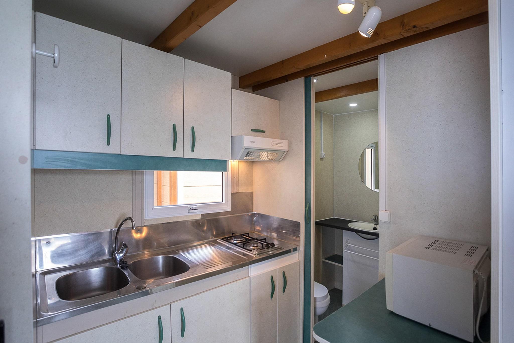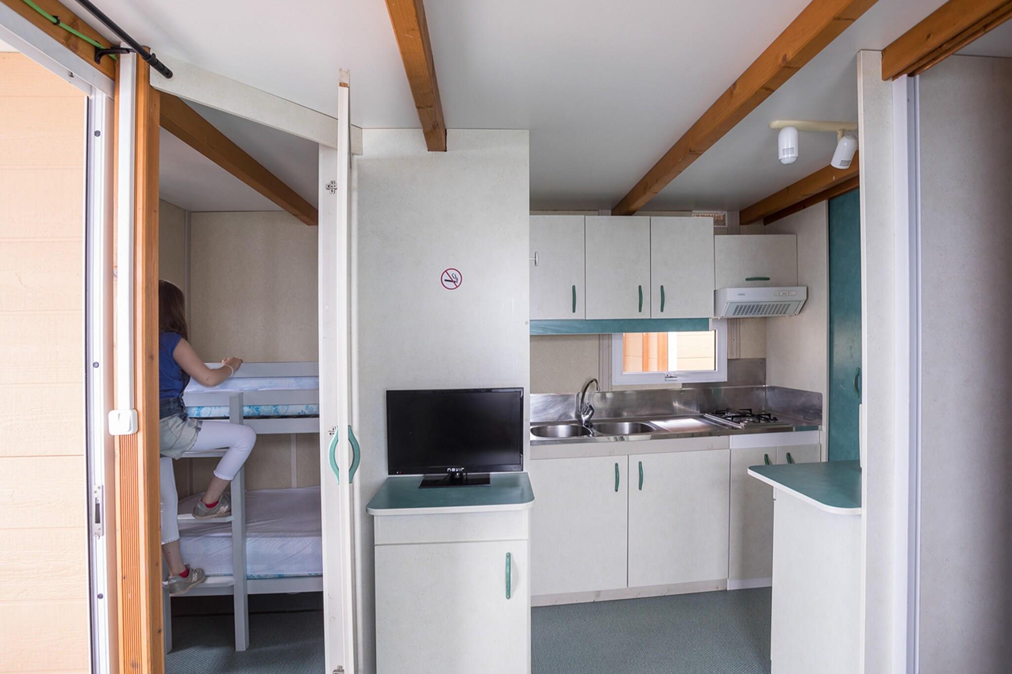 Beliggende på en familievenlig campingplads, der spænder over 70.000 m² naturskønt land, er denne ejendom perfekt beliggende mellem havet og bjergene og tilbyder nem adgang ved siden af N-II (Km. 665). Kun 1 km fra Calella, det travle centrum af Costa de Barcelona Maresme, og 40 km fra Barcelona, er det et ideelt tilflugtssted for afslapning og udforskning. Denne rummelige bungalow kan rumme op til 5 personer, med to soveværelser: et med dobbeltseng og et andet med to køjesenge og en ekstra enkeltseng. Bungalowen er smagfuldt indrettet med moderne detaljer og har en fantastisk udsigt over bjergene eller havet. Der er eget badeværelse, opholds-/spisestue med fladskærms-tv med satellitkanaler samt tekøkken med mikrobølgeovn, køleskab og kogeplader. På stedet kan gæsterne nyde en række faciliteter, herunder to swimmingpools, tennis- og paddlebaner, en multisportsbane (basketball og fodbold), bordtennis og en legeplads. I juli og august byder campingpladsen på sjove animationsaktiviteter, og det lille tog "GUA-GUA" hjælper gæsterne med let adgang til poolen og sportsområderne. Andre faciliteter inkluderer en reception, bar/restaurant, købmand, vaskeri, sports- og fitnessfaciliteter og gratis Wi-Fi (kun første billet). Kæledyr er tilladt efter anmodning (undtagen farlige racer), og et depositum på 150 euro er påkrævet. Sengelinned og håndklæder er tilgængelige mod et tillægsgebyr. Indtjekning er kl. 16.00, og udtjekning er kl. 10.00.