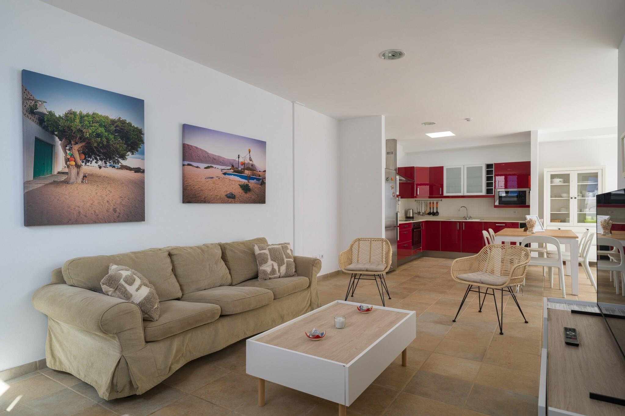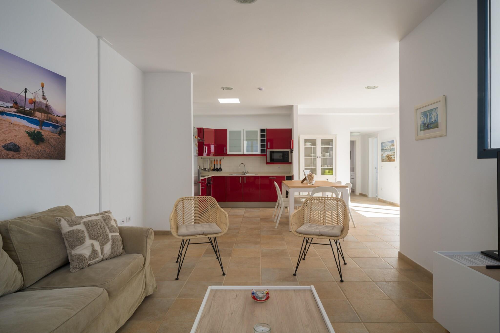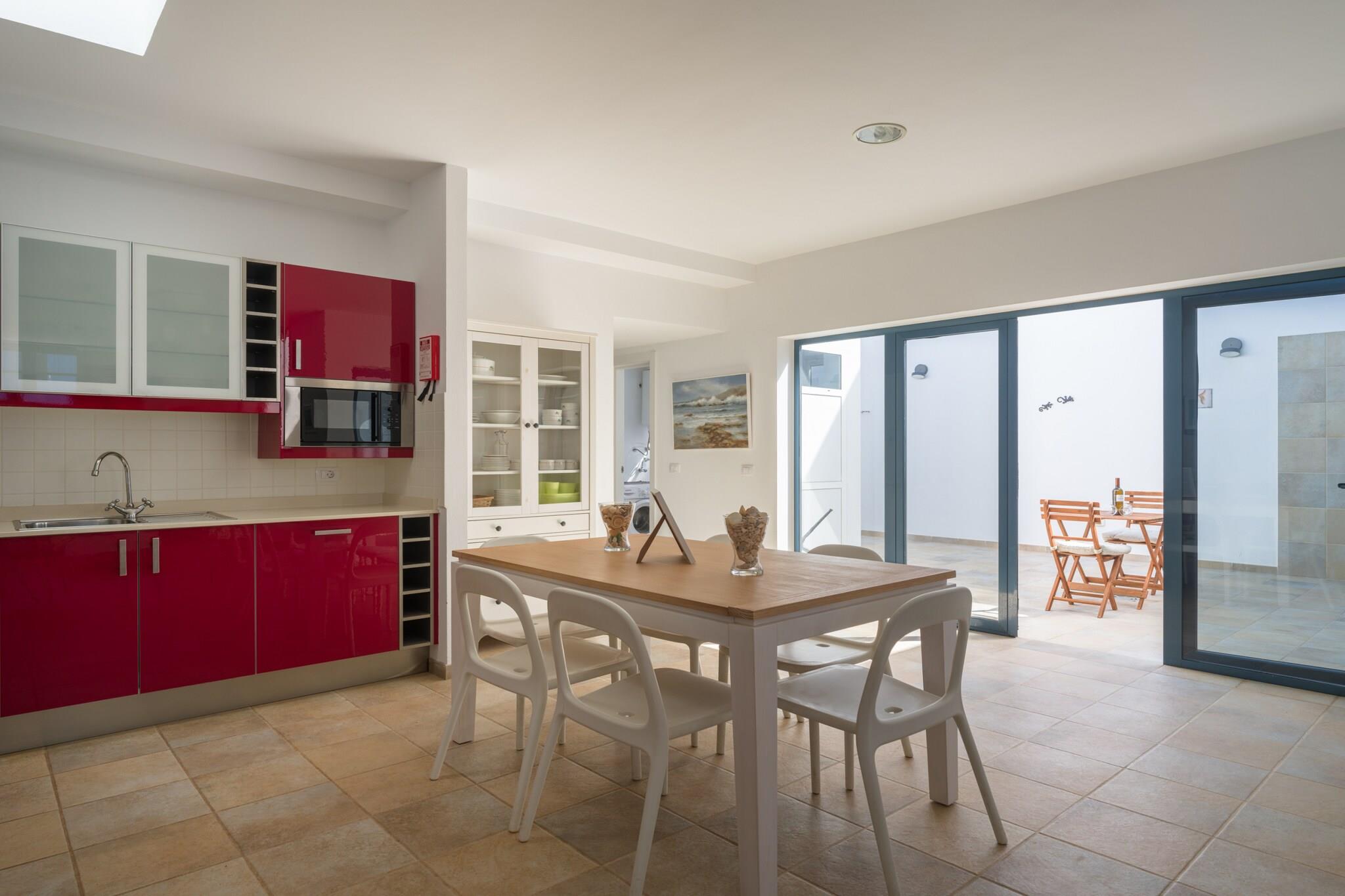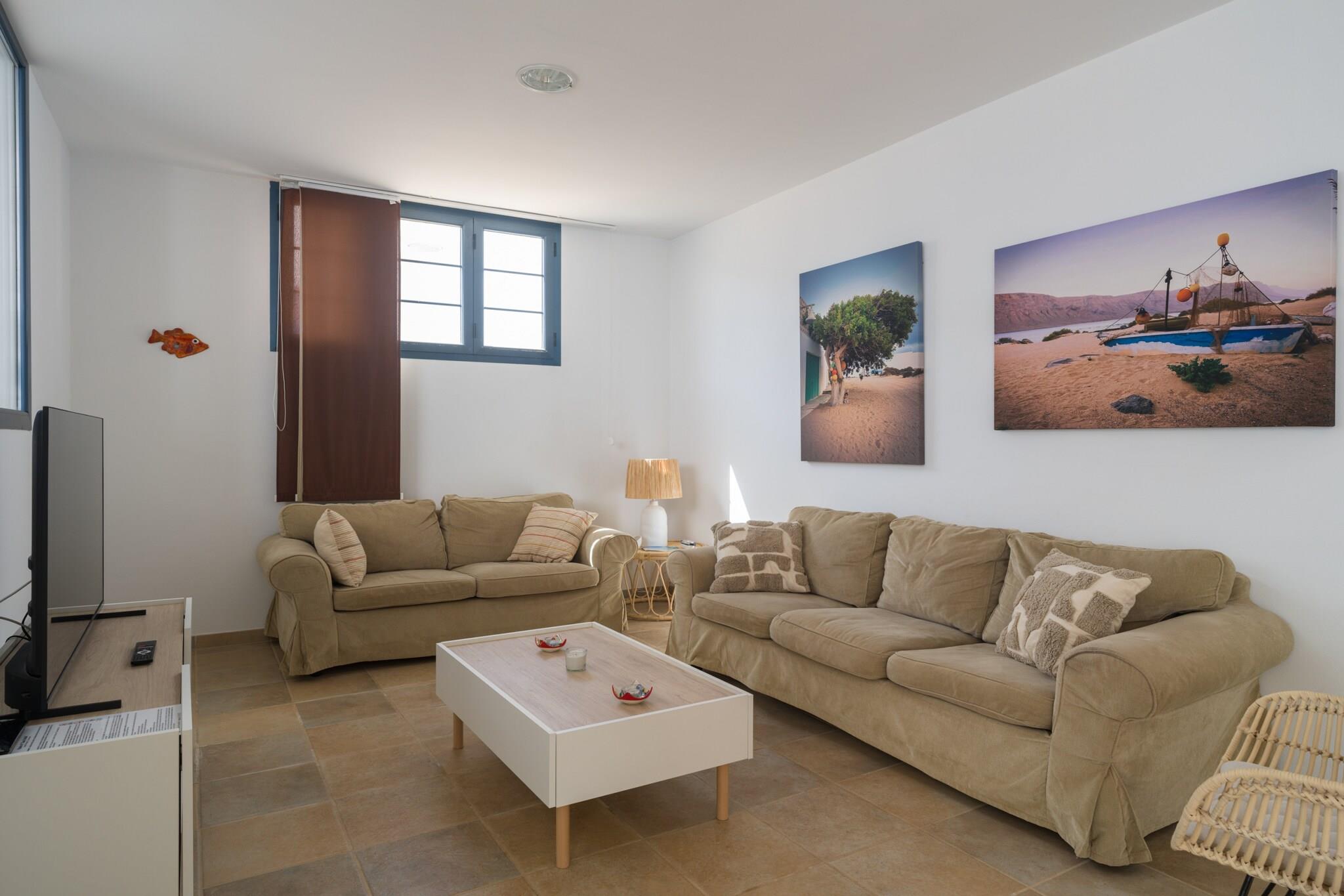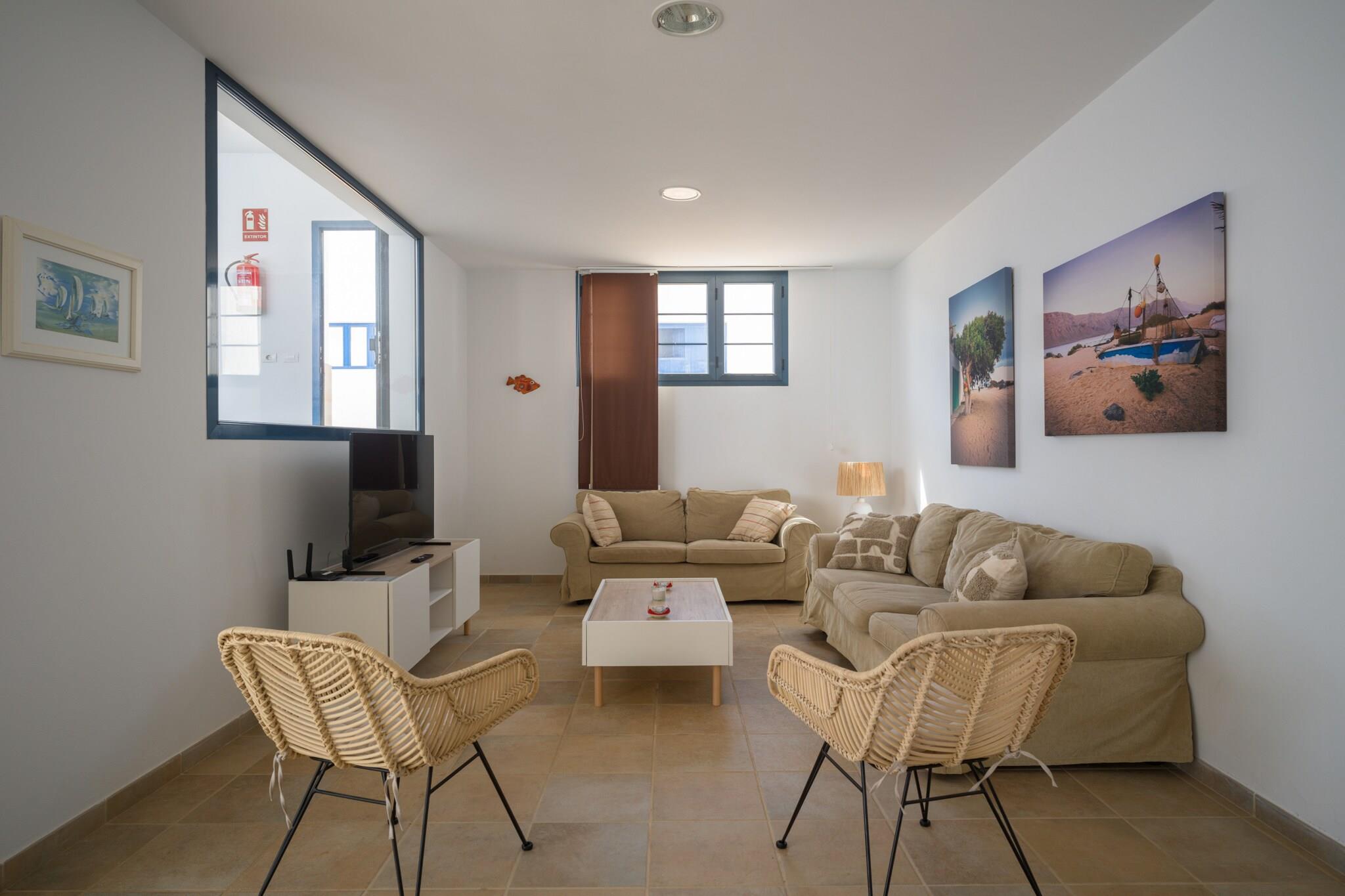 Beliggende i den rolige fiskerlandsby Caleta de Sebo, tilbyder dette rummelige hus på 163 m² varme og indbydende omgivelser for op til 8 gæster. Med fire komfortable soveværelser er det perfekt til familier eller grupper, der ønsker at nyde en fredelig ferie ved havet på den idylliske ø La Graciosa. Beliggende i en familievenlig zone og kun få skridt fra havet, byder huset på både plads og komfort. Indenfor finder du et hjemligt interiør med generøse fællesarealer, et tv, Wi-Fi, vaskemaskine, hårtørrer, strygejern og alt det nødvendige for et afslappende ophold. Det uafhængige køkken er fuldt udstyret med alt det nødvendige for at tilberede måltider derhjemme, herunder køleskab, ovn, mikroovn, fryser, opvaskemaskine, kaffemaskine, brødrister, kedel, juicer og komplet køkkenudstyr. Nyd morgenvandringer ved kysten, stille aftener i, eller udforsk charmen ved Caleta de Sebos ikke-asfalterede gader og afslappede ø-livsstil. Uanset om du planlægger en afslappende ferie eller et gruppeeventyr, er dette hjem en ideel base for at opdage den naturlige skønhed i La Graciosa.