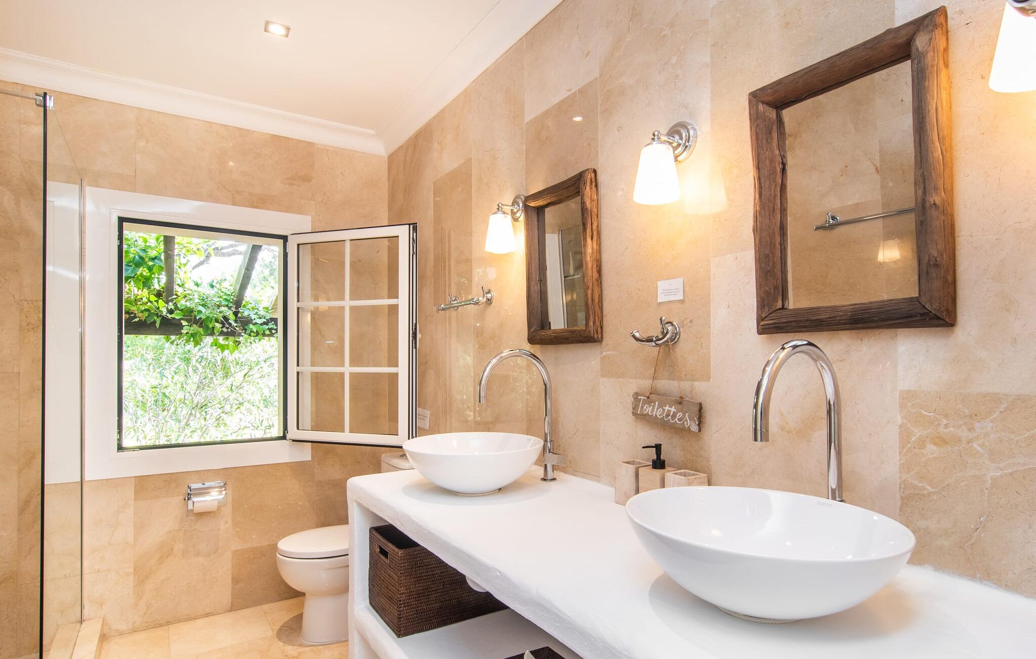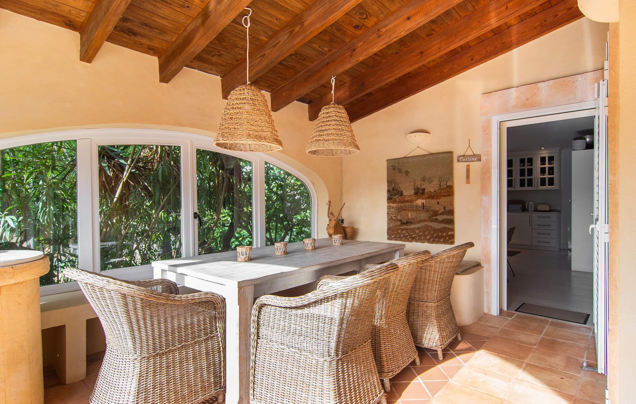 Den smukke naturstensvilla "Calimero" er omgivet af en frodig, ugeneret have. Velholdte græsplæner, skyggefulde områder og en pool inviterer til at blive hængende. Det er nemt at glemme, at I kun er 20 minutters kørsel fra øens hovedstad, Palma, når I slapper af i hængekøjen eller på en af de to Bali liggestole ved poolen. Et stort udendørs køkken, grill og pizzaovn er til rådighed. Måltider kan indtages enten i den hyggelige gårdhave eller på den overdækkede terrasse lige ved siden af huset. Feriehuset har desuden egen tennisbane, bowlingbane, bordtennisbord samt udendørs toilet og bruser ved poolen. Ved udformningen af de indvendige områder blev der lagt stor vægt på at skabe en hyggelig atmosfære og enkel elegance. Alle værelser er kendetegnet ved stilfulde møbler af høj kvalitet, afslappende farver og kærlig indretning. Spisestuen støder op til stuen og leder ind i køkkenet, som har en hyggelig spiseplads. Der er fire rummelige soveværelser til rådighed for afslapning om natten, hvoraf to har deres eget badeværelse. Et af soveværelserne med eget bad har separat adgang. Varme/kolde klimaanlæg i stue og soveværelser sikrer behagelige temperaturer både sommer og vinter. Villa "Calimero" er et yderst komfortabelt feriehus for op til 8 personer nær Palma året rundt. Villaen ligger i et roligt boligområde nær Mallorcas "keramiklandsby" Pòrtol og 20 minutter i bil fra Palma. Forskellige supermarkeder kan nås inden for 10 minutters kørsel. Omkring 10 km nordpå byder Serra de Tramuntana-bjergkæden (UNESCOs verdensarvssted) på adskillige vandremuligheder. De forskellige sandstrande i Palma-bugten kan nås på 20 – 25 minutter i bil.