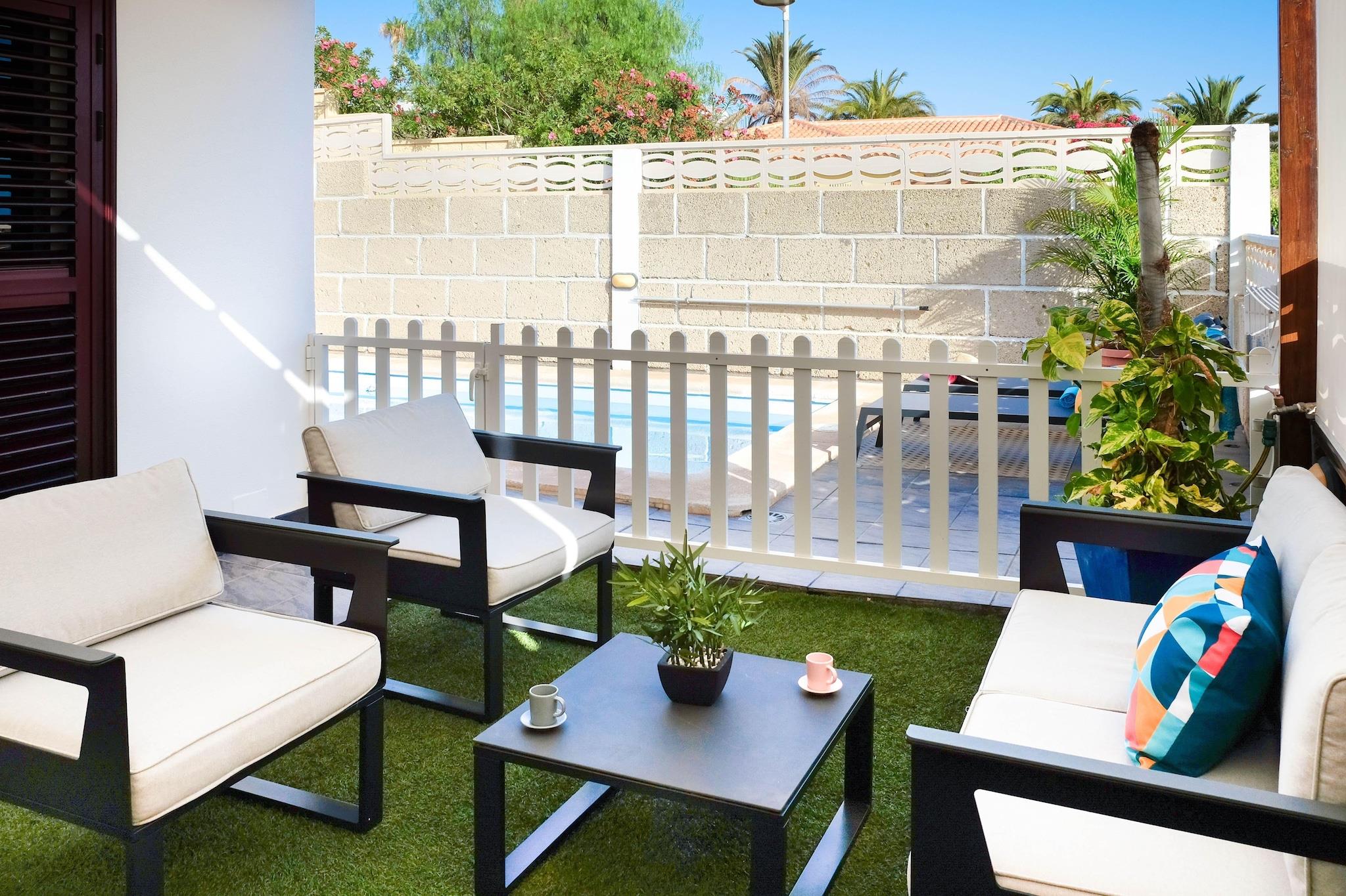 Stueetage: (Indgang (adgang udefra), Køkken(spisebord, kogeplade, emhætte, kaffemaskine, ovn, mikrobølgeovn, opvaskemaskine , køle-fryseskab), stue / spisestue(Fjernsyn(fladskærm, parabol, digital), sofahjørne, DVD-afspiller, balkon eller terrasse), soveværelse(king size-seng(180 x 200 cm), balkon eller terrasse), soveværelse(køjeseng eller 2 enkeltsenge), soveværelse(enkeltseng(90 x 190 cm)), badeværelse(badekar, håndvask, toilet, bidet, føntørrer), badeværelse(adgang udefra)(bruser, håndvask, toilet)) vaskerum (tørretumbler, vaskemaskine, strygebræt, strygejern), havedøre, terrasse, have(privat), havemøbler, grill, swimmingpool(privat, udendørs, 7 x 3 m., opened from Jan upto and including Dec), Alarm