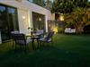 Stueetage: (Indgang (adgang udefra), åbent køkken(spisebord, kogeplade, emhætte, kaffemaskine, ovn, mikrobølgeovn, opvaskemaskine , køle-fryseskab), stue / spisestue(Fjernsyn(fladskærm, parabol, digital), sofahjørne, DVD-afspiller, balkon eller terrasse), soveværelse(dobbeltseng, balkon eller terrasse), badeværelse(bruser, håndvask, toilet, føntørrer)) fitnessrum(fitnessapparater), havedøre, terrasse, have(privat), havemøbler, grill