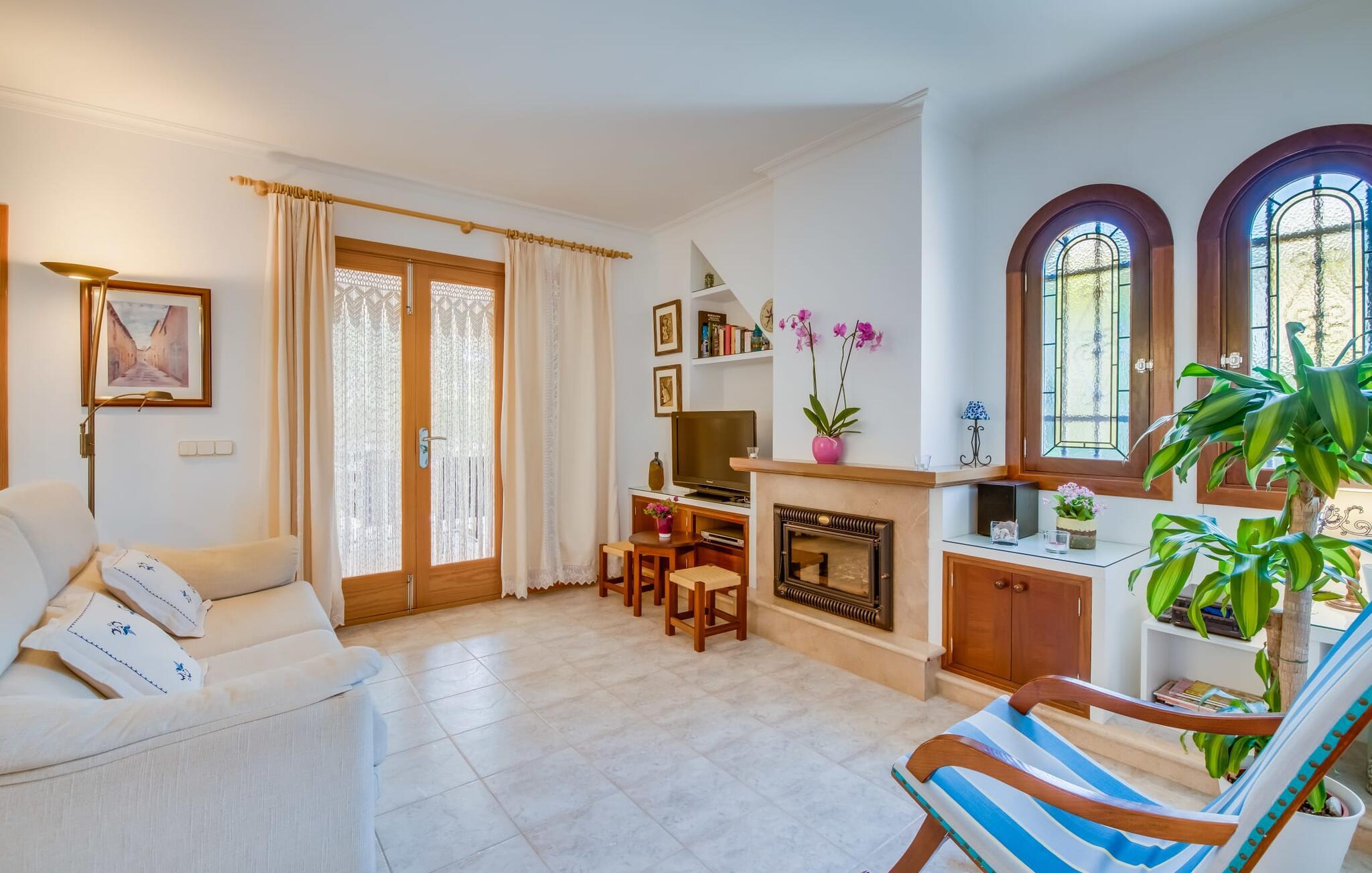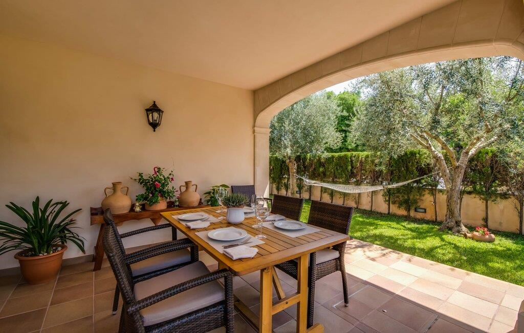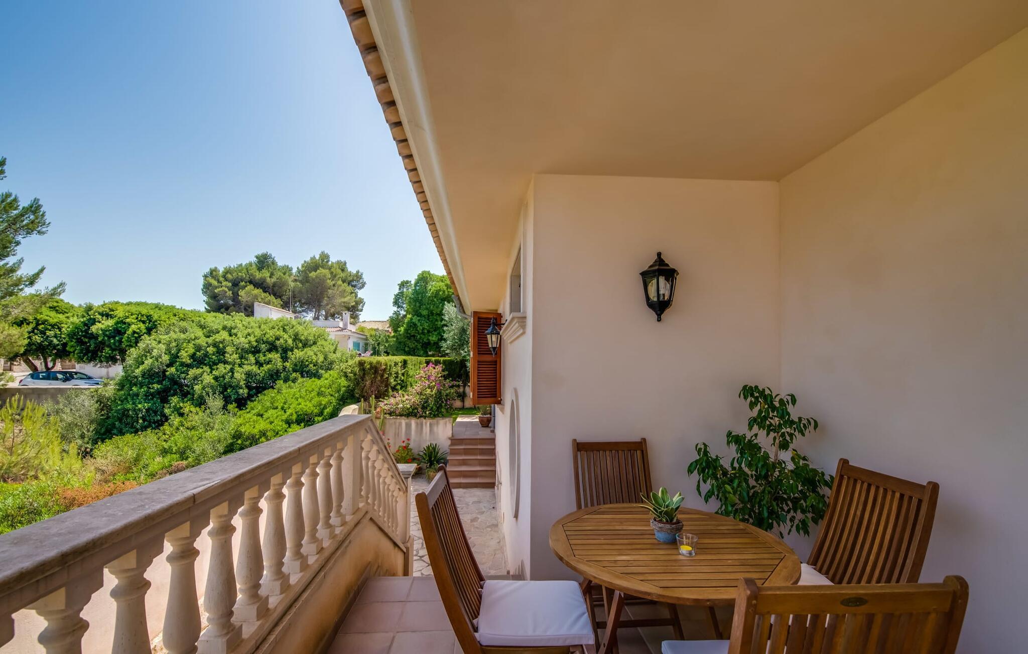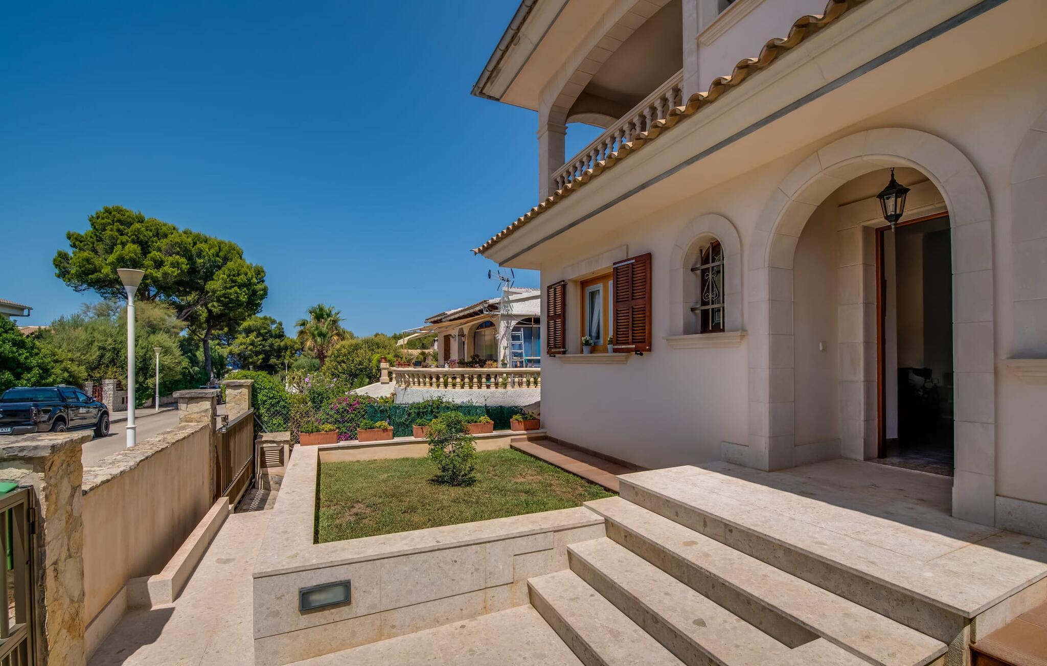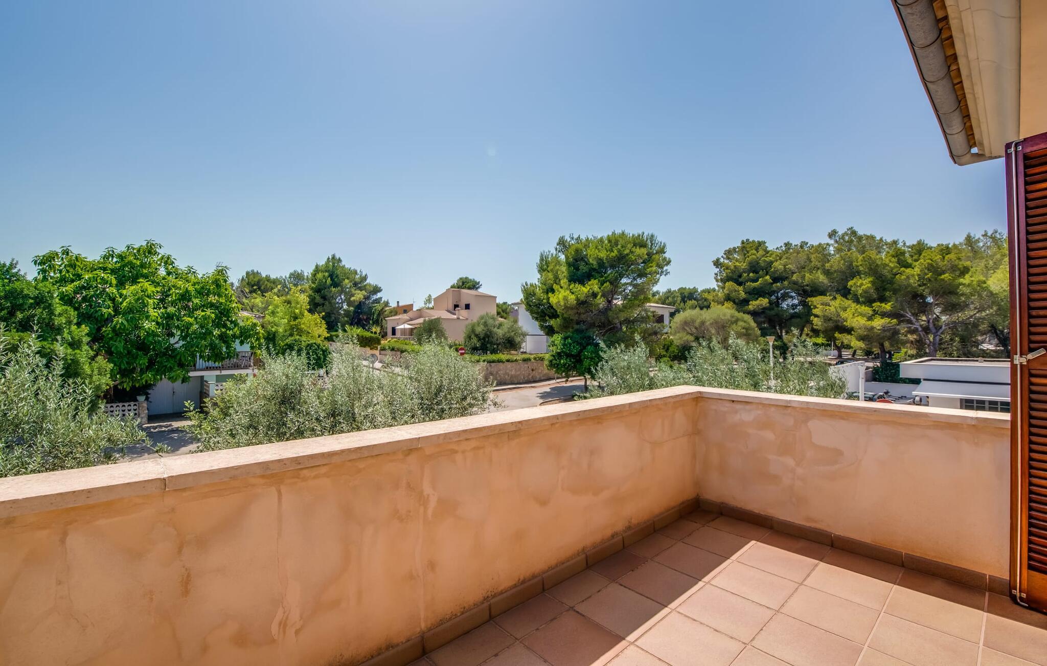 Et mere, to, tre, fire trin - nu kan jeres feriehygge begynde i den statelige, to-etagers villa "Calma de Son Serra de Marina". Trods den centrale beliggenhed er I omgivet af masser af grønt, da huset er omgivet af en hyggelig lille have. Fortryllede træer giver velkommen skygge, mens I slapper af i hængekøjen eller på en af liggestolene. Et andet pluspunkt: den tætte hæk betyder, at ingen kan invadere jeres privatliv. Den overdækkede, flisebelagte terrasse fungerer som morgenmadsområde eller grillplads - I kan helt sikkert slappe af ved træspisebordet eller på de kunstige rattanstole. Fra foråret 2022 vil villaen også have pool. Villaen har også flere møblerede altaner, hvor I til enhver tid kan indånde den friske middelhavsluft. Et andet praktisk tip: I kan parkere jeres lejebil direkte foran huset på den brostensbelagte gade. Den kombinerede stue/spisestue ligger i husets stueetage. Selvom ikke alle gæster finder plads til at putte sig på den komfortable, lyse sofa, når den er fuldt optaget, muliggør forskellige siddemuligheder i dette værelse stadig et hyggeligt samvær. Lette fliser og masser af træ udstråler en behagelig varm atmosfære og skaber en afslappet atmosfære, så snart I ankommer. Køkkenet ligger lige ved siden af og er veludstyret med kaffemaskine, elkedel, mikroovn, opvaskemaskine og meget mere. Et af de fire soveværelser støder direkte op til stuen, og det mindre brusebadeværelse ligger også på denne etage. På øverste etage er der yderligere tre værelser og badeværelse med badekar. Det ene værelse har en dobbeltseng, det ene har en køjeseng og det andet har to enkeltsenge - så alle kan finde deres foretrukne sted at sove i "Calma de Son Serra de Marina". Alle vil nyde Alcúdia-bugten. Udover god infrastruktur er der uberørte landskaber, turkisblåt vand og vidunderligt finkornet sand. Flade, skrånende strande er ideelle for familier, mens eventyrlystne besøgende kan tage til en af de dejlige strandbarer eller prøve kitesurfing. "Calma de Son Serra de Marina" ligger direkte på en gade, men alligevel er det lange boligområde behageligt stille og fredeligt. Lille tip: Den smukke naturpark Llevant er et fantastisk sted for vidunderlige vandreture, bestige høje tinder med fantastisk udsigt og beundre de uberørte klippeformationer. Den historiske kunstnerby Artà inviterer jer til at tage en afslappet gåtur gennem de snoede gader og tiltrækker også med et af de smukkeste markeder på øen. Strandelskere kan nyde dagen ved Torrent des Revellar eller tage et par kilometer længere til Son Real, Son Baulo eller den livligere by Can Picafort. Den veludstyrede villa "Calma de Son Serra de Marina" ligger i den østlige del af Mallorca, i den smukke og populære bugt Alcúdia. Praktisk: Supermarkeder, caféer og restauranter kan findes i umiddelbar nærhed. Den vidunderlige naturlige Torrent-strand Revellar kan nås på omkring 15 minutter til fods. Ture til middelalderlige Artà kan også nemt organiseres herfra.
