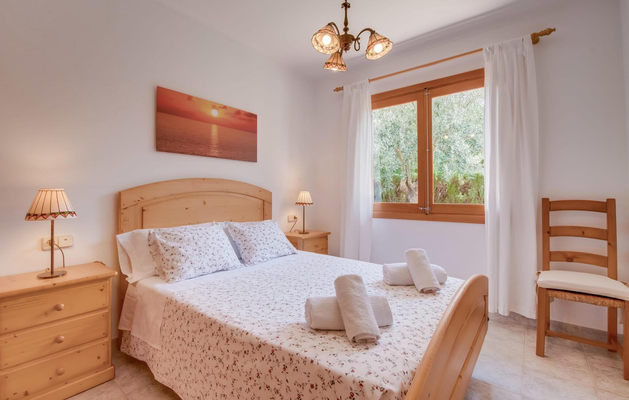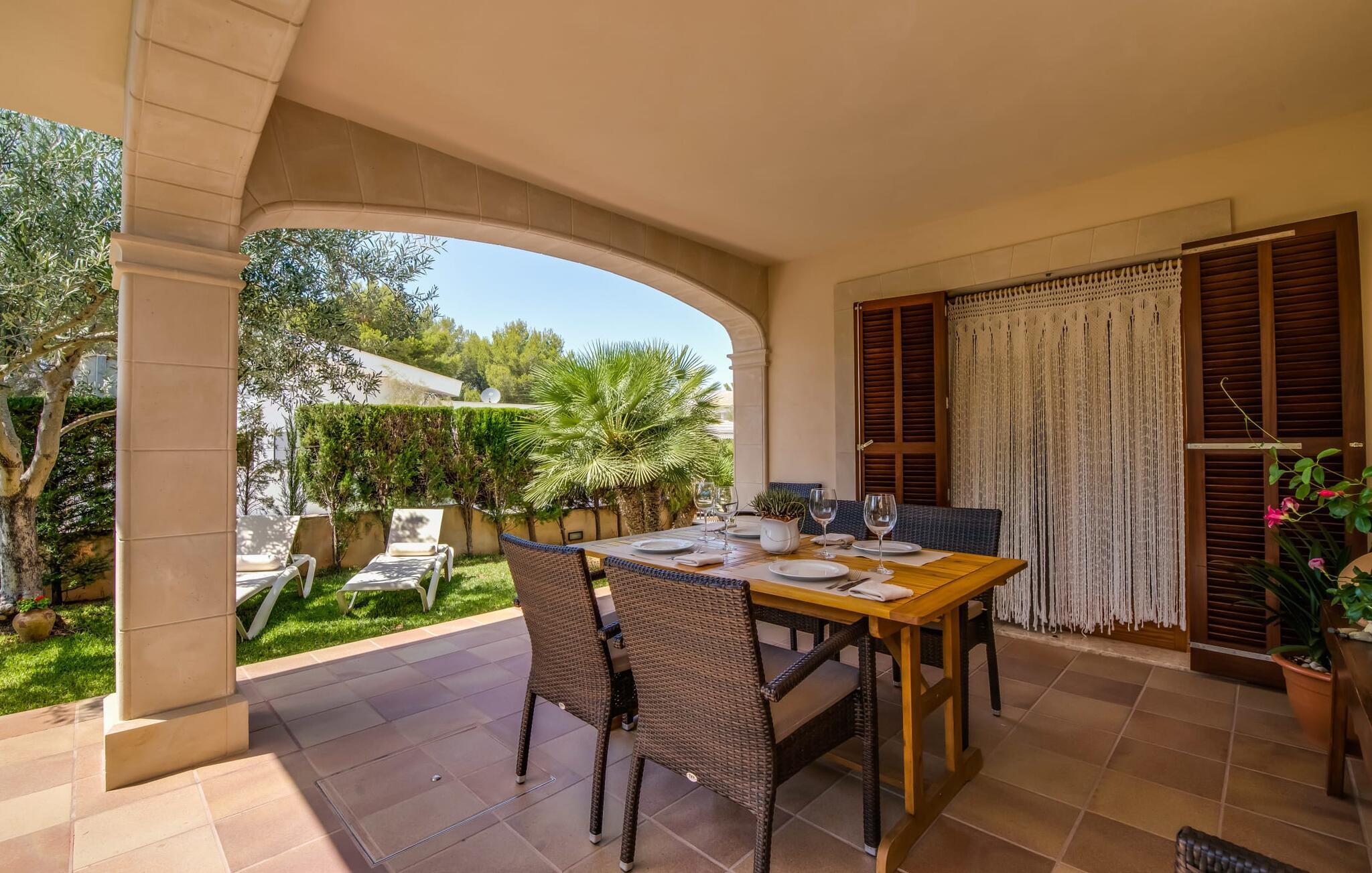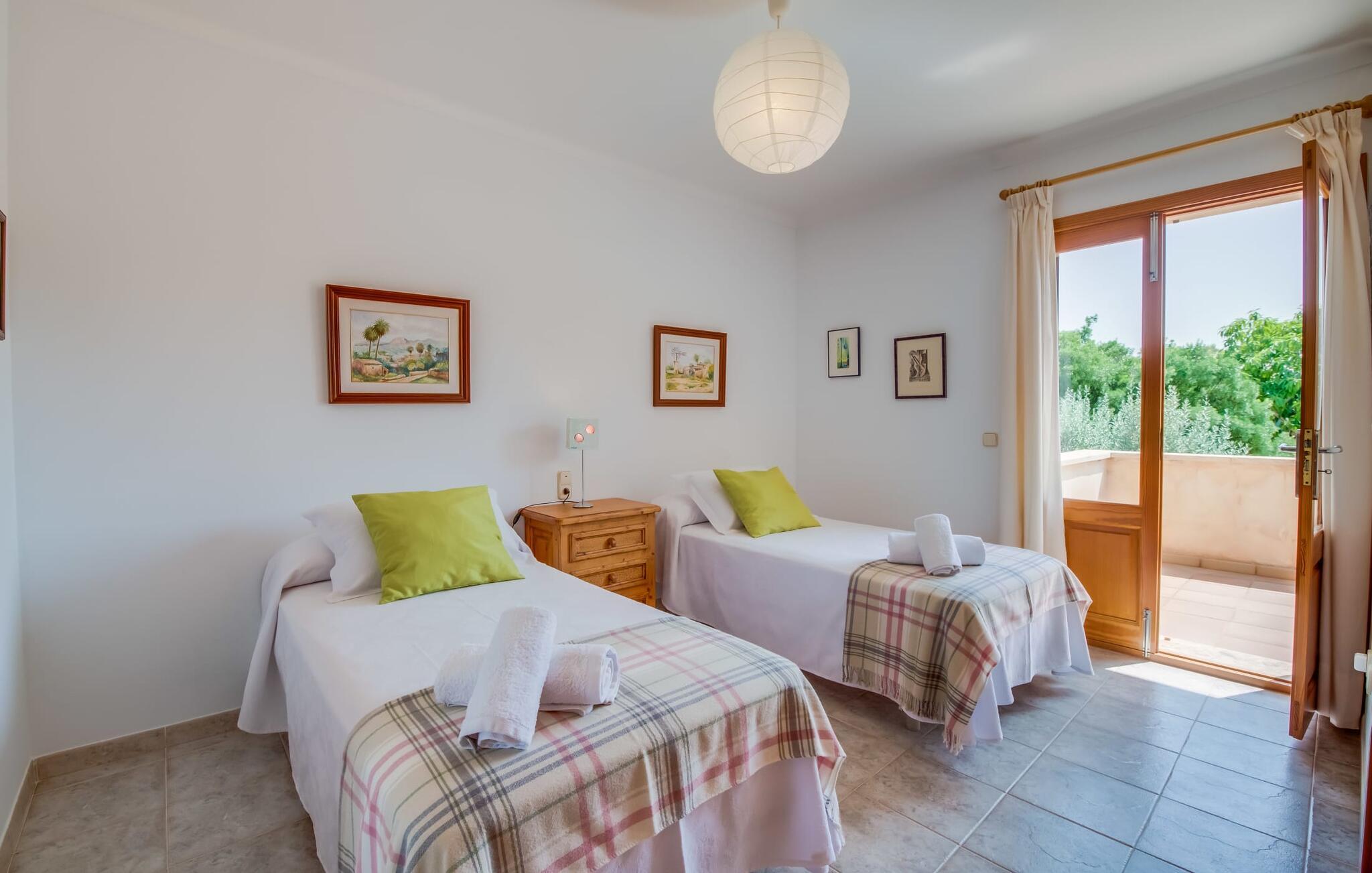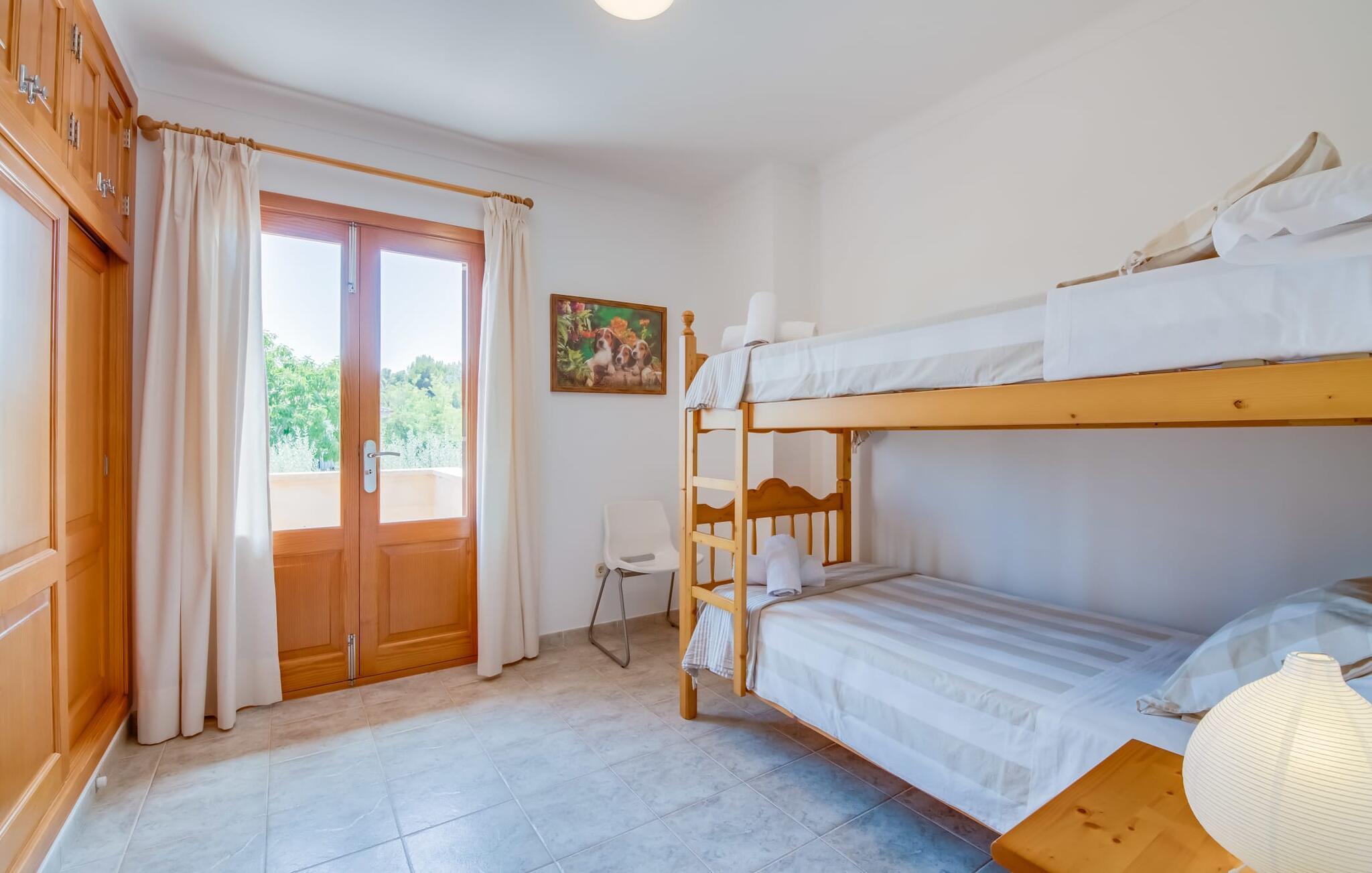 Et mere, to, tre, fire trin - nu kan jeres feriehygge begynde i den statelige, to-etagers villa "Calma de Son Serra de Marina". Trods den centrale beliggenhed er I omgivet af masser af grønt, da huset er omgivet af en hyggelig lille have. Fortryllede træer giver velkommen skygge, mens I slapper af i hængekøjen eller på en af liggestolene. Et andet pluspunkt: den tætte hæk betyder, at ingen kan invadere jeres privatliv. Den overdækkede, flisebelagte terrasse fungerer som morgenmadsområde eller grillplads - I kan helt sikkert slappe af ved træspisebordet eller på de kunstige rattanstole. Fra foråret 2022 vil villaen også have pool. Villaen har også flere møblerede altaner, hvor I til enhver tid kan indånde den friske middelhavsluft. Et andet praktisk tip: I kan parkere jeres lejebil direkte foran huset på den brostensbelagte gade. Den kombinerede stue/spisestue ligger i husets stueetage. Selvom ikke alle gæster finder plads til at putte sig på den komfortable, lyse sofa, når den er fuldt optaget, muliggør forskellige siddemuligheder i dette værelse stadig et hyggeligt samvær. Lette fliser og masser af træ udstråler en behagelig varm atmosfære og skaber en afslappet atmosfære, så snart I ankommer. Køkkenet ligger lige ved siden af og er veludstyret med kaffemaskine, elkedel, mikroovn, opvaskemaskine og meget mere. Et af de fire soveværelser støder direkte op til stuen, og det mindre brusebadeværelse ligger også på denne etage. På øverste etage er der yderligere tre værelser og badeværelse med badekar. Det ene værelse har en dobbeltseng, det ene har en køjeseng og det andet har to enkeltsenge - så alle kan finde deres foretrukne sted at sove i "Calma de Son Serra de Marina". Alle vil nyde Alcúdia-bugten. Udover god infrastruktur er der uberørte landskaber, turkisblåt vand og vidunderligt finkornet sand. Flade, skrånende strande er ideelle for familier, mens eventyrlystne besøgende kan tage til en af de dejlige strandbarer eller prøve kitesurfing. "Calma de Son Serra de Marina" ligger direkte på en gade, men alligevel er det lange boligområde behageligt stille og fredeligt. Lille tip: Den smukke naturpark Llevant er et fantastisk sted for vidunderlige vandreture, bestige høje tinder med fantastisk udsigt og beundre de uberørte klippeformationer. Den historiske kunstnerby Artà inviterer jer til at tage en afslappet gåtur gennem de snoede gader og tiltrækker også med et af de smukkeste markeder på øen. Strandelskere kan nyde dagen ved Torrent des Revellar eller tage et par kilometer længere til Son Real, Son Baulo eller den livligere by Can Picafort. Den veludstyrede villa "Calma de Son Serra de Marina" ligger i den østlige del af Mallorca, i den smukke og populære bugt Alcúdia. Praktisk: Supermarkeder, caféer og restauranter kan findes i umiddelbar nærhed. Den vidunderlige naturlige Torrent-strand Revellar kan nås på omkring 15 minutter til fods. Ture til middelalderlige Artà kan også nemt organiseres herfra.