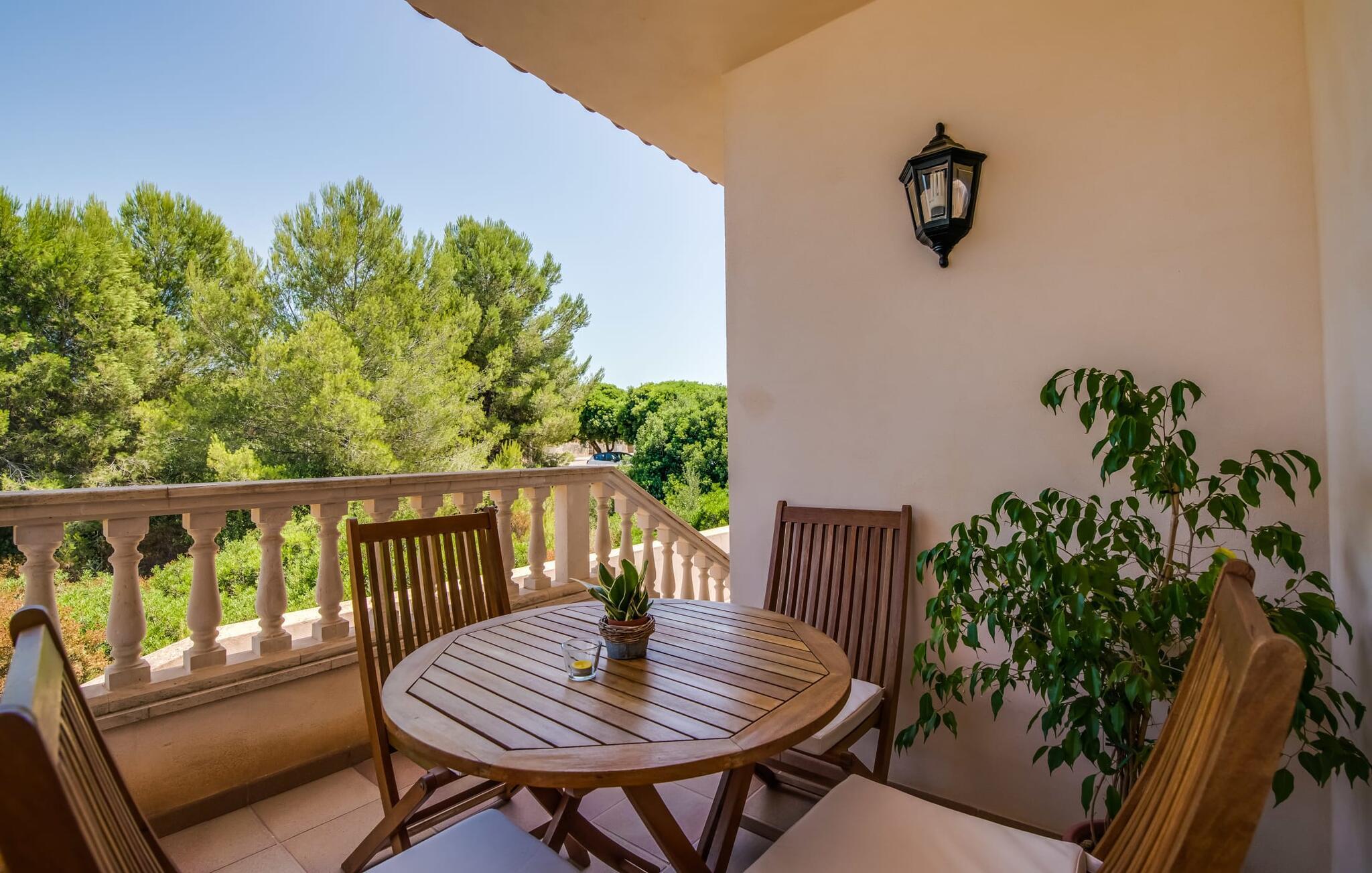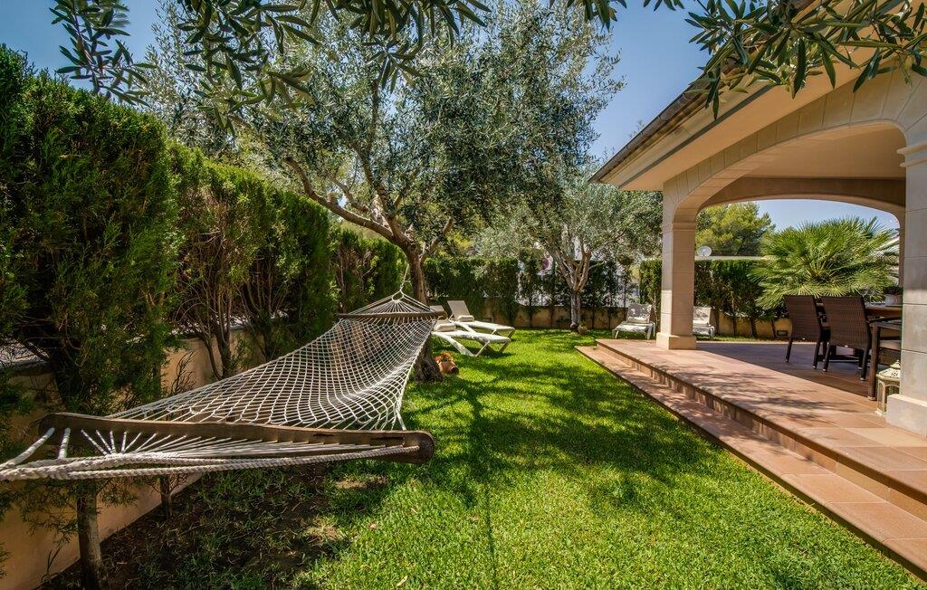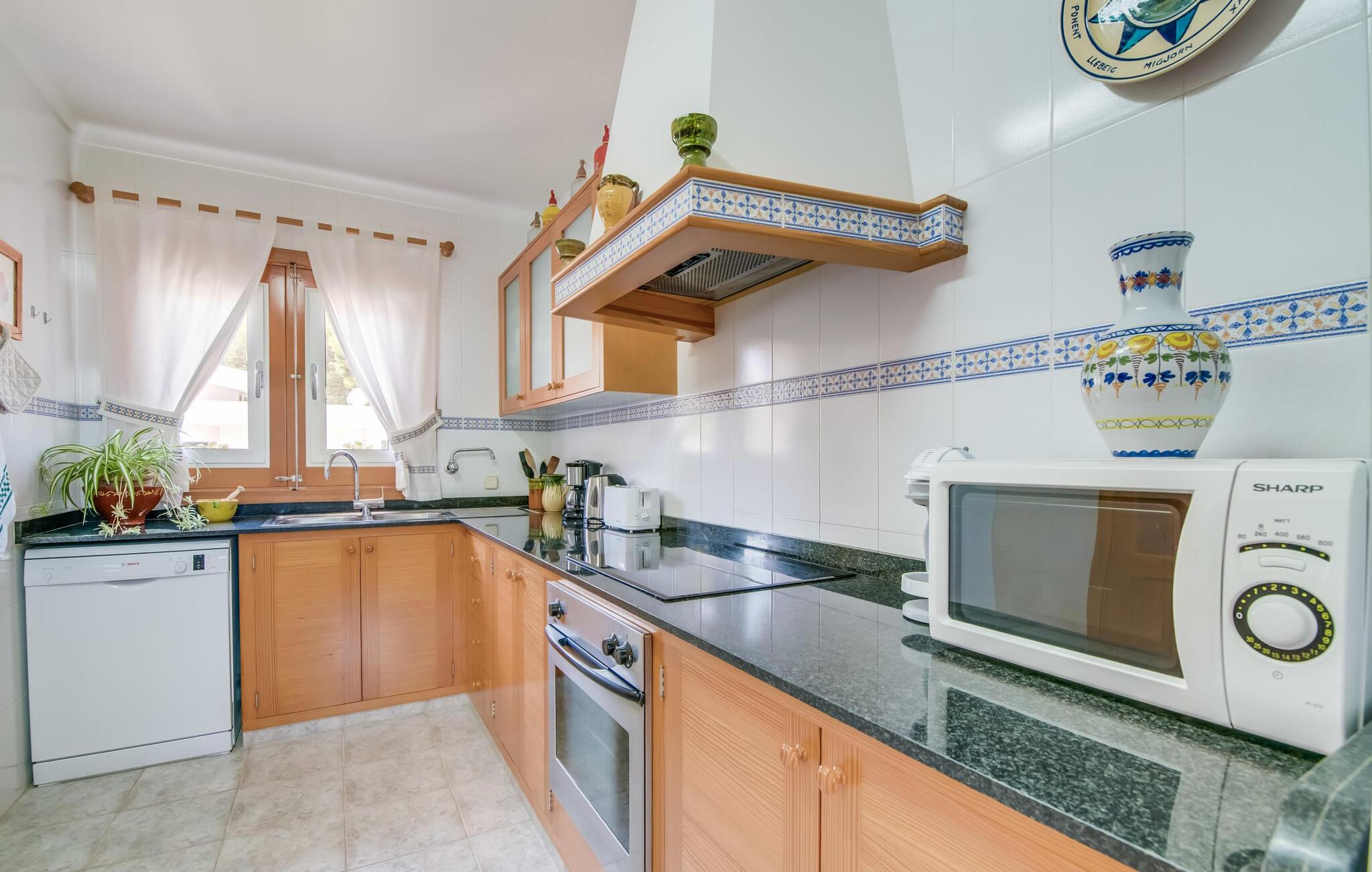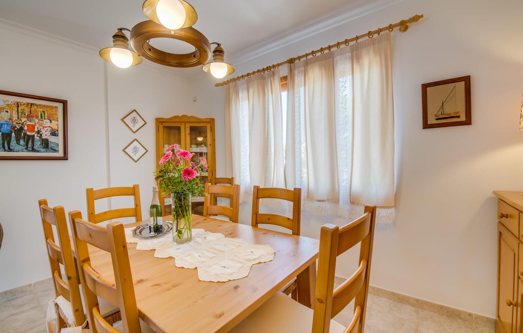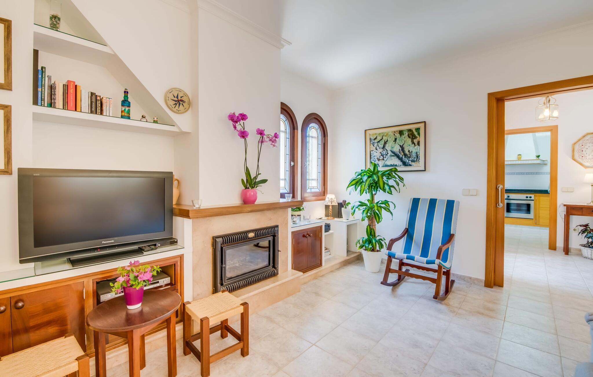 Et mere, to, tre, fire trin - nu kan jeres feriehygge begynde i den statelige, to-etagers villa "Calma de Son Serra de Marina". Trods den centrale beliggenhed er I omgivet af masser af grønt, da huset er omgivet af en hyggelig lille have. Fortryllede træer giver velkommen skygge, mens I slapper af i hængekøjen eller på en af liggestolene. Et andet pluspunkt: den tætte hæk betyder, at ingen kan invadere jeres privatliv. Den overdækkede, flisebelagte terrasse fungerer som morgenmadsområde eller grillplads - I kan helt sikkert slappe af ved træspisebordet eller på de kunstige rattanstole. Fra foråret 2022 vil villaen også have pool. Villaen har også flere møblerede altaner, hvor I til enhver tid kan indånde den friske middelhavsluft. Et andet praktisk tip: I kan parkere jeres lejebil direkte foran huset på den brostensbelagte gade. Den kombinerede stue/spisestue ligger i husets stueetage. Selvom ikke alle gæster finder plads til at putte sig på den komfortable, lyse sofa, når den er fuldt optaget, muliggør forskellige siddemuligheder i dette værelse stadig et hyggeligt samvær. Lette fliser og masser af træ udstråler en behagelig varm atmosfære og skaber en afslappet atmosfære, så snart I ankommer. Køkkenet ligger lige ved siden af og er veludstyret med kaffemaskine, elkedel, mikroovn, opvaskemaskine og meget mere. Et af de fire soveværelser støder direkte op til stuen, og det mindre brusebadeværelse ligger også på denne etage. På øverste etage er der yderligere tre værelser og badeværelse med badekar. Det ene værelse har en dobbeltseng, det ene har en køjeseng og det andet har to enkeltsenge - så alle kan finde deres foretrukne sted at sove i "Calma de Son Serra de Marina". Alle vil nyde Alcúdia-bugten. Udover god infrastruktur er der uberørte landskaber, turkisblåt vand og vidunderligt finkornet sand. Flade, skrånende strande er ideelle for familier, mens eventyrlystne besøgende kan tage til en af de dejlige strandbarer eller prøve kitesurfing. "Calma de Son Serra de Marina" ligger direkte på en gade, men alligevel er det lange boligområde behageligt stille og fredeligt. Lille tip: Den smukke naturpark Llevant er et fantastisk sted for vidunderlige vandreture, bestige høje tinder med fantastisk udsigt og beundre de uberørte klippeformationer. Den historiske kunstnerby Artà inviterer jer til at tage en afslappet gåtur gennem de snoede gader og tiltrækker også med et af de smukkeste markeder på øen. Strandelskere kan nyde dagen ved Torrent des Revellar eller tage et par kilometer længere til Son Real, Son Baulo eller den livligere by Can Picafort. Den veludstyrede villa "Calma de Son Serra de Marina" ligger i den østlige del af Mallorca, i den smukke og populære bugt Alcúdia. Praktisk: Supermarkeder, caféer og restauranter kan findes i umiddelbar nærhed. Den vidunderlige naturlige Torrent-strand Revellar kan nås på omkring 15 minutter til fods. Ture til middelalderlige Artà kan også nemt organiseres herfra.