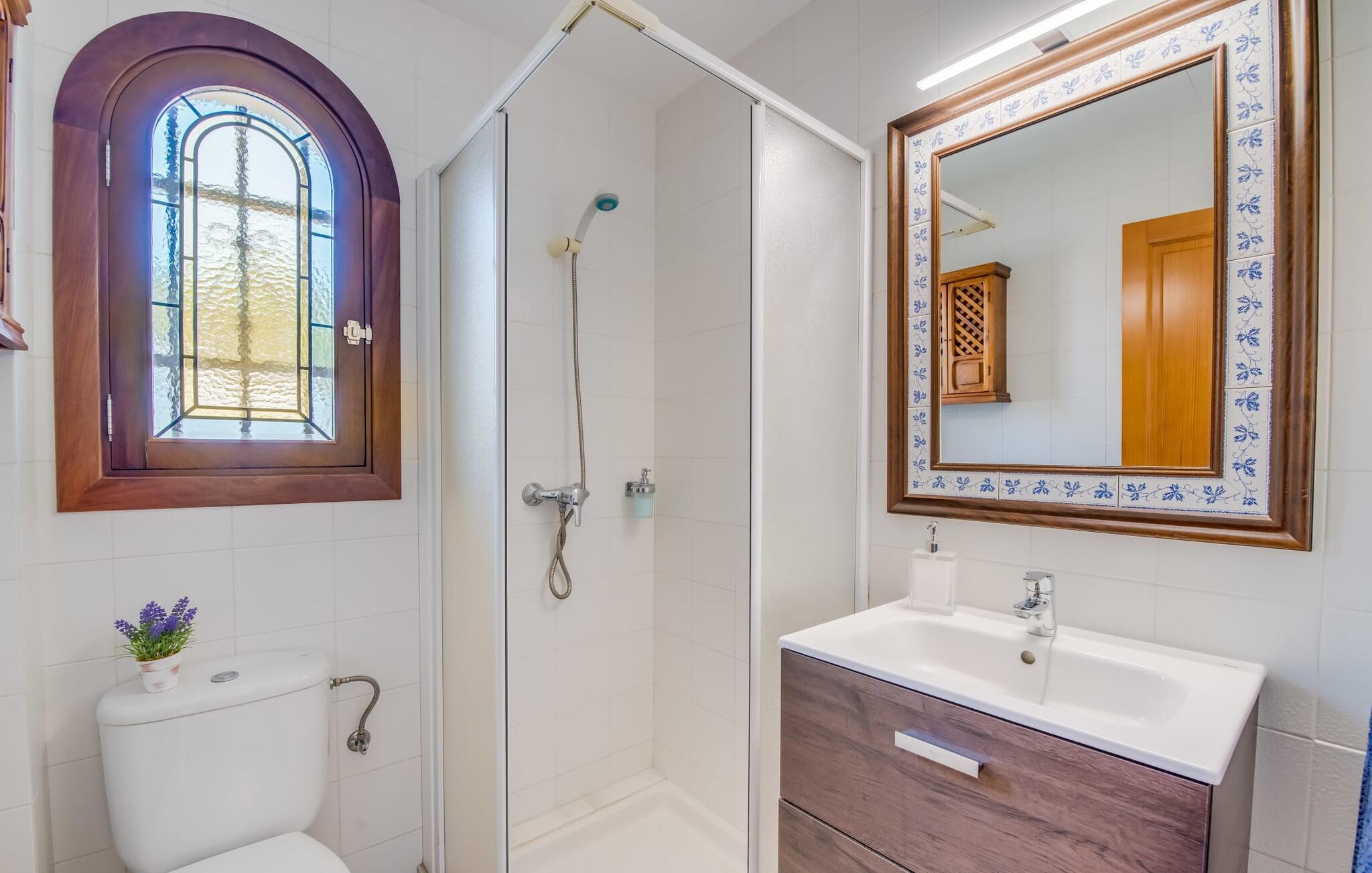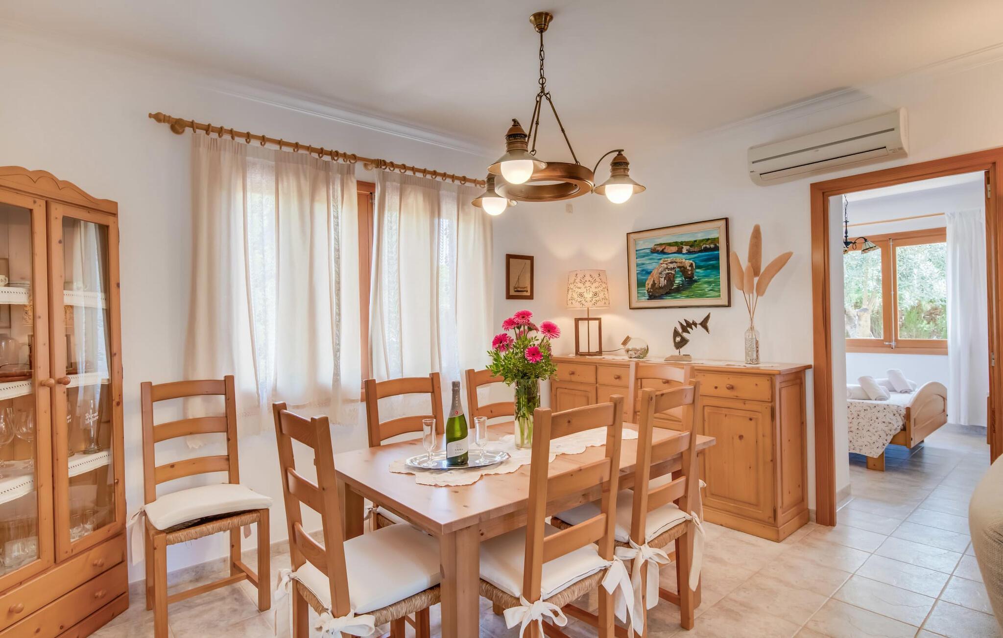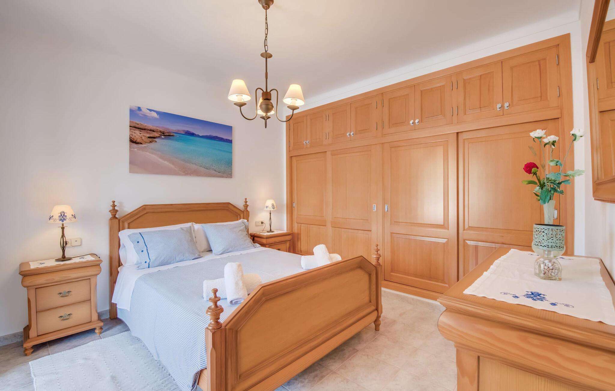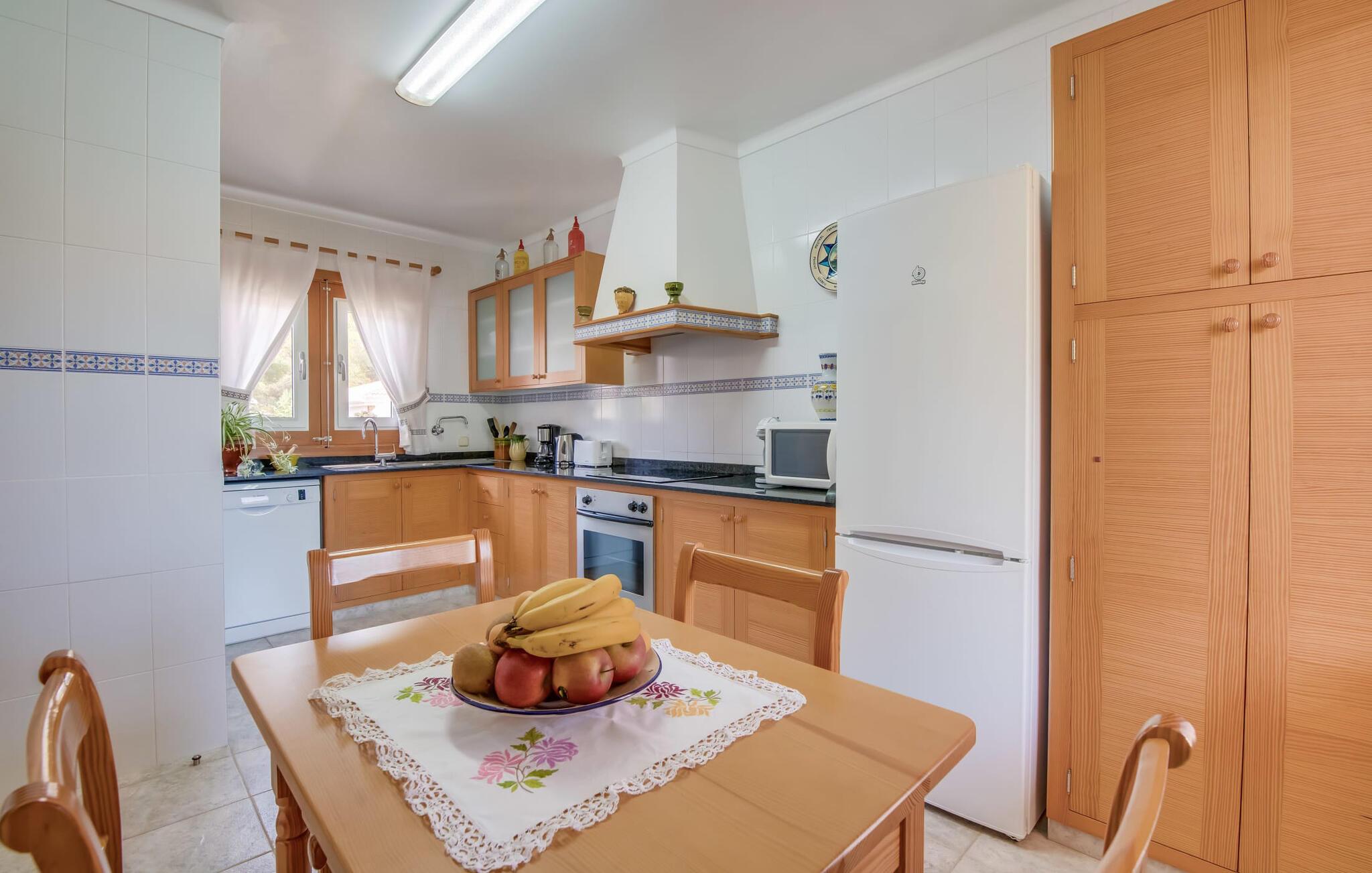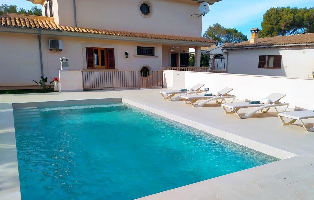 Et mere, to, tre, fire trin - nu kan jeres feriehygge begynde i den statelige, to-etagers villa "Calma de Son Serra de Marina". Trods den centrale beliggenhed er I omgivet af masser af grønt, da huset er omgivet af en hyggelig lille have. Fortryllede træer giver velkommen skygge, mens I slapper af i hængekøjen eller på en af liggestolene. Et andet pluspunkt: den tætte hæk betyder, at ingen kan invadere jeres privatliv. Den overdækkede, flisebelagte terrasse fungerer som morgenmadsområde eller grillplads - I kan helt sikkert slappe af ved træspisebordet eller på de kunstige rattanstole. Fra foråret 2022 vil villaen også have pool. Villaen har også flere møblerede altaner, hvor I til enhver tid kan indånde den friske middelhavsluft. Et andet praktisk tip: I kan parkere jeres lejebil direkte foran huset på den brostensbelagte gade. Den kombinerede stue/spisestue ligger i husets stueetage. Selvom ikke alle gæster finder plads til at putte sig på den komfortable, lyse sofa, når den er fuldt optaget, muliggør forskellige siddemuligheder i dette værelse stadig et hyggeligt samvær. Lette fliser og masser af træ udstråler en behagelig varm atmosfære og skaber en afslappet atmosfære, så snart I ankommer. Køkkenet ligger lige ved siden af og er veludstyret med kaffemaskine, elkedel, mikroovn, opvaskemaskine og meget mere. Et af de fire soveværelser støder direkte op til stuen, og det mindre brusebadeværelse ligger også på denne etage. På øverste etage er der yderligere tre værelser og badeværelse med badekar. Det ene værelse har en dobbeltseng, det ene har en køjeseng og det andet har to enkeltsenge - så alle kan finde deres foretrukne sted at sove i "Calma de Son Serra de Marina". Alle vil nyde Alcúdia-bugten. Udover god infrastruktur er der uberørte landskaber, turkisblåt vand og vidunderligt finkornet sand. Flade, skrånende strande er ideelle for familier, mens eventyrlystne besøgende kan tage til en af de dejlige strandbarer eller prøve kitesurfing. "Calma de Son Serra de Marina" ligger direkte på en gade, men alligevel er det lange boligområde behageligt stille og fredeligt. Lille tip: Den smukke naturpark Llevant er et fantastisk sted for vidunderlige vandreture, bestige høje tinder med fantastisk udsigt og beundre de uberørte klippeformationer. Den historiske kunstnerby Artà inviterer jer til at tage en afslappet gåtur gennem de snoede gader og tiltrækker også med et af de smukkeste markeder på øen. Strandelskere kan nyde dagen ved Torrent des Revellar eller tage et par kilometer længere til Son Real, Son Baulo eller den livligere by Can Picafort. Den veludstyrede villa "Calma de Son Serra de Marina" ligger i den østlige del af Mallorca, i den smukke og populære bugt Alcúdia. Praktisk: Supermarkeder, caféer og restauranter kan findes i umiddelbar nærhed. Den vidunderlige naturlige Torrent-strand Revellar kan nås på omkring 15 minutter til fods. Ture til middelalderlige Artà kan også nemt organiseres herfra.