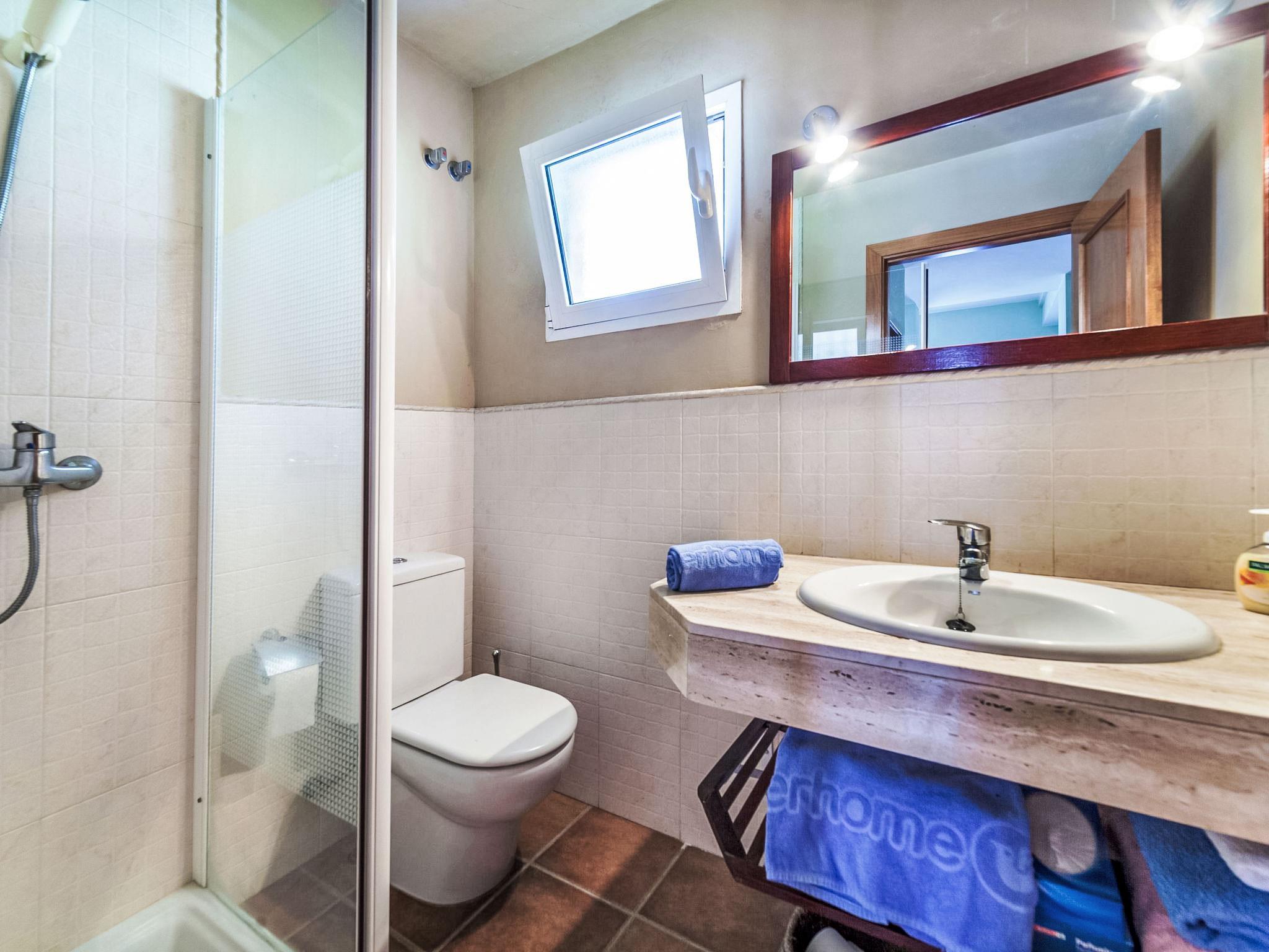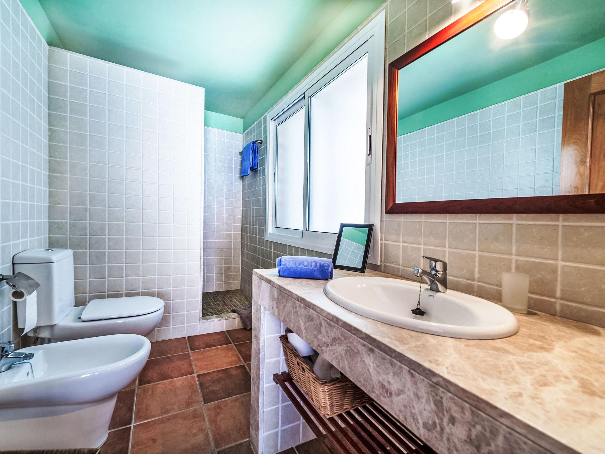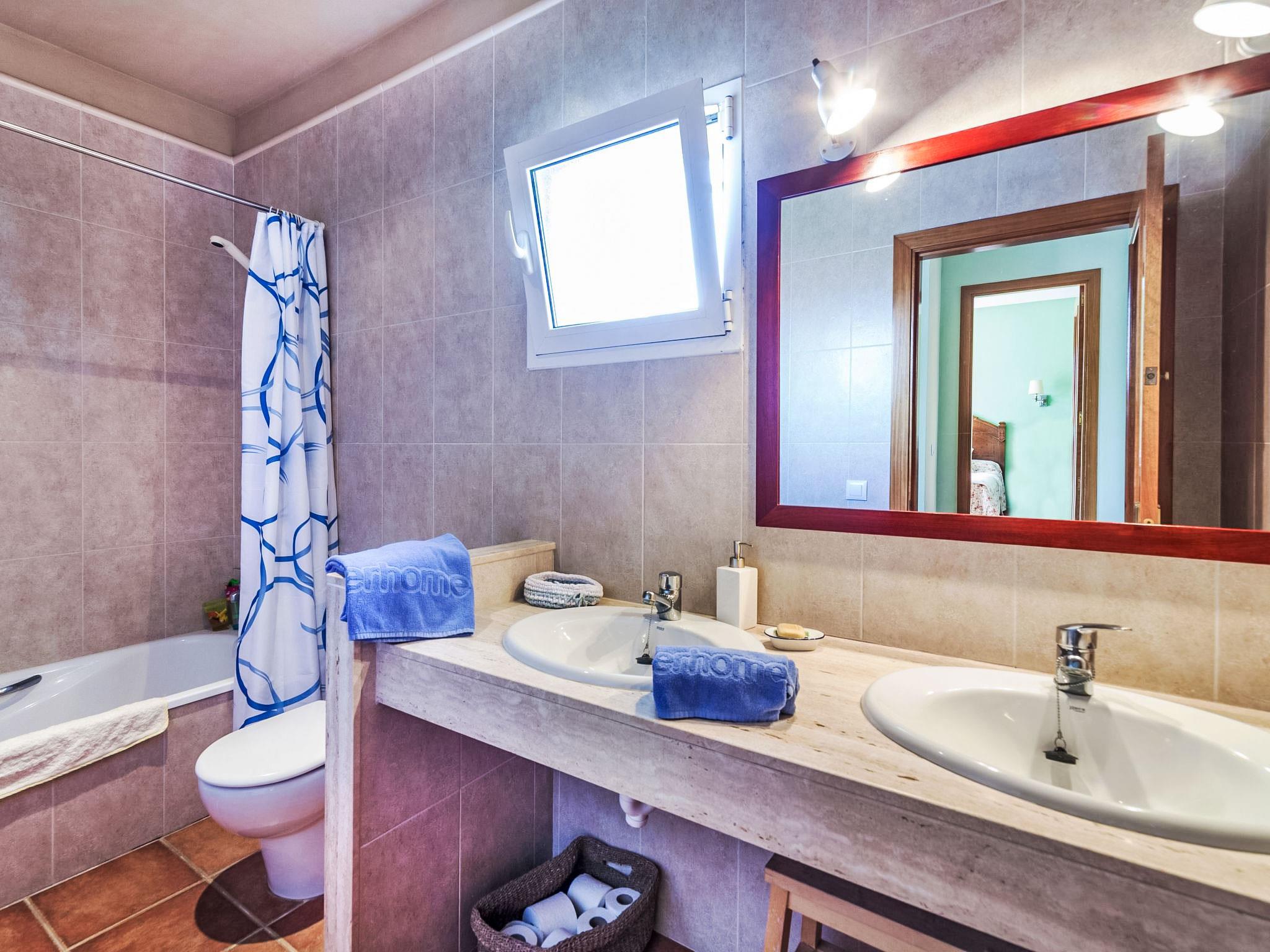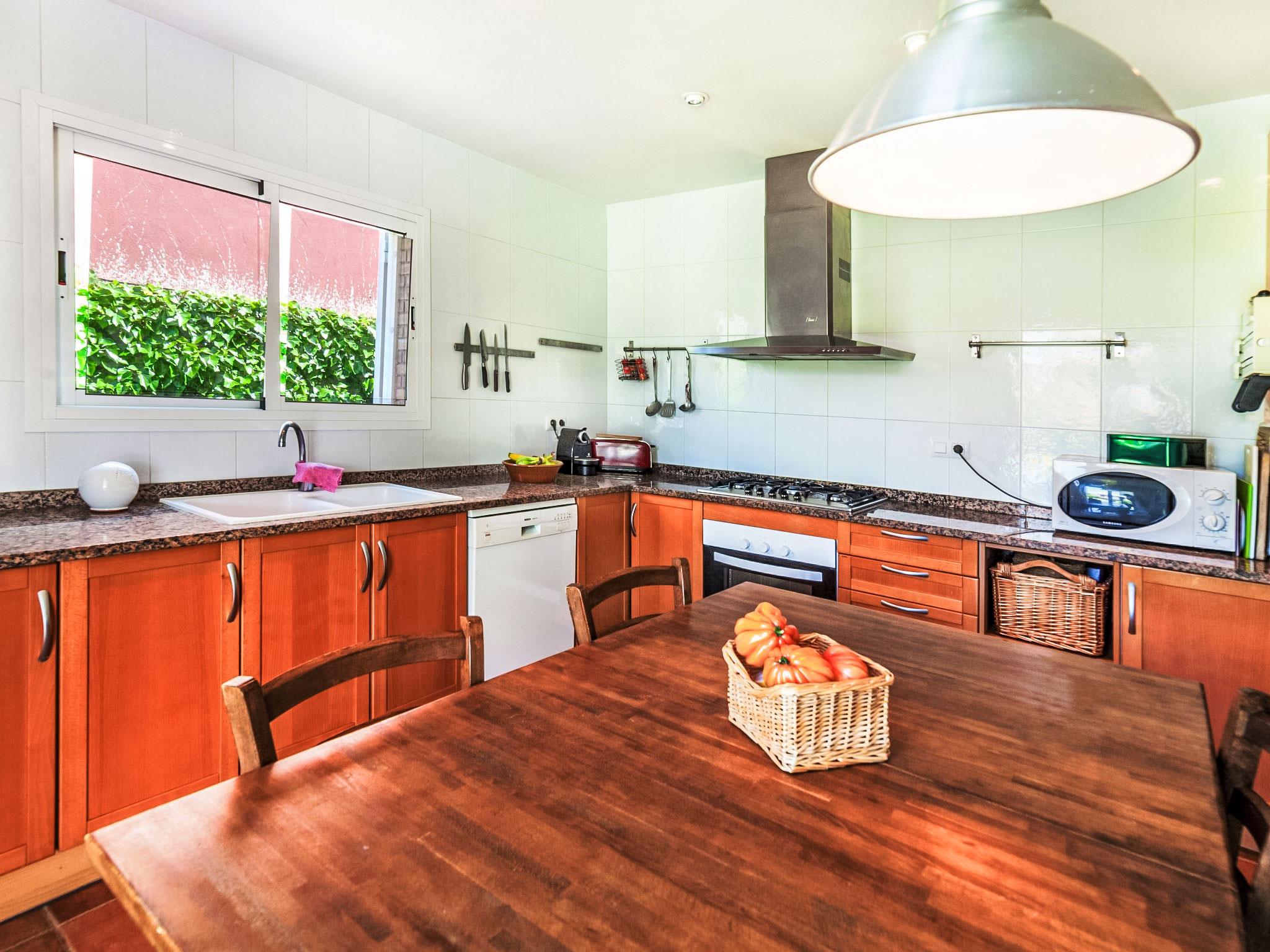 "Villa Esther", 5-room house 145 m2 on 2 levels. Bright, practical and cosy furnishings: living/dining room with digital TV. Exit to the terrace. 1 double bedroom with 2 beds (90 cm, length 190 cm). Kitchen (4 hot plates, oven, dishwasher, toaster, kettle, microwave, freezer, electric coffee machine). Shower/WC. Upper floor: 1 room with 2 beds (90 cm, length 190 cm). 1 room with 1 french bed (150 cm, length 190 cm), shower/bidet/WC. Exit to the terrace. 1 room with 1 french bed (150 cm, length 190 cm). Bath/bidet/WC. Heating. Deck chairs (4). Beautiful view of the countryside and the resort. Facilities: washing machine, iron, children's high chair, baby cot for up to 2 year olds, hair dryer. Internet (WiFi, free). Please note: non-smoking house. TV only ES. HUTG-027950 // Reg. Nr.: ESFCTU00001701500011708500000000000000000HUTG-0279508