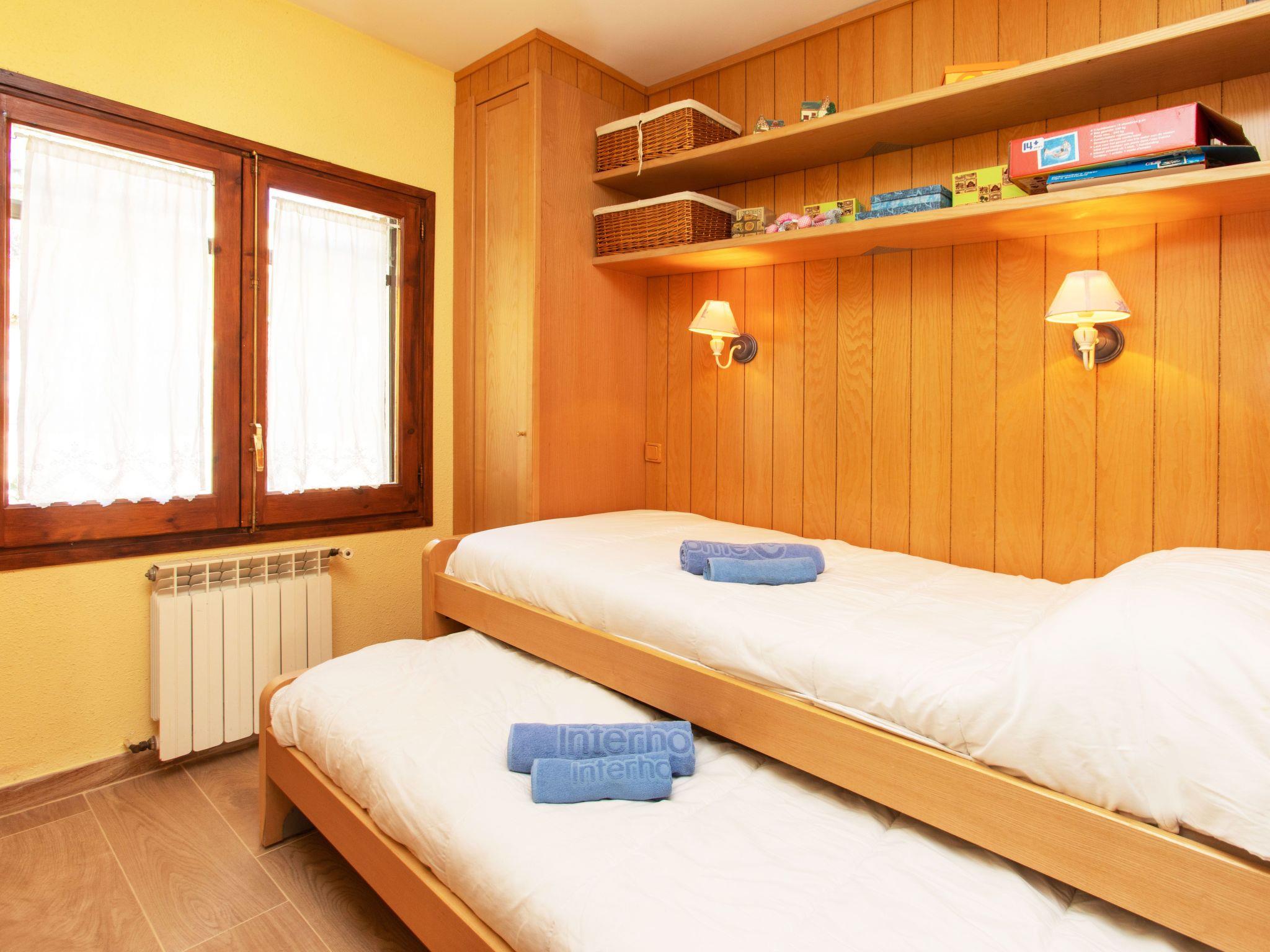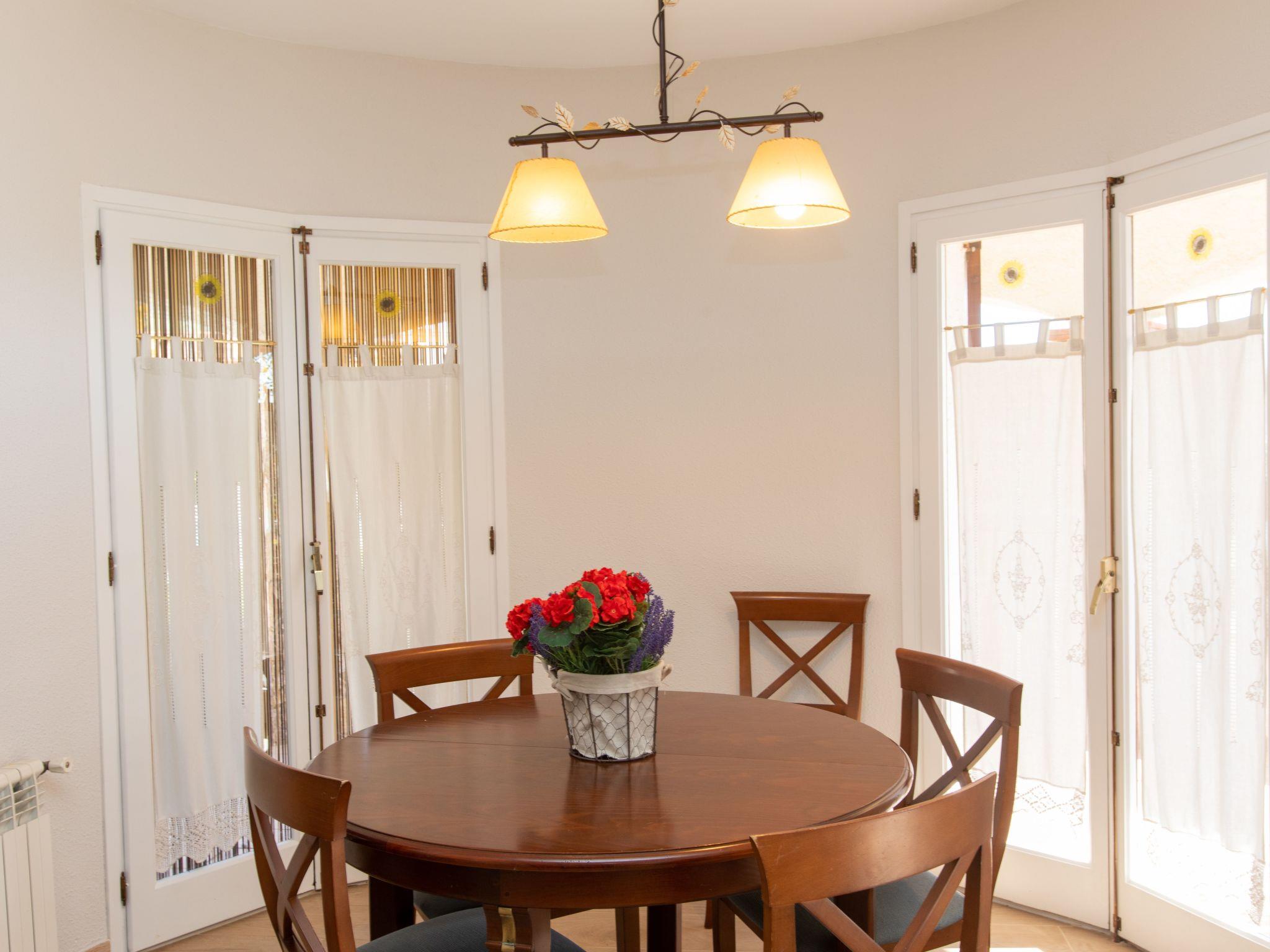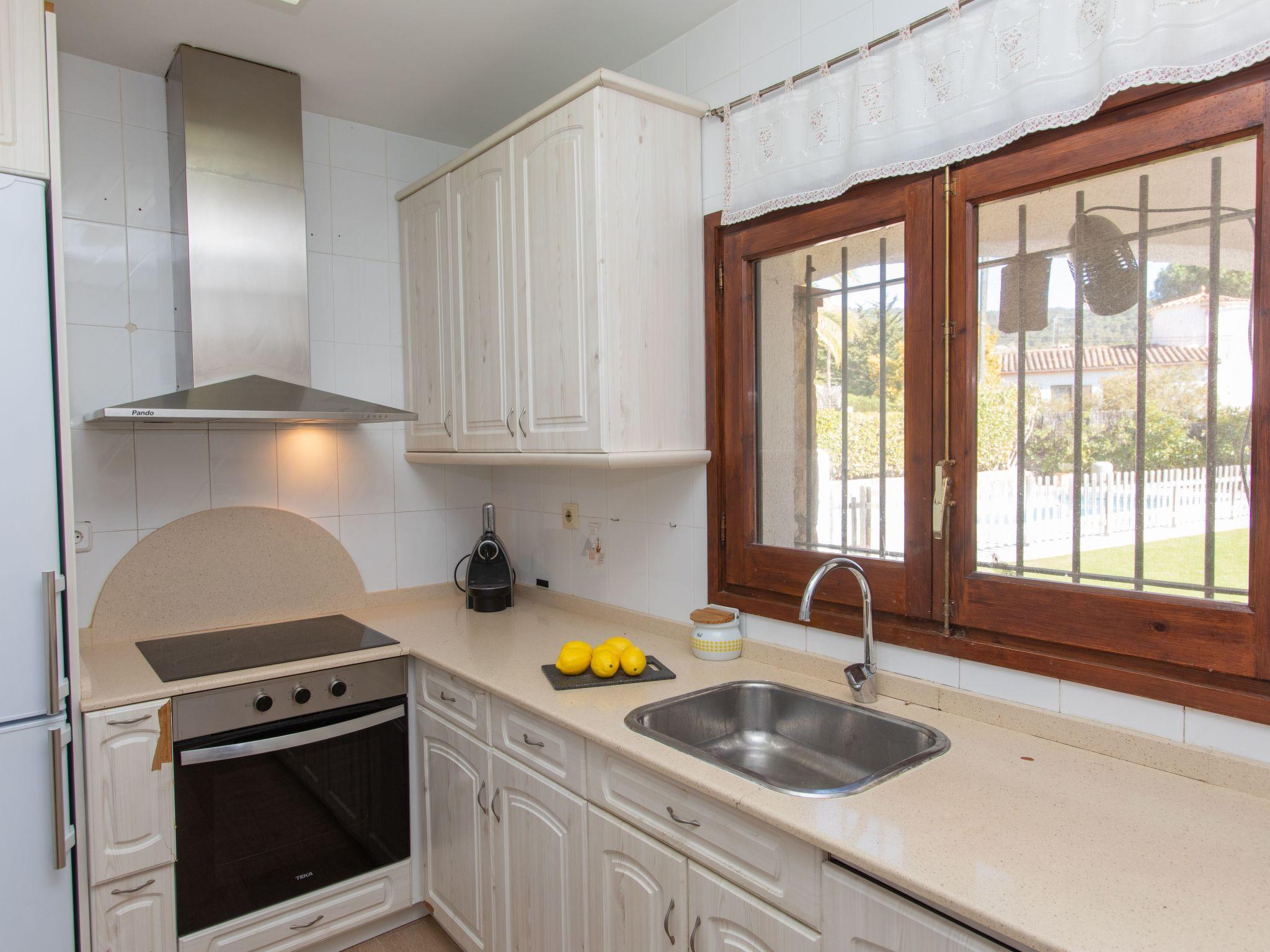 "Mas Companys", 5-room villa 100 m2. Beautiful furnishings: living/dining room with satellite TV and fan. Exit to the garden, to the swimming pool. 1 room with 1 french bed (150 cm, length 190 cm), TV (flat screen). 1 room with 1 x 2 bunk beds (90 cm, length 180 cm). 1 room with 1 pull-out bed (2 pers. 2 x 90 cm, length 190 cm). Kitchen (oven, dishwasher, 3 ceramic glass hob hotplates, toaster, kettle, microwave, freezer, electric coffee machine). Bath/WC, shower/WC. Heating. Heating available only from 30.11. to 01.05. On the lower ground floor: with shower/WC. Large garden 900 m2, lawn. Terrace furniture, barbecue, deck chairs, covered balcony, sitting area. View of the countryside. Facilities: washing machine, children's high chair, baby cot. Internet (WiFi, free). Parking at the house. Please note: non-smoking house. Maximum 2 pets/ dogs allowed. TV only ES. HUTG-036858 // Reg. Nr.: ESFCTU00001701500001743900000000000000000HUTG-0368587
