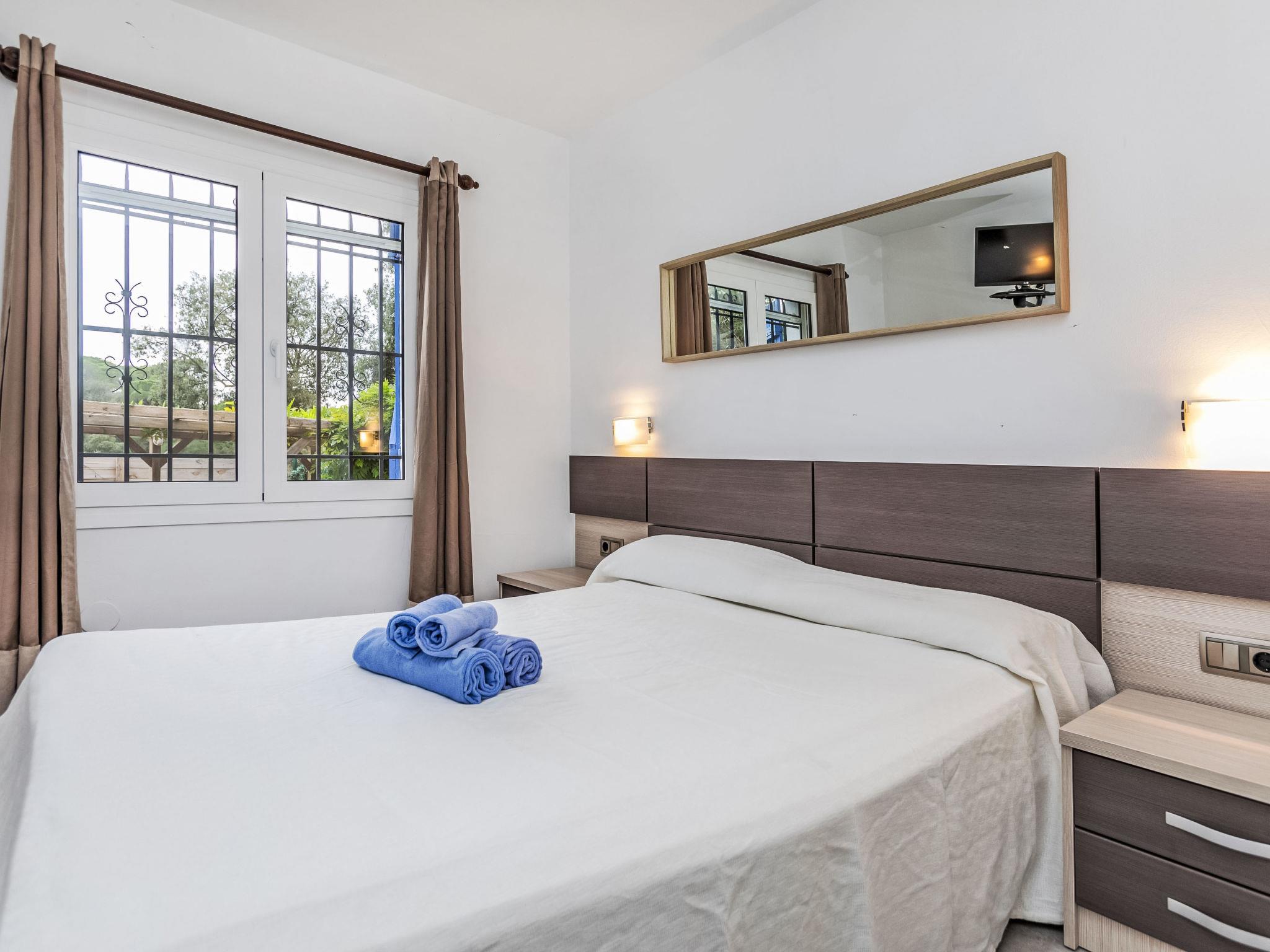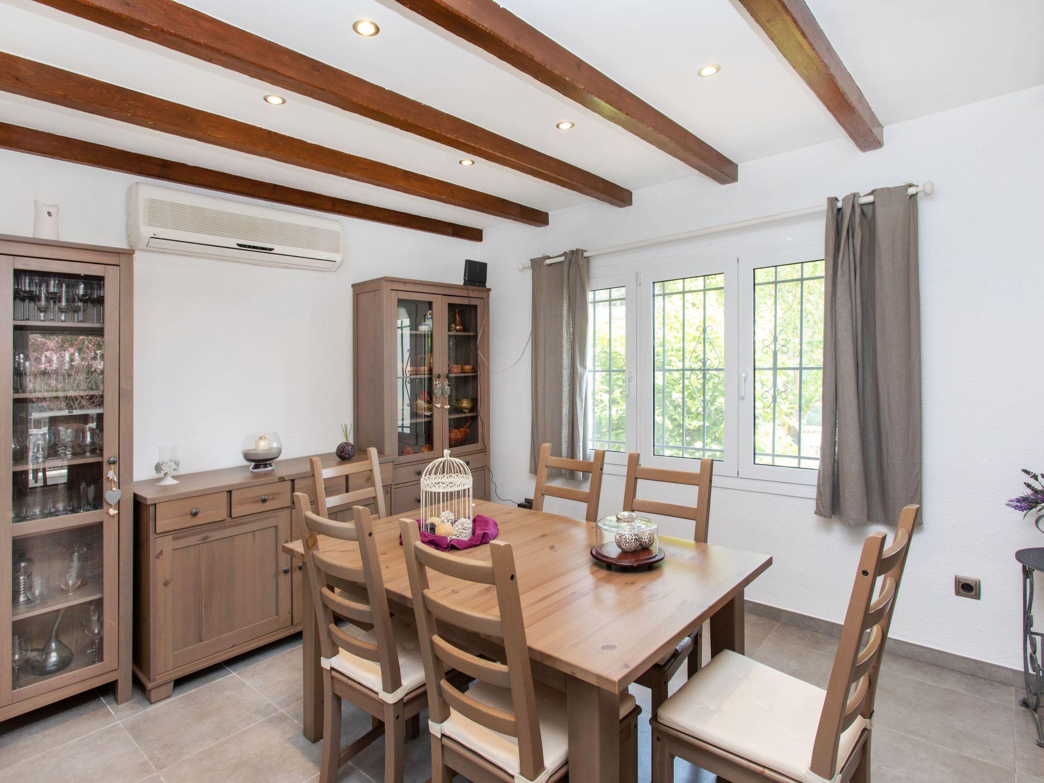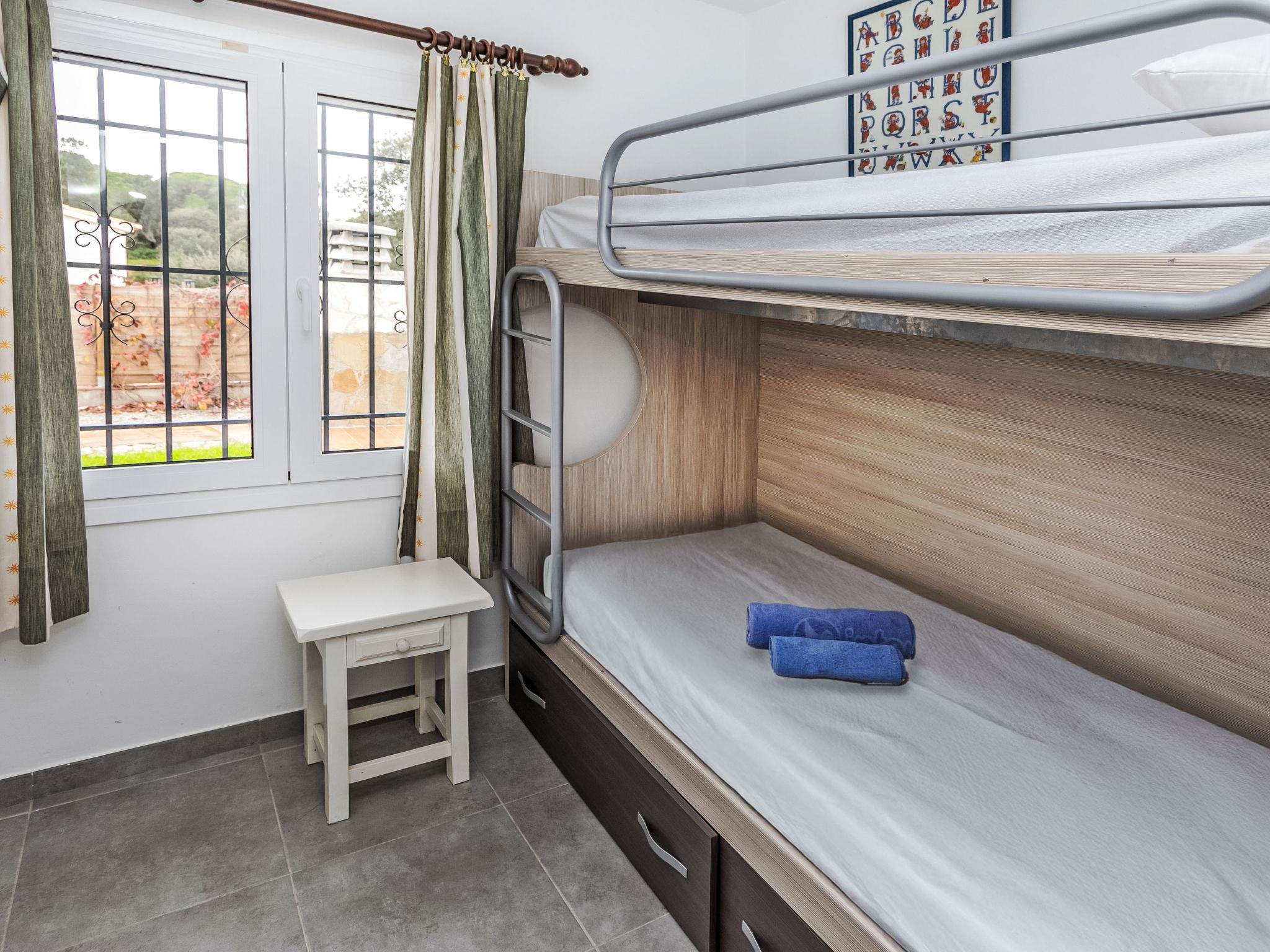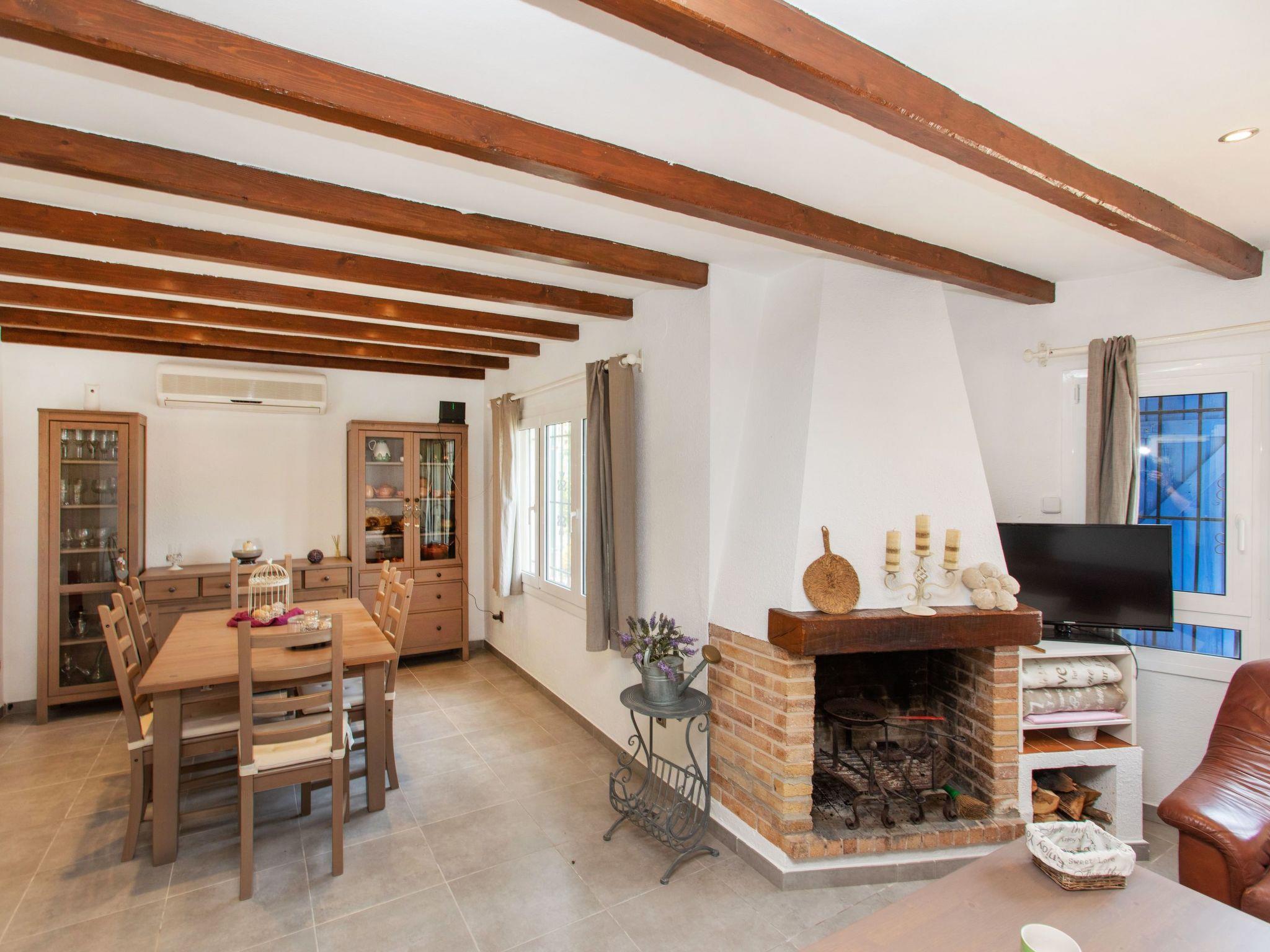 "Ami", 4-room house 150 m2. Practical furnishings: living/dining room with open-hearth fireplace, digital TV, air conditioning and forced-air heating. Exit to the patio, to the swimming pool. 1 room with 1 french bed (150 cm, length 190 cm), electric heating. 1 room with 2 beds (90 cm, length 190 cm), electric heating. 1 room with 1 x 2 bunk beds (90 cm, length 190 cm), electric heating. Kitchen (4 hot plates, oven, dishwasher, toaster, kettle, microwave, freezer, electric coffee machine). Shower/WC. Large terrace. Terrace furniture, barbecue, deck chairs (4). View of the swimming pool and the countryside. Facilities: washing machine, children's high chair, baby cot for up to 2 year olds, hair dryer. Internet (WiFi, free). Please note: suitable for families. TV only ES. HUTG-046038 // Reg. Nr.: ESFCTU00001701500029205800000000000000000HUTG-0104385