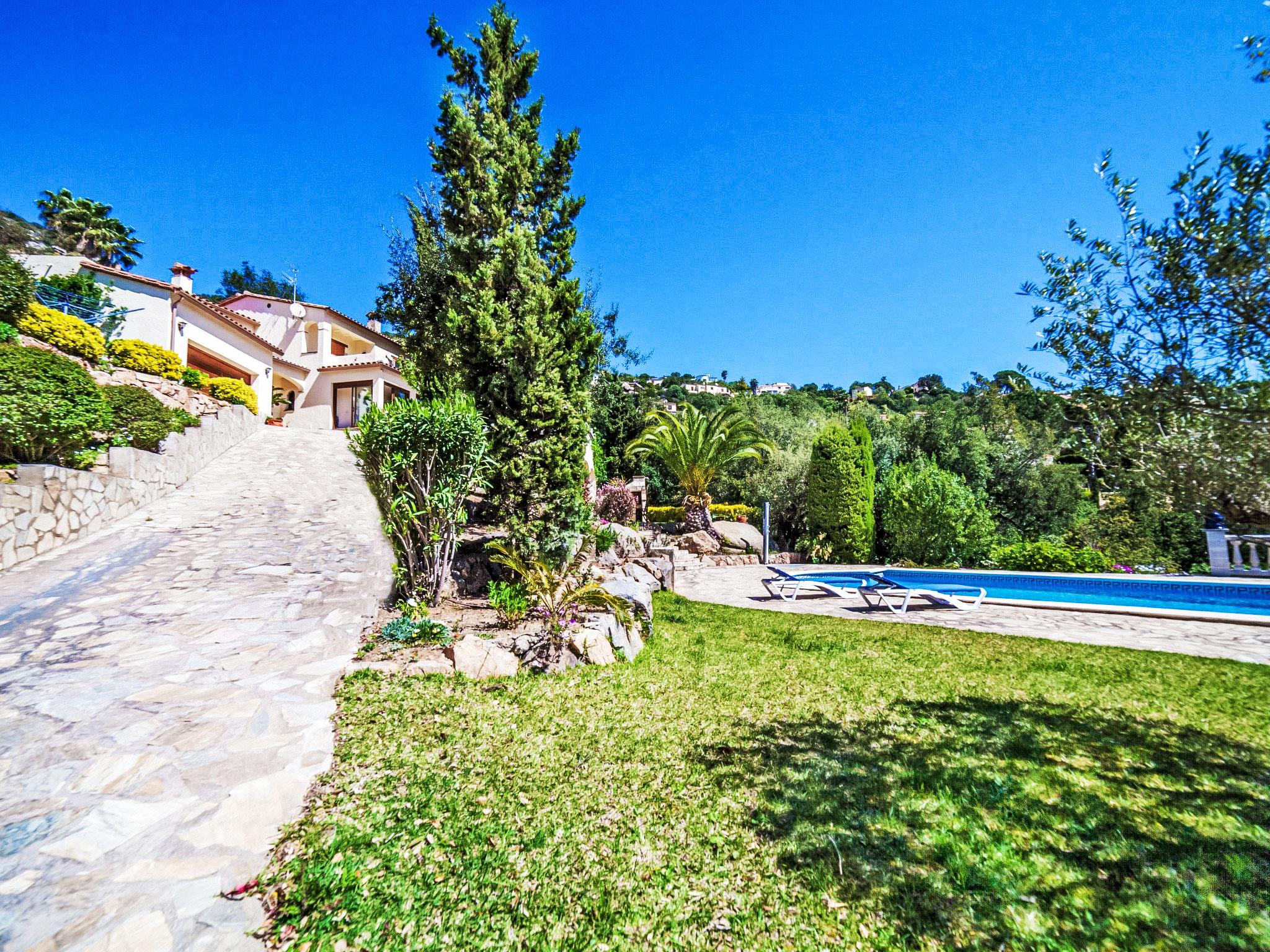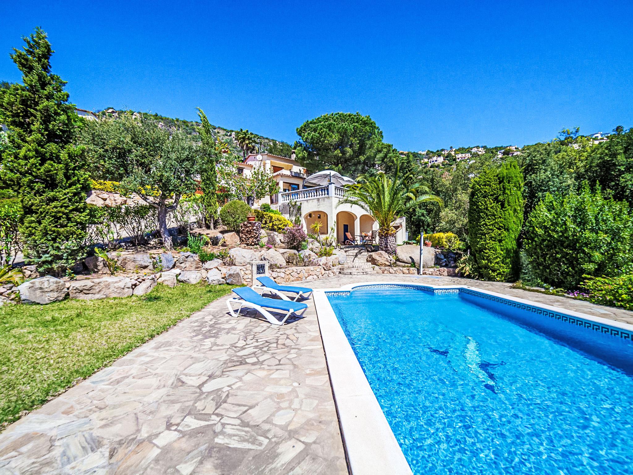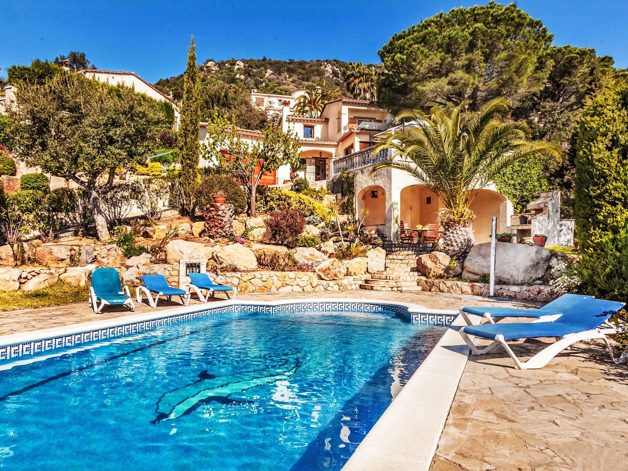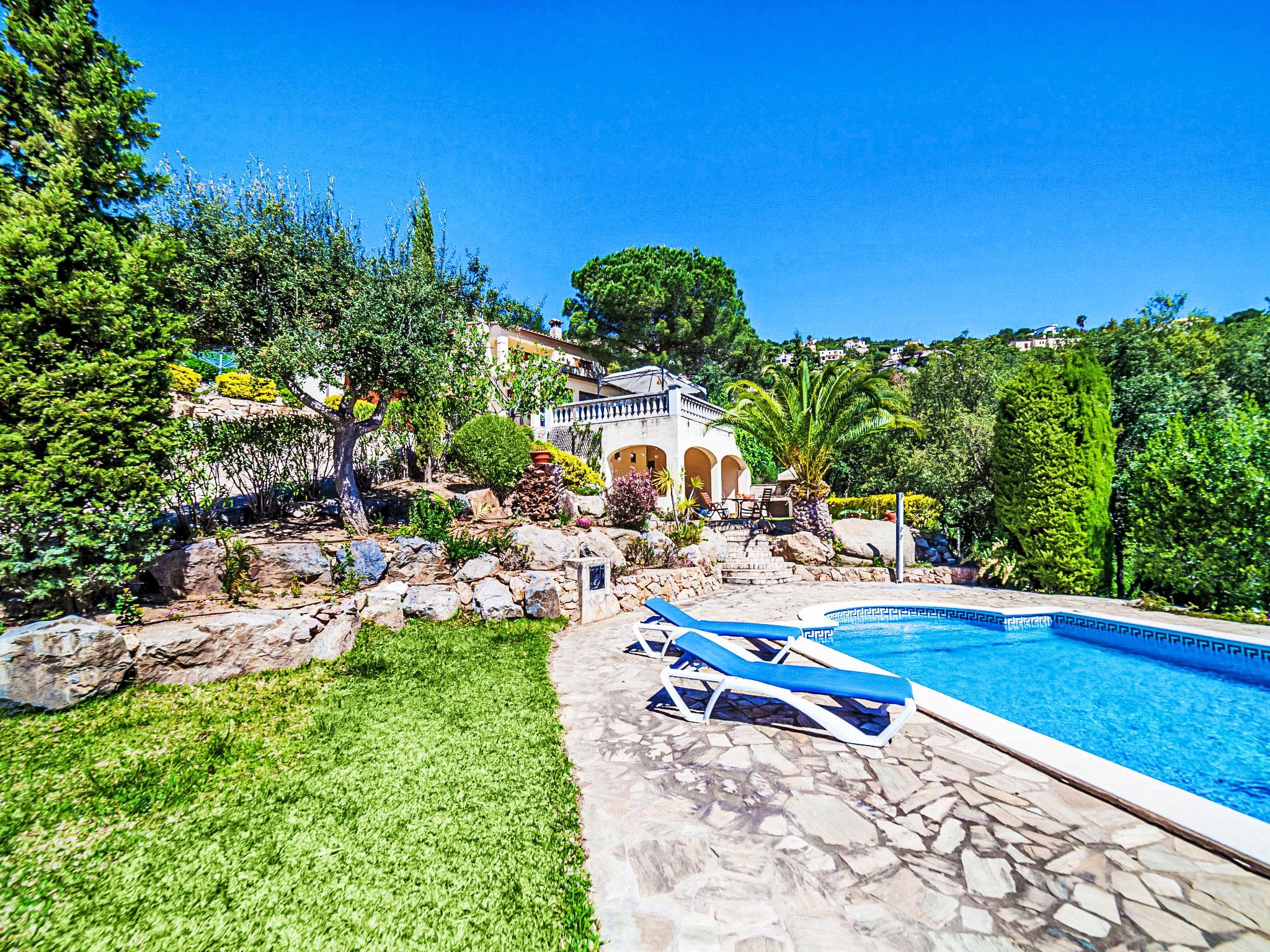 Vizcondado de Cabanyes 3 km from Calonge: Beautiful, comfortable villa "Venecia", 2 storeys. 5 km from the sea. Private: natural garden 1'000 m2, beautiful garden to relax, swimming pool angular (10 x 5 m, seasonal availability: 01.May. - 30.Oct.). Outdoor shower, arbour, pergola, terrace, garden furniture, barbecue, parking at the house. Supermarket 1.8 km, restaurant 700 m, bus stop 1 km, sandy beach "Sant Antoni de Calonge" 5 km. Sports harbour 8 km, golf course (18 hole) 6 km, tennis 2 km, riding stable 12 km. Please note: car recommended.