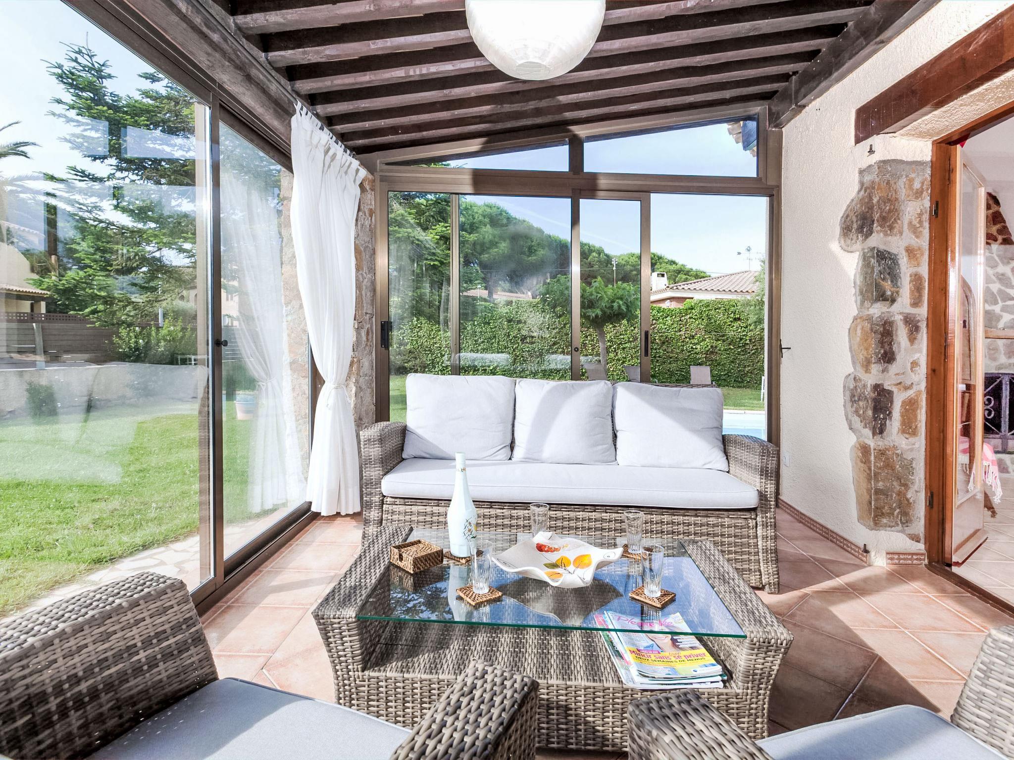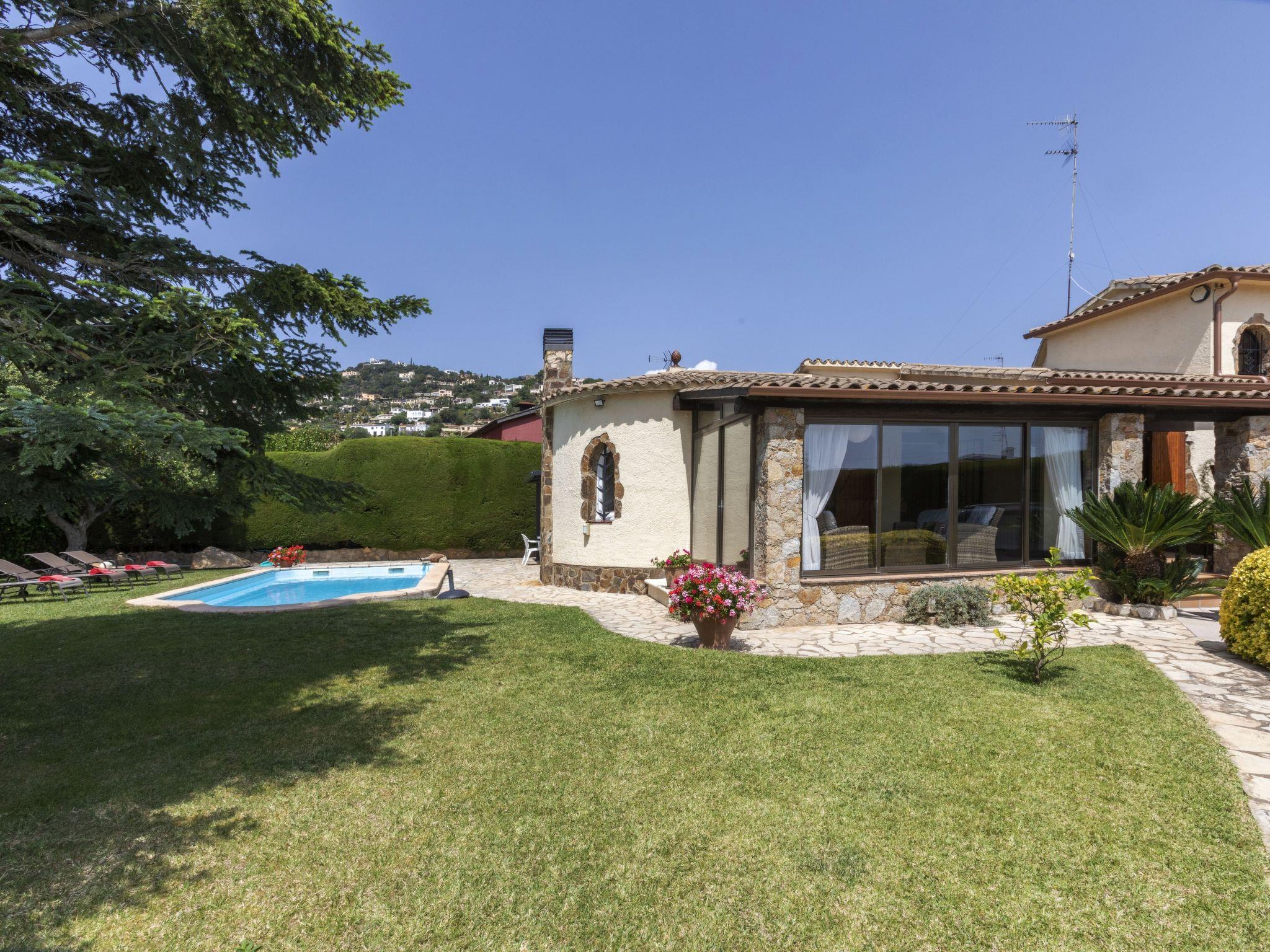 Vizcondado de Cabanyes 3 km from Calonge: Comfortable house "Origami", 2 storeys. 5 km from the sea. Private: garden (fenced), swimming pool angular (8 x 4 m, depth 90 - 155 cm, seasonal availability: 01.May. - 30.Oct.) with internal staircase. Terrace, garden furniture, barbecue, parking at the house, single garage. Supermarket 1.8 km, restaurant 1 km, bus stop 500 m, sandy beach "Sant Antoni de Calonge" 5 km. Sports harbour 8 km, golf course (18 hole) 10 km, riding stable 12 km. Nearby attractions: Parque Aquatico 6 km. Please note: car recommended. The owner does not accept any youth groups.
