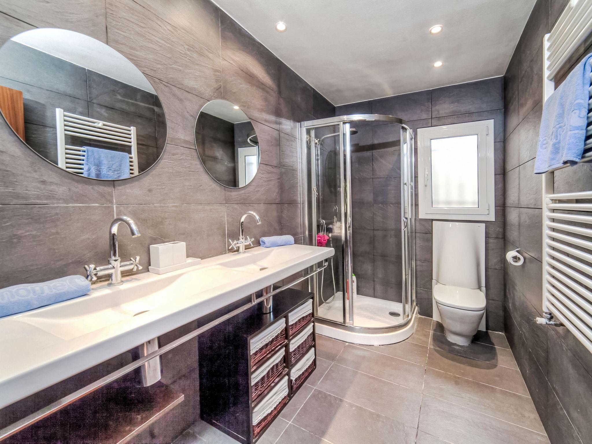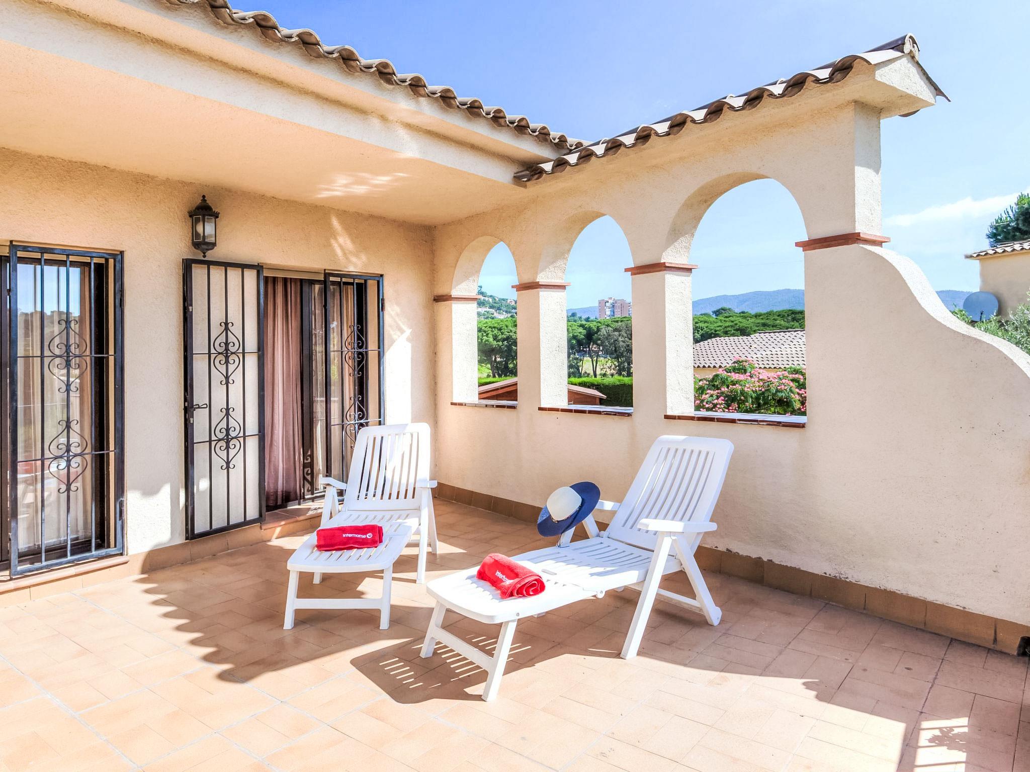 "Origami", 4-room house 125 m2 on 2 levels. Practical furnishings: living/dining room with digital TV. Exit to the patio, to the swimming pool. 1 room with 2 beds (90 cm, length 200 cm). 1 room with 1 french bed (160 cm, length 200 cm). Kitchen (oven, dishwasher, 5 gas rings, toaster, kettle, microwave, freezer, electric coffee machine). Shower/WC. No heating option. Upper floor: 1 room with 1 french bed (160 cm, length 190 cm), shower/bidet/WC. Exit to the terrace. Deck chairs (6). View of the countryside and the resort. Facilities: washing machine, children's high chair, baby cot for up to 2 year olds. Internet (WiFi, free). Garage at the house. Please note: suitable for families. Non-smoking house. HUTG-030811 // Reg. Nr.: ESFCTU00001701500021563700000000000000000HUTG-0308118