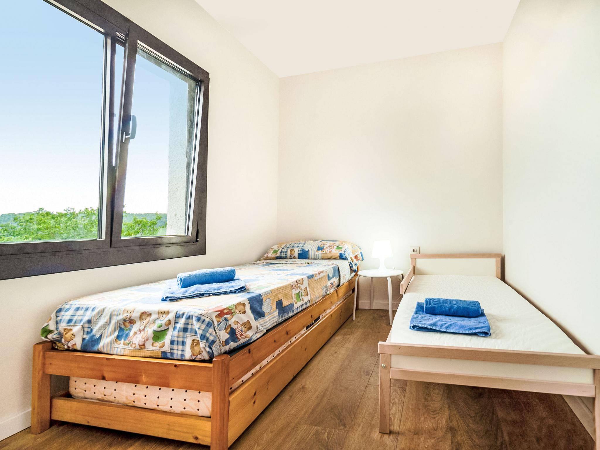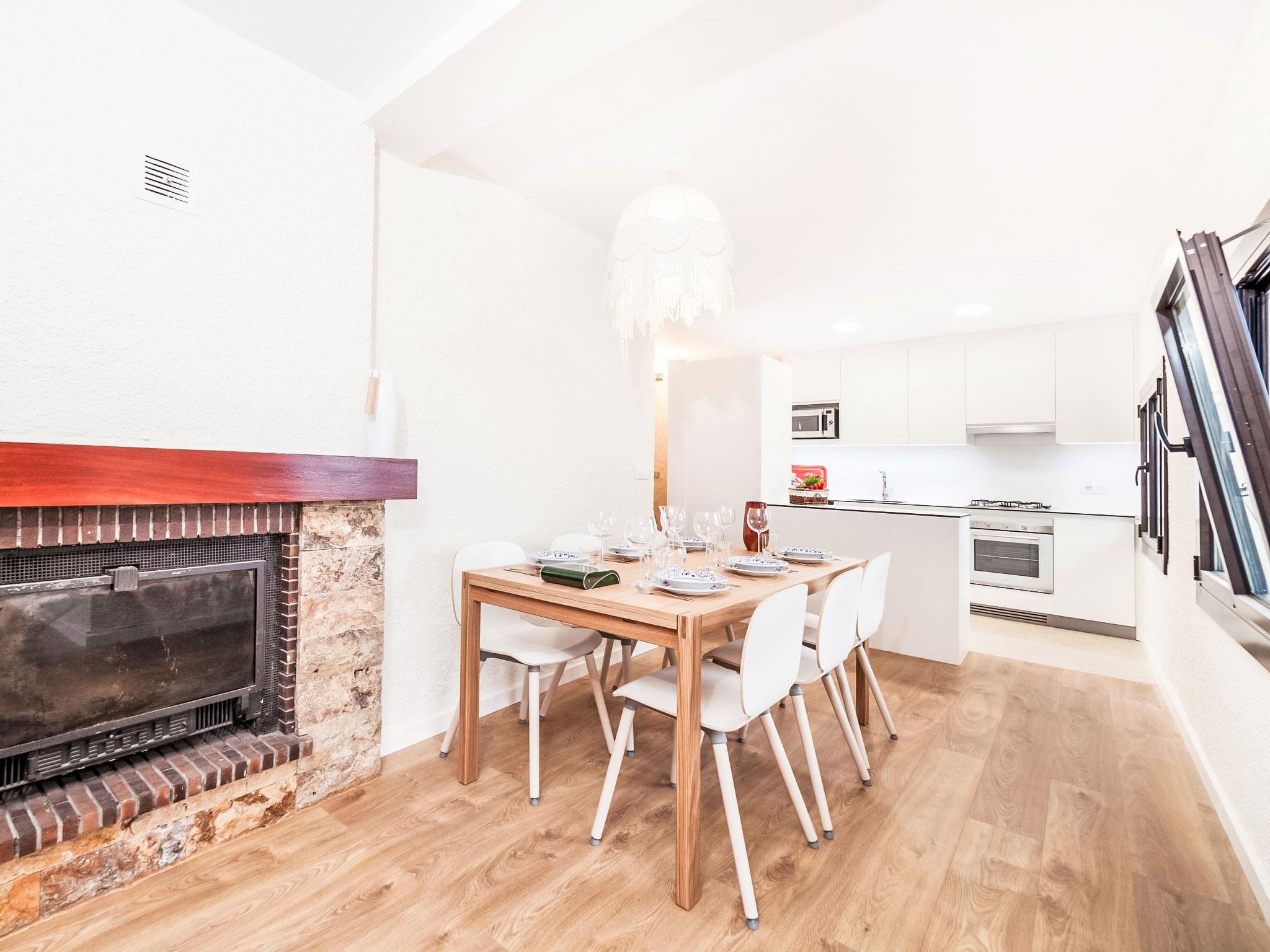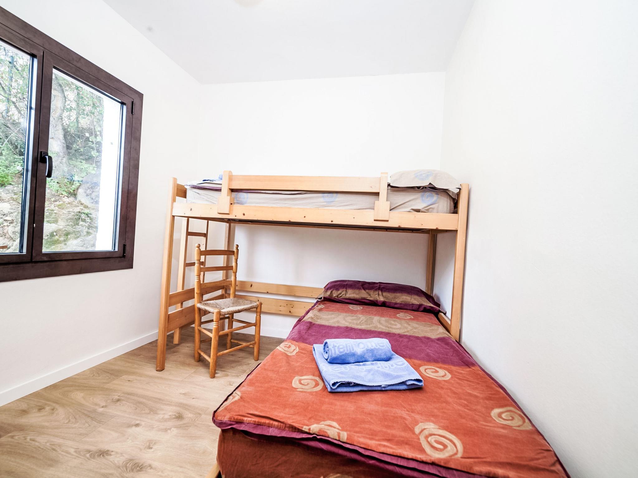 "Paris", 5-room house 95 m2 on 2 levels. Practical furnishings: living/dining room with digital TV and fan. Exit to the patio, to the swimming pool. Kitchen (4 hot plates, dishwasher, toaster, kettle, microwave, freezer, electric coffee machine). 2 showers/WC. No heating option. Upper floor: 2 rooms, each room with 2 beds (80 cm, length 190 cm), fan. 1 room with 1 bed (80 cm, length 190 cm), fan with 1 french bed (150 cm, length 190 cm), fan. Deck chairs (6). Distant view of the sea, the countryside and the resort. Facilities: washing machine, children's high chair, baby cot, hair dryer. Internet (WiFi, free). Parking space n en la misma calle. Please note: non-smoking house. TV only ES. HUTG-028018 // Reg. Nr.: ESFCTU00001701500020675800000000000000000HUTG-0280180