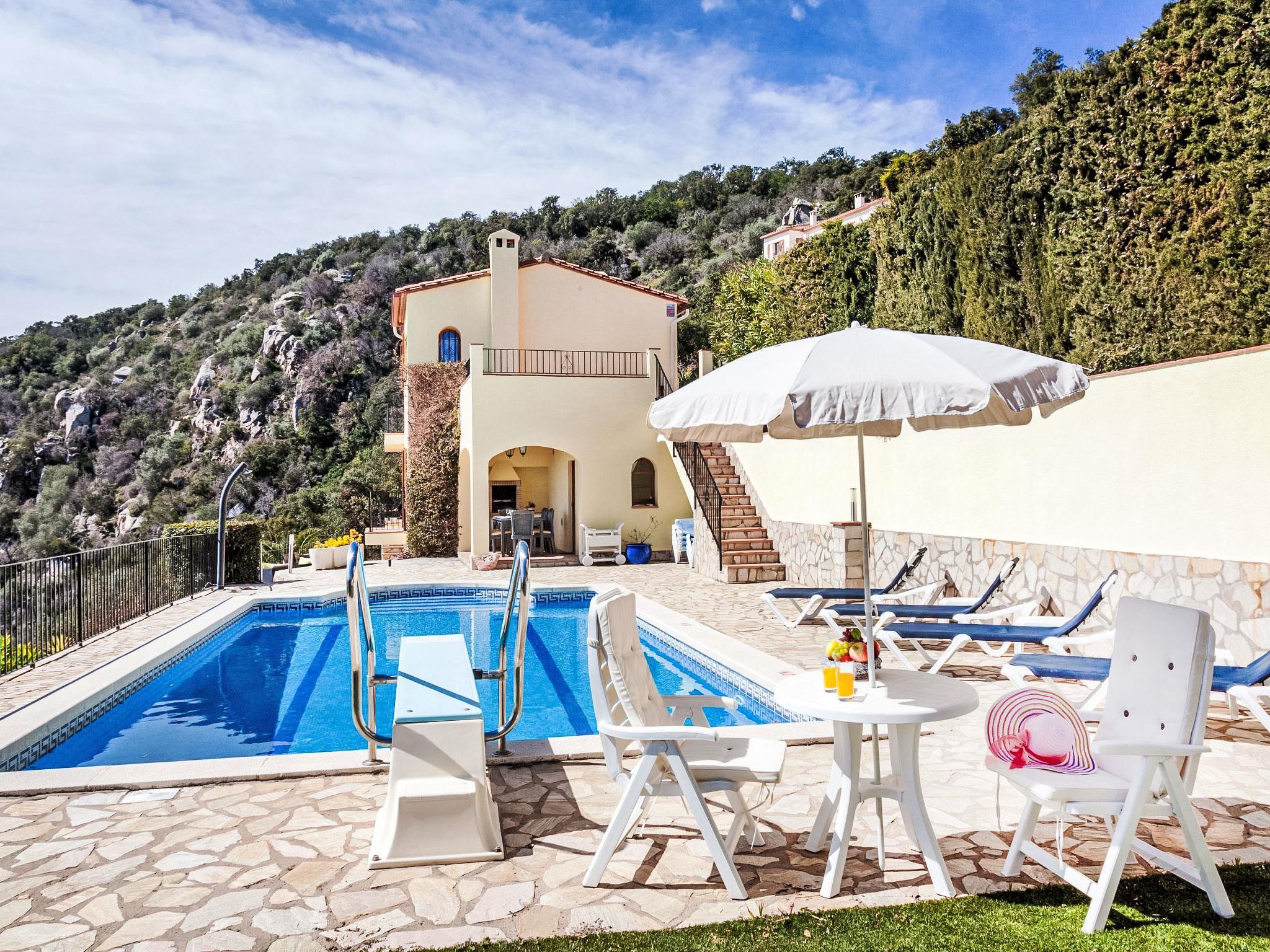 Vizcondado de Cabanyes 3 km from Calonge: Beautiful house "Lausanne", 2 storeys. 6 km from the sea. Private: garden (fenced), swimming pool angular (10 x 5 m, seasonal availability: 01.May. - 30.Oct.) with internal staircase. Outdoor shower, pergola, terrace, garden furniture, barbecue, parking at the house. Supermarket 2.5 km, restaurant 2 km, bus stop 1 km, sandy beach "Sant Antoni de Calonge" 6 km. Sports harbour 8 km, golf course (18 hole) 10 km, riding stable 12 km. Nearby attractions: Parque Aquatico 6 km. Please note: car recommended. The owner does not accept any youth groups.