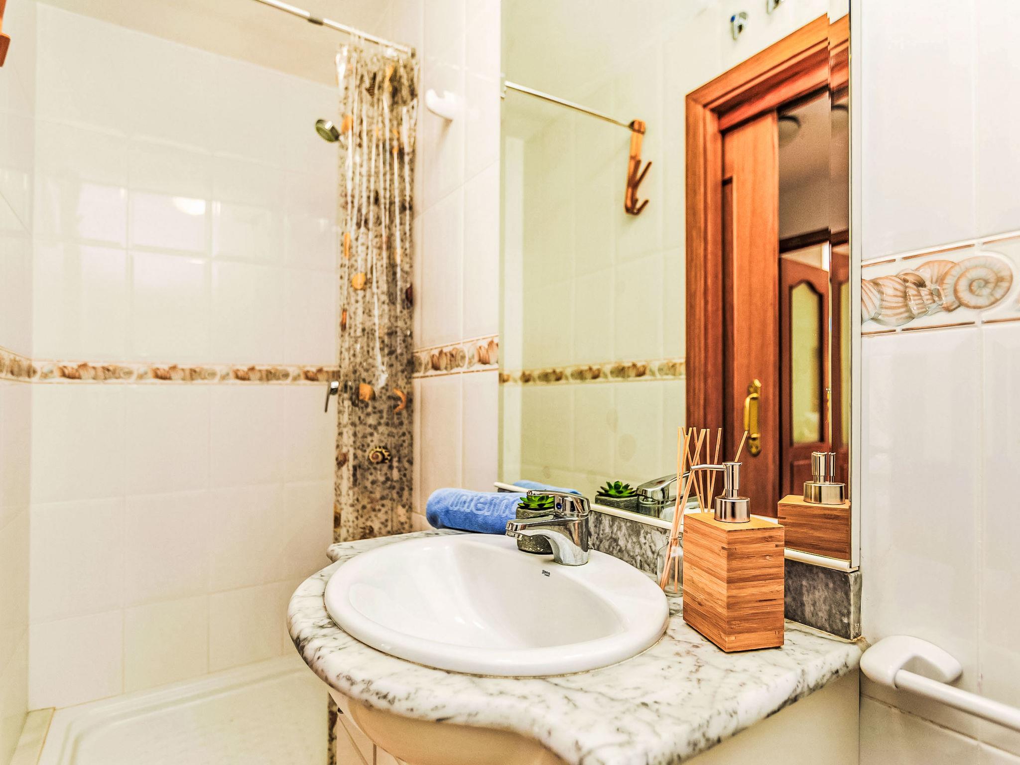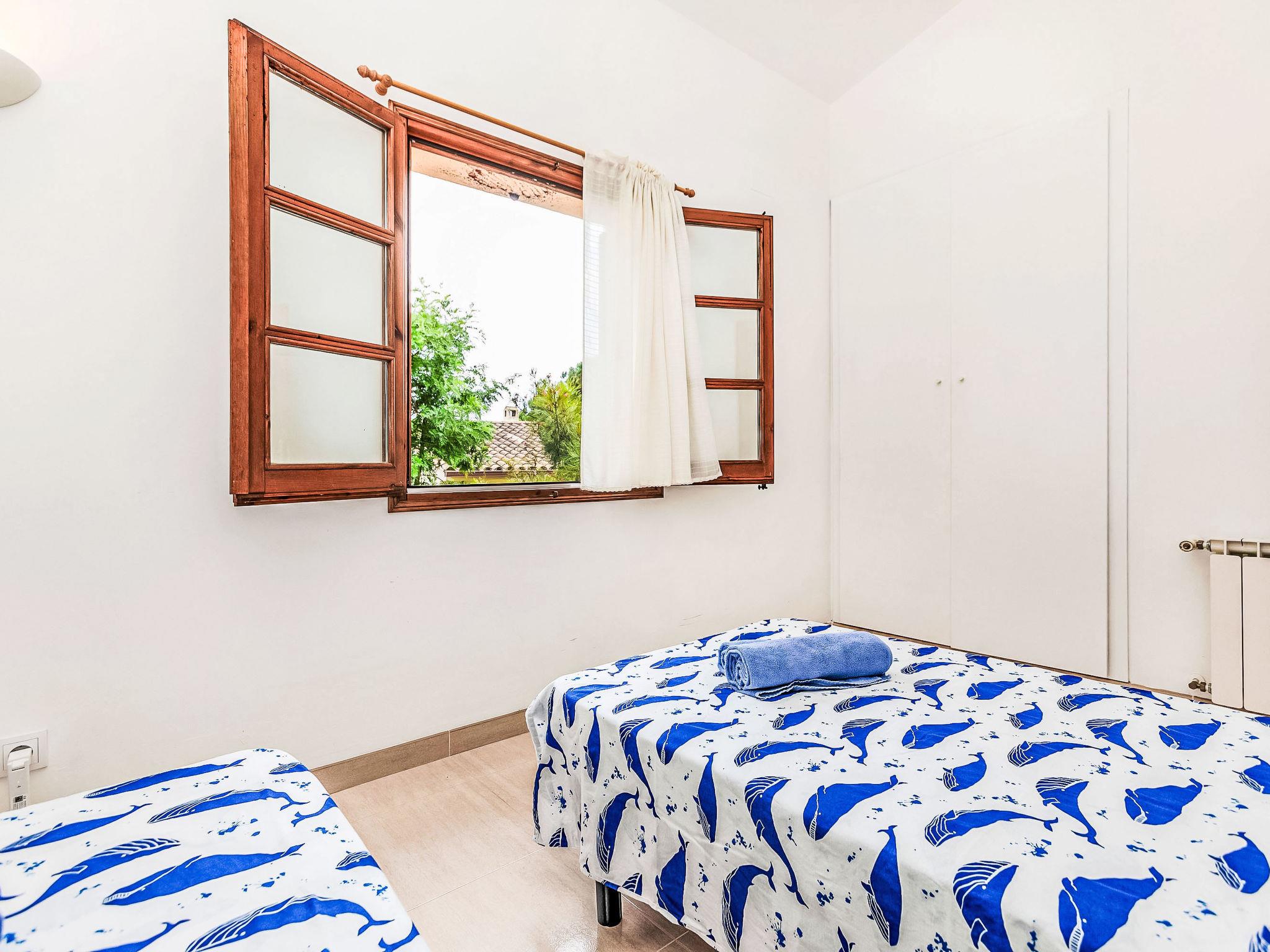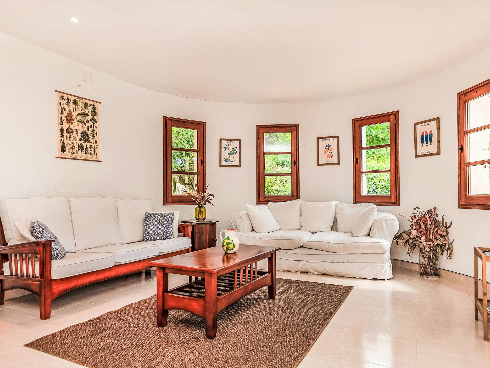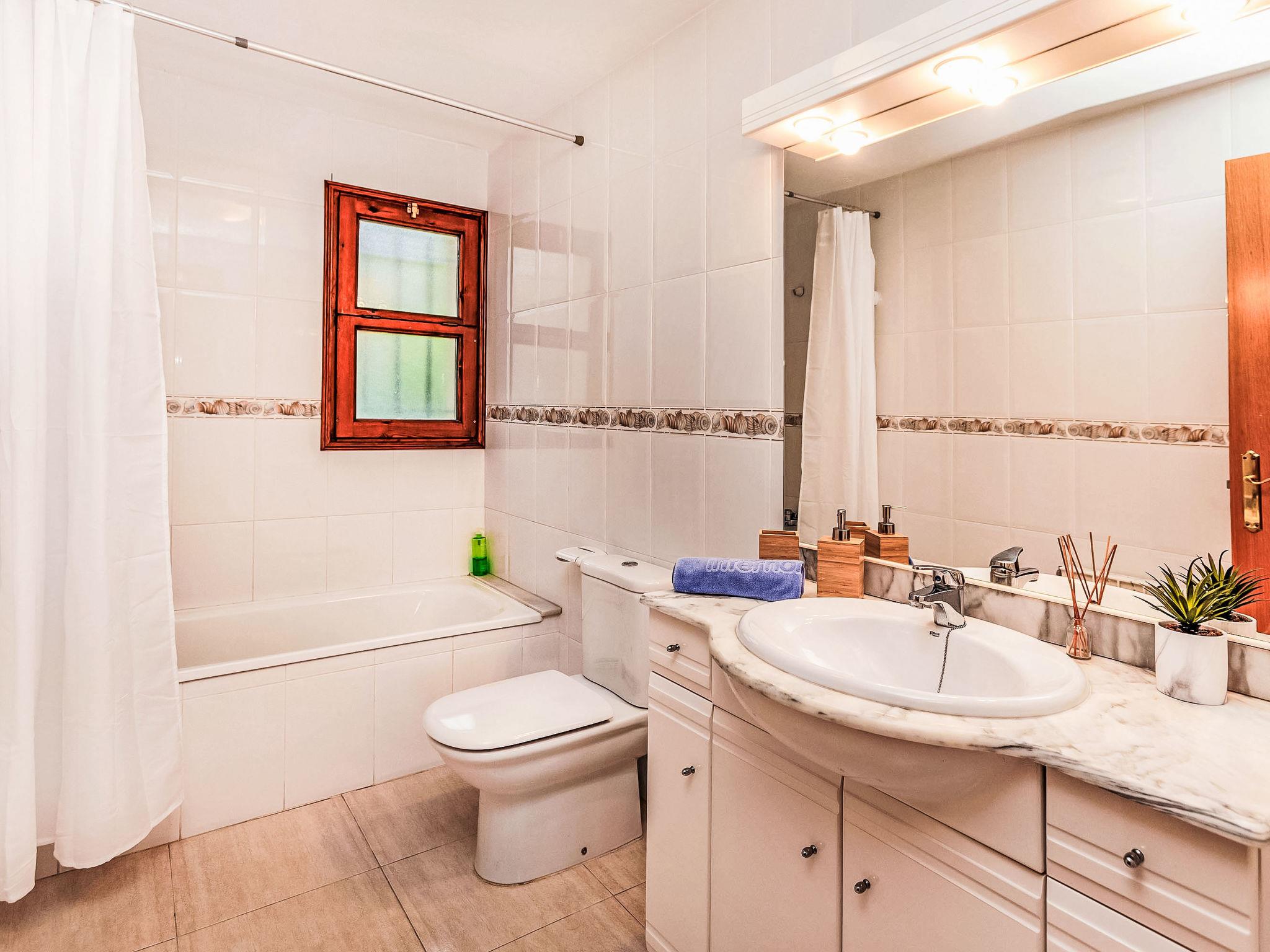 "Villa Brava", 4-room house 211 m2 on 2 levels. Spacious and bright, practical furnishings: living/dining room with open-hearth fireplace, digital TV and international TV channels. Exit to the garden. 1 room with 1 french bed (150 cm, length 190 cm), bath/WC. 1 room with 1 french bed (150 cm, length 190 cm). 1 room with 2 beds (90 cm, length 190 cm). Kitchen (oven, dishwasher, 4 ceramic glass hob hotplates, toaster, kettle, microwave, electric coffee machine). Shower/WC. Gas heating. Solar power. Patio. Terrace furniture, deck chairs (4). Facilities: washing machine, iron, children's high chair, baby cot, hair dryer. Internet (WiFi, free). Please note: non-smoking house. TV only ES, FR, EN. HUTG-070335 // Reg. Nr.: ESFCTU00001701500038618400000000000000000HUTG-0703353