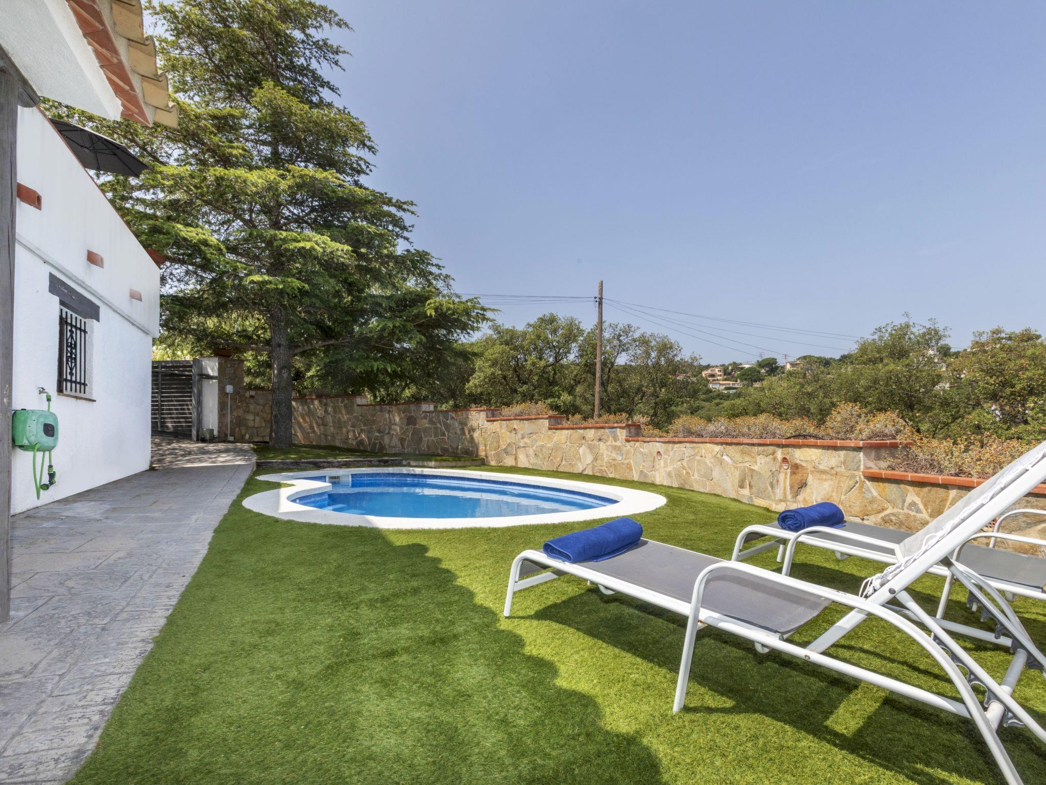 Mas Pallí 2 km from Platja d'Aro: House "Julilou". In a quiet, sunny position residential area (villas), 2 km from the sea, 2 km from the beach. Private: large, beautiful terraced garden lawn, swimming pool kidney shaped (3 x 6 m, depth 120 - 150 cm, seasonal availability: 01.Jan. - 31.Dec.). Garden furniture, barbecue, public parking on the road. Supermarket 2.3 km, restaurant 2.2 km, bus stop "Platja d'Aro - Politur" 1.9 km, railway station "Girona" 38 km, sandy beach "Platja de Belladona" 2 km. Sports harbour 5 km, golf course (18 hole) 7 km, minigolf 4 km. Nearby attractions: Camí de Ronda - Calas Preciosas 2 km, Water Park - Aquadiver 3 km, Avenida de Tiendas - Platja d'Aro 3 km, Via ferrata Cala del Molí 10 km, Pals - Pueblo Medieval 22 km, Peratallada - Pueblo medieval 24 km. Please note: car recommended. The owner does not accept any youth groups. Neighbourhood highly sensitive to noise. Quietness and good behaviour expected.
