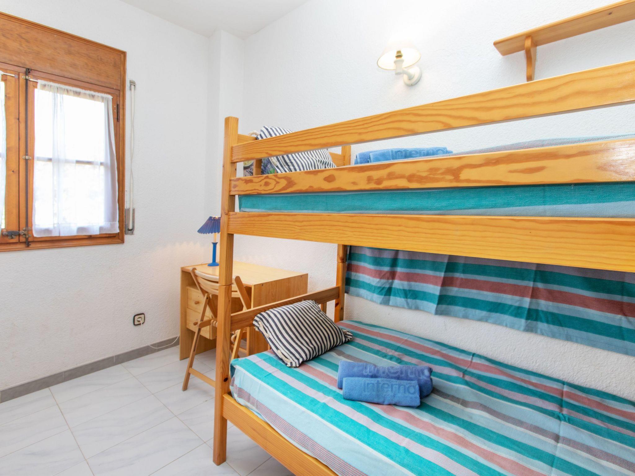 "Club", 4-room terraced house 75 m2 on 2 levels. Simple furnishings: living/dining room with open-hearth fireplace. Exit to the patio. Kitchen (oven, dishwasher, 4 ceramic glass hob hotplates, toaster, kettle, microwave, freezer, electric coffee machine). Upper floor: 1 room with 2 beds (90 cm, length 180 cm). 1 room with 2 beds (90 cm, length 190 cm), bath/WC. 1 room with 1 x 2 bunk beds (2 x 90 cm, length 180 cm). Shower/WC. Terrace, patio. Terrace furniture. Facilities: children's high chair, baby cot for up to 2 year olds, hair dryer. Please note: non-smoking house. HUTG-018876 // Reg. Nr.: ESFCTU00001701500011706100000000000000000HUTG-0188767