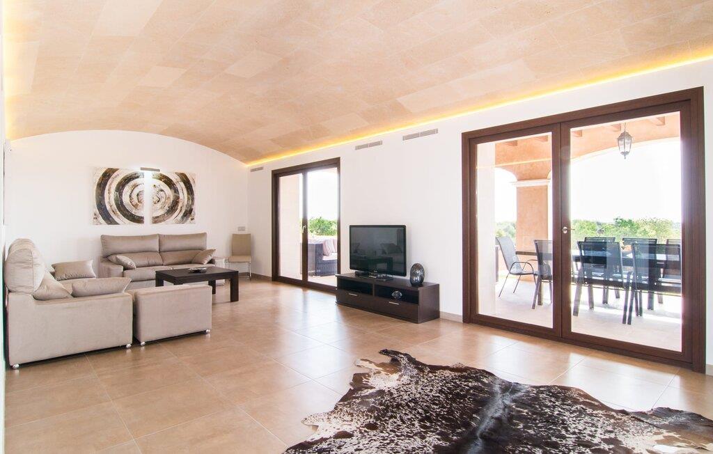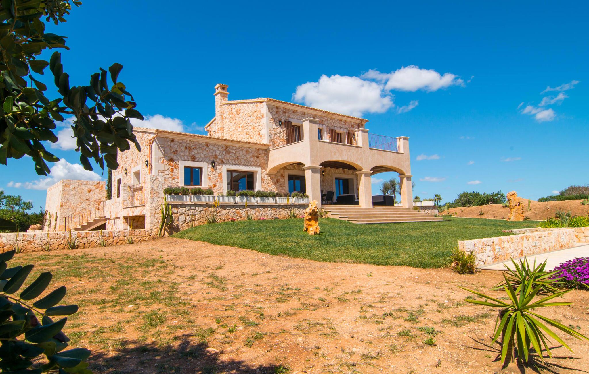 Den stilfulde, moderne og alligevel typisk mallorcanske villa i autentisk stenbrudskonstruktion stod først færdig i 2014 og henvender sig især til familier og feriegæster, der leder efter afslapning. Ved første øjekast bliver vi mødt af en imponerende to-etagers bygning i venlige, farverige terracotta-toner. Men på trods af den traditionelle stil med kurvebuer på en fremspringende terrasse og balkonen ovenover, erkender det trænede øje hurtigt, at der er tale om postmoderne arkitektur. Arkitekturen kan genkendes på pandekagedesignet eller detaljer som den lodrette lysstribe. Udearealet omkring huset er nyplantet og mangler endnu at afsløre sin fulde pragt. Ikke desto mindre kan I allerede nu nyde udsigten over en olivenlund og det grønne. Under den overdækkede terrasse ved huset er der en afslappet polyrattan lounge lavet af mørkt flet med lyse hynder. Samtidig har denne frodige, godt skyggefulde terrasse også et stort glasbord, der kan rumme op til 8 personer. Her kan I for eksempel have en fantastisk grill, da der er en grill. Går I et par trin ned fra terrassen over det grønne område dekoreret med træskulpturer, kommer I til det store poolområde på 10 x 5 meter. Det særlige ved det er, udover den omkringliggende solterrasse og den udendørs bruser, en anden, fladere pool, der fører ned ad trappen til den 1,80 m dybe pool. Dette gør det ideelt for babyer eller småbørn at plaske rundt i. Husets indretning er ikke kun harmonisk og stilfuldt moderne, men harmonerer også perfekt med traditionen for den ydre skal. Alene de hvælvede lofter i den store stue/spisestue og køkken afspejler den traditionelle konstruktion og giver den postmoderne indretning en vis hygge. Efter den moderne filosofi om åbne (funktionelle) rum smelter opholds-, spise- og køkkenområderne sammen med vindueselementer fra gulv til loft. Stuen er udstyret med en beige sofa - super behagelig til en afslappet aften med at se tv med LCD-tv. I den modsatte ende af rummet ligger det super smarte køkken i hvid højglans. Skabene er elegant indlejret i væggene. Det virker som om huset er bygget op omkring det virkelig flotte køkken, med den fantastiske ø i midten. Køkkenet er fuldt udstyret med elkedel, kaffemaskine, mikroovn, ovn i behagelig højde, stort køle/fryseskab kombination og meget mere. Køkkenøen fungerer også som en visuel rumdeler. Ved siden af er spisepladsen med et stort, hvidt spisebord og komfortable højryggede stole. Husets elegante, moderne stil understreges af subtile dekorative genstande som løgflaskekollektionen lavet af grønt glas. Farvekontrasten er meget harmonisk og samtidig uhøjtidelig enkel i forhold til den overordnede meget lyse, næsten hvide stue. I alt 4 soveværelser er lige så tiltalende som den åbne stue. Alle værelser er lyse og oversvømmet med lys og nogle har udgang til altanen over terrassen. De komfortable senge har madrasser i forskellige størrelser. Det store soveværelse har eget badeværelse med italiensk design. De resterende badeværelser har også alle et badekar eller en bruseniche og deles af de øvrige 3 soveværelser. Der er også et gæstetoilet. I soveværelserne minder mange kærlige detaljer om fortiden - som de synlige træbjælker - og samtidig udstråler disse værelser en smagfuld luksus, som på en behagelig måde forstærkes af en kølig underdrivelse, og som bringer de besøgende glæde på grund af deres kvalitetsdesign. og æstetik. Da den stilrene villa "Calonge" klarer balancegangen mellem tradition og modernitet, er den også beliggenhedsmæssigt fantastisk placeret. Villaen ligger mellem den lille landsby Calonge og den livligere strandby Cala D'Or. Calonge er en lille, stille landsby i et blidt bølgende landskab. I modsætning hertil byder Cala D'Or på et aktivt byliv med mange barer, restauranter, en smart lystbådehavn og adskillige små strande, der er meget populære. Andre, lige så smukke, noget roligere badebugter kan hurtigt nås. Disse omfatter Cala Mitjana og Cala Mondrago. Cala Mondragó er en del af den 766 hektar store Mondragó Naturpark. De to største bugter i denne naturpark, ses Fonts de N'Alis og s'Amarador, er forbundet med en kort gåtur ad en stenet sti. Naturelskere kan opdage en rig natur- og dyreverden uanset de fine sandstrande. Har I lyst til natteliv eller travlhed, kan I tage til Cala D'Or og tilbringe eftermiddagen eller aftenen på en af de gode restauranter. Vi hos Fincallorca ønsker vores feriegæster et afslappende og varieret ophold i højkvalitetsvillaen "Calonge" med en følelse af luksus. Den supertrendy nye villa "Calonge" ligger i landlige omgivelser mellem den lille by Calonge og den livlige kystby Cala D'Or. Den førsteklasses udstyrede villa imponerer med en vidunderlig blanding af rustik arkitektonisk stil og forfriskende lyst interiørdesign for at opfylde de højeste krav. Der er indkøbsmuligheder i Calonge såvel som i Cala D'Or eller Santanyi. Strandene i Cala D'Or og andre naturlige strande ligger kun få kilometer væk og kan nås utrolig hurtigt. Bemærk venligst, at denne ejendom ikke accepterer ungdomsgrupper eller polterabender. En ungdomsgruppe på denne ejendom består af personer i alderen [30] eller yngre. Book ikke denne ejendom, hvis I er en ungdomsgruppe eller en polterabendgruppe, da jeres reservation vil blive afvist, når den er booket, hvilket også kan være tilfældet ved ankomst til ejendommen eller under jeres ophold, og I vil ikke modtage en refusion.