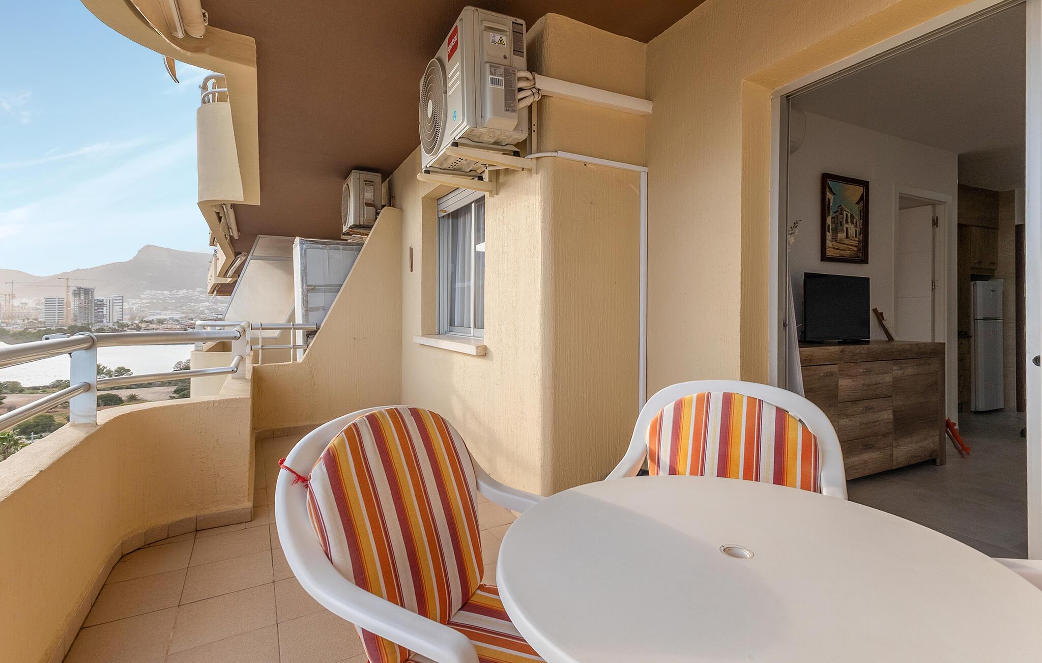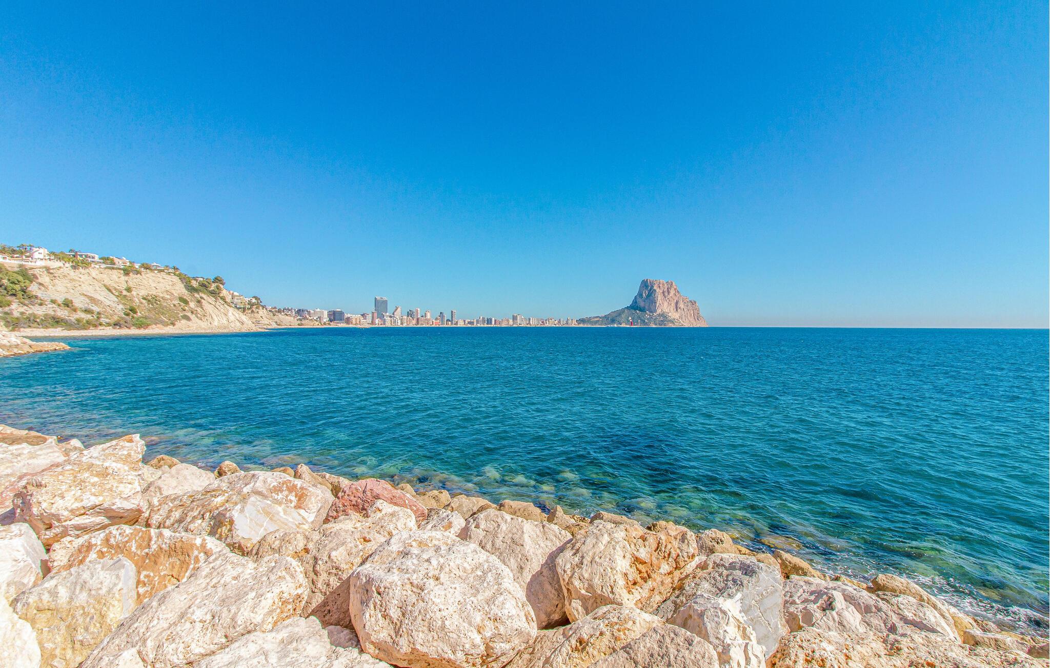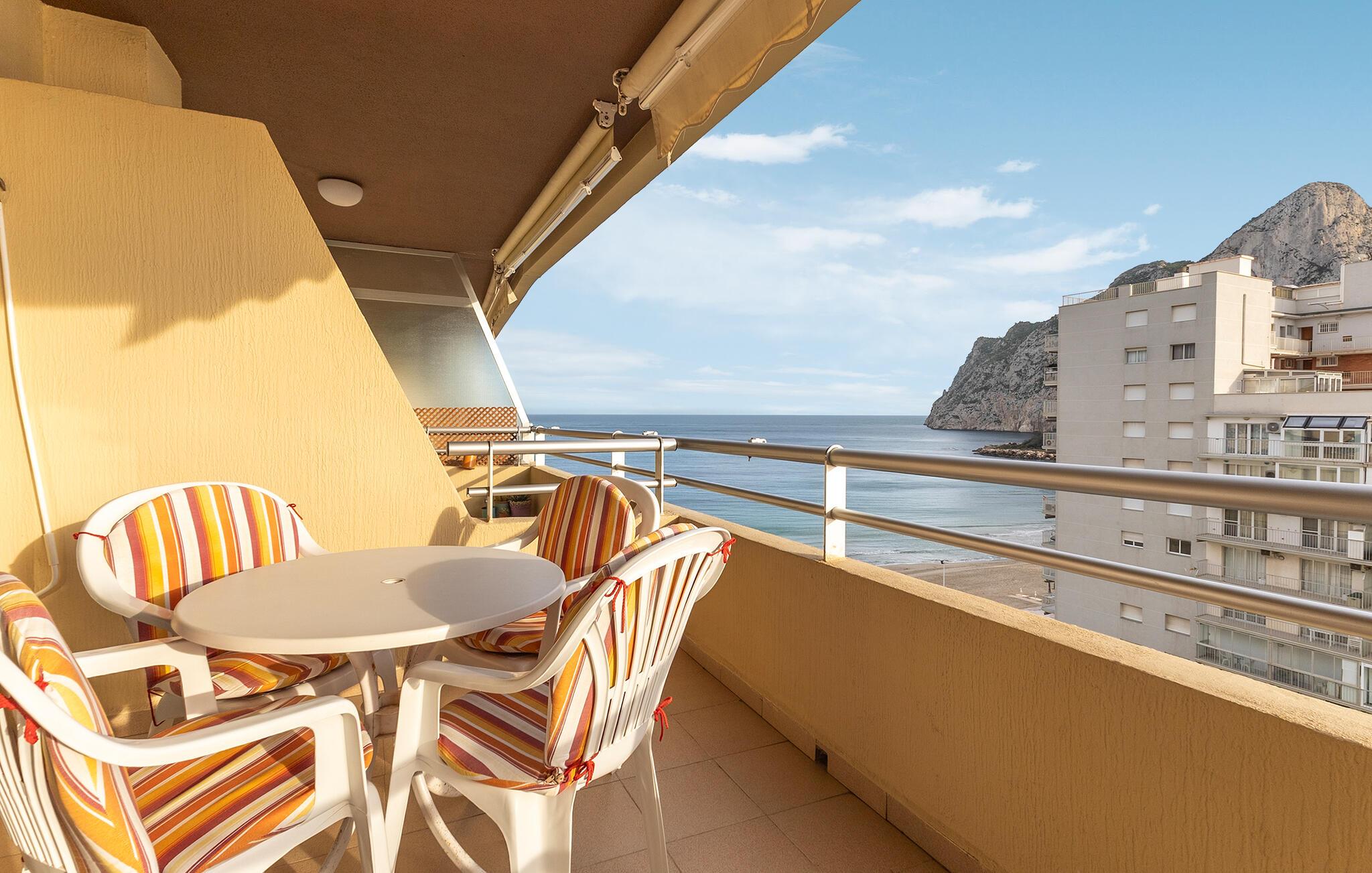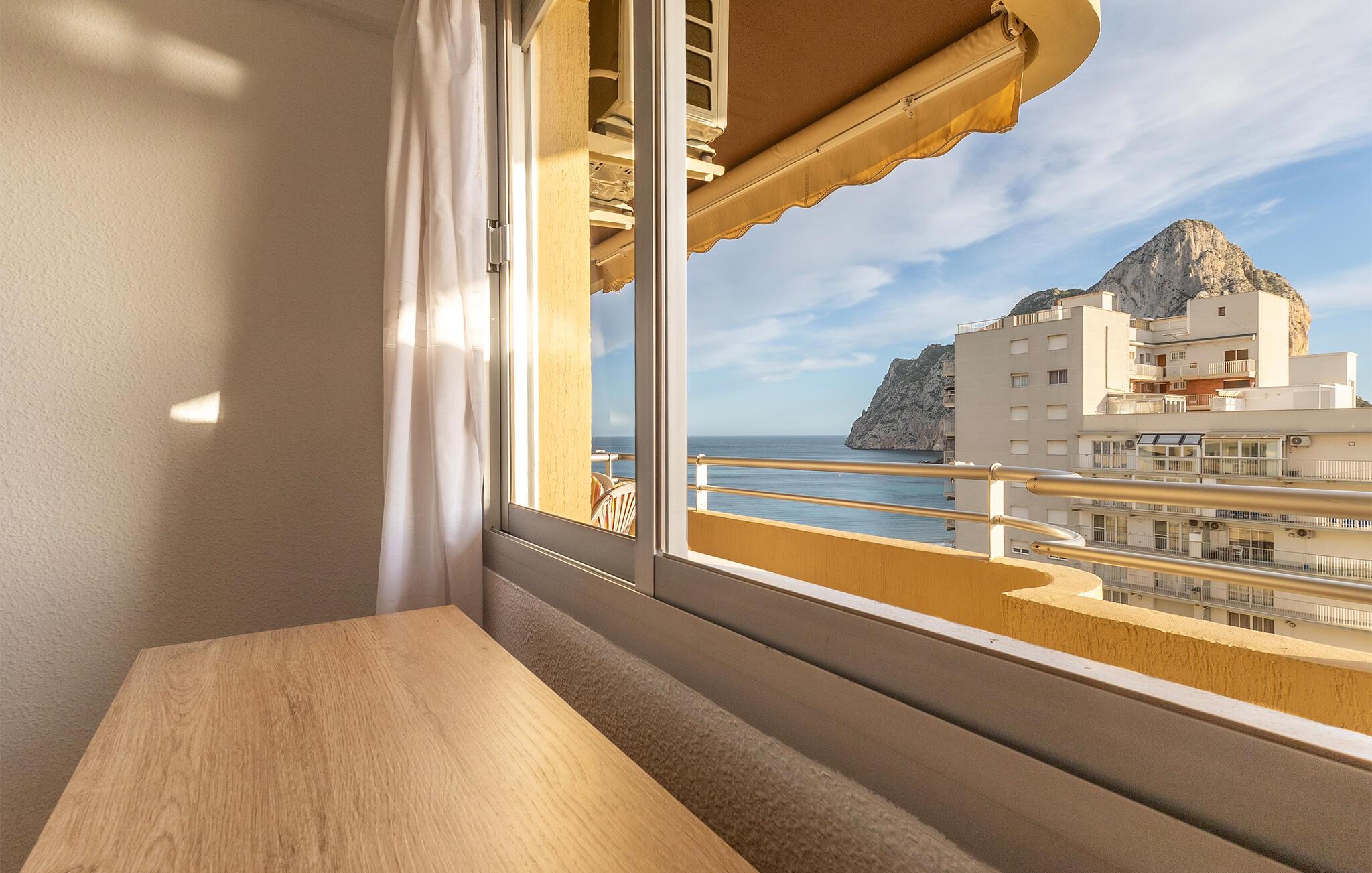 På den rummelige terrasse kan I nyde en smuk udsigt over det azurblå hav og den berømte Peñón de Ifach. Begynd dagene med en kop kaffe, solbad på liggestolene ved den fælles pool og nyd romantiske solnedgange med et glas spansk vin.