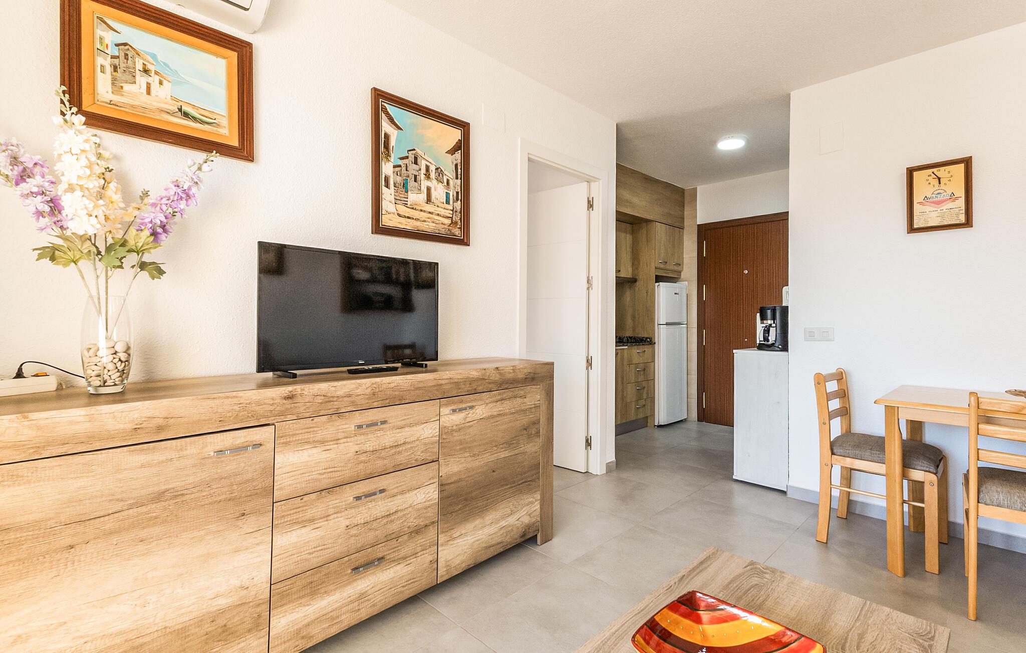 Denne komfortable lejlighed lægger op til afslappende dage på den solbeskinnede Costa Blanca. Tilbered middelhavsdelikatesser i det moderne køkken og nyd jeres måltider i den stilfulde opholdsstue. Føl jer godt tilpas i den komfortable sofa, læs en spændende bog eller tilbring tid sammen med at spille kort.